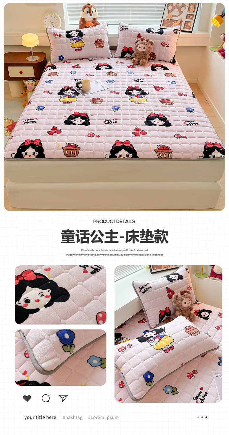 商品名称:迪梦思 2024新款正版授权卡通牛奶绒床垫床护垫 学生床垫床笠 童话公主-床垫款