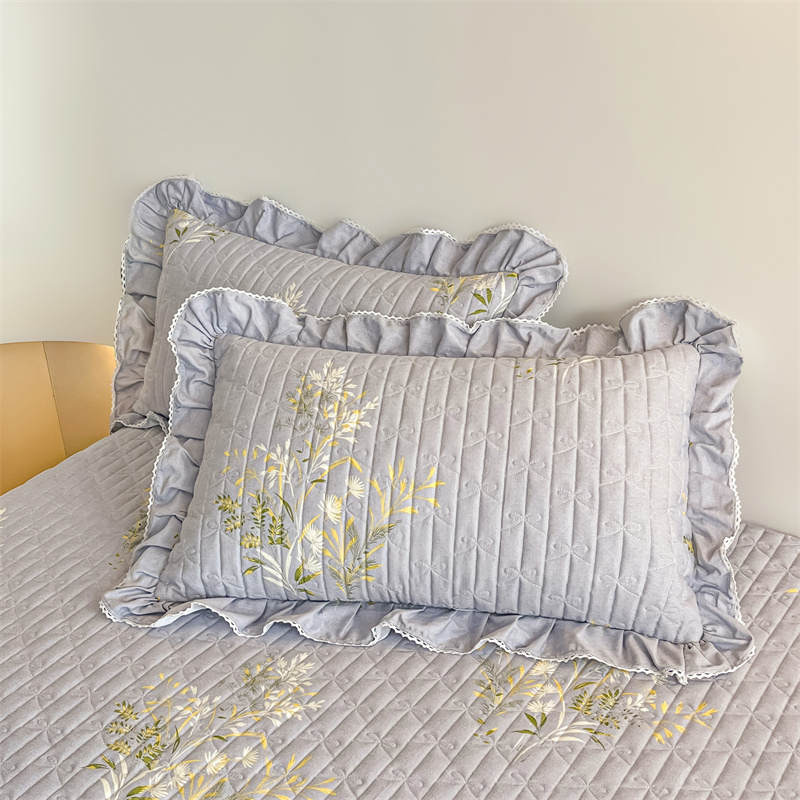 2024新款夹棉加厚花边拉链枕套 抒情花季-灰