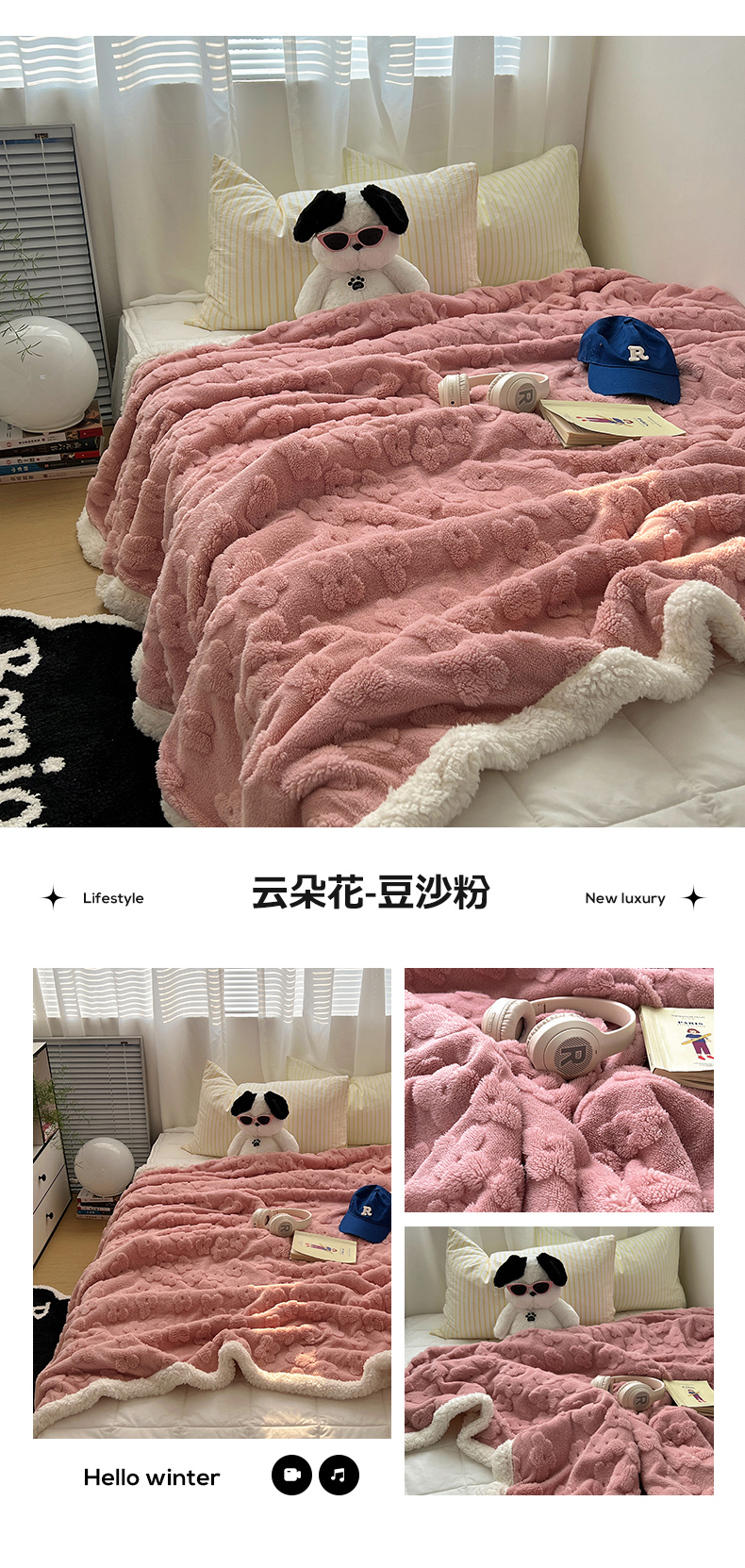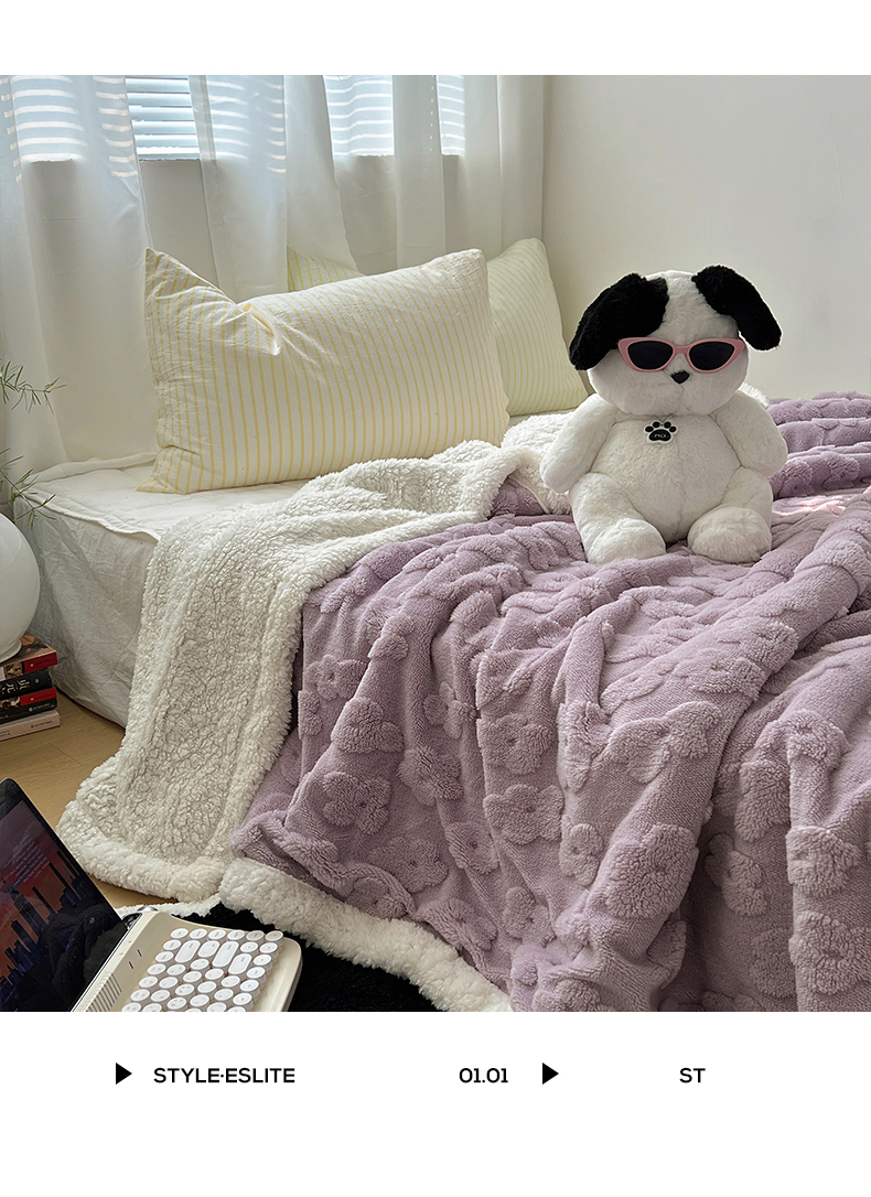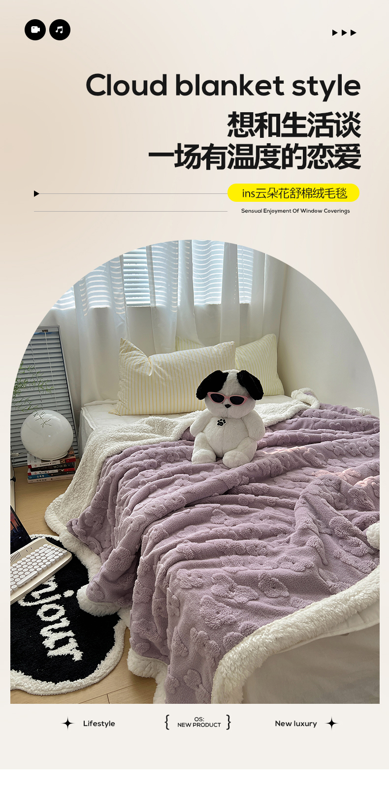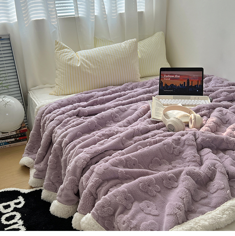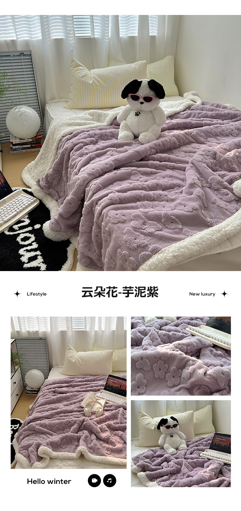 六巷胡同 2024新款INS云朵花舒棉绒羊羔绒毛毯 云朵花-芋泥紫