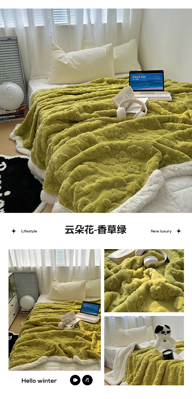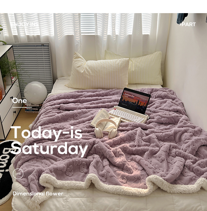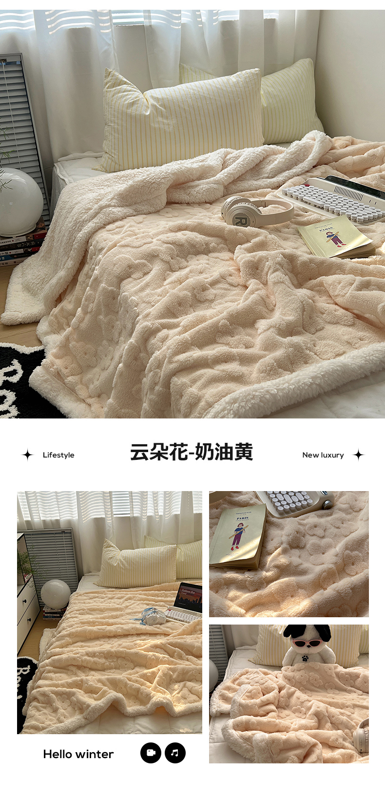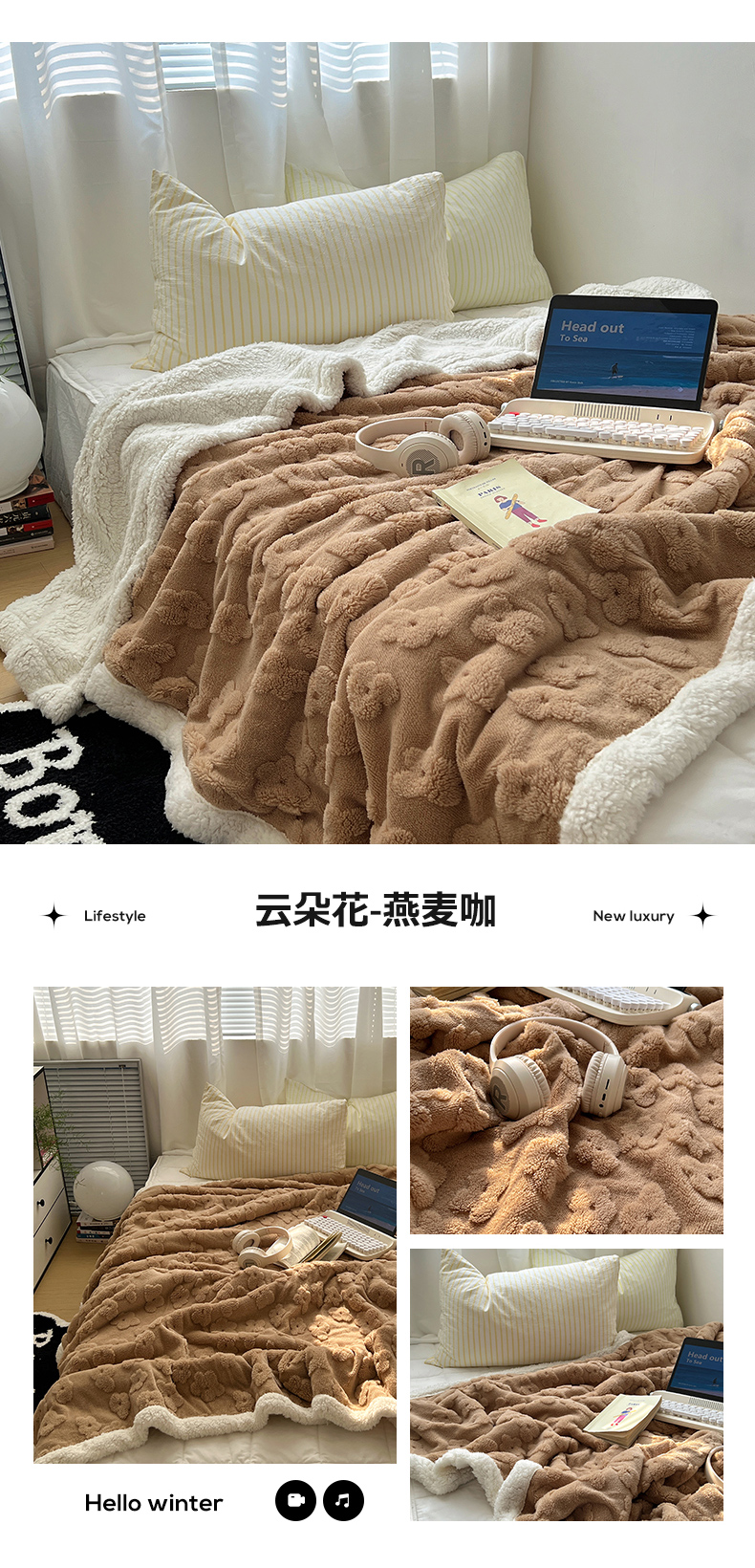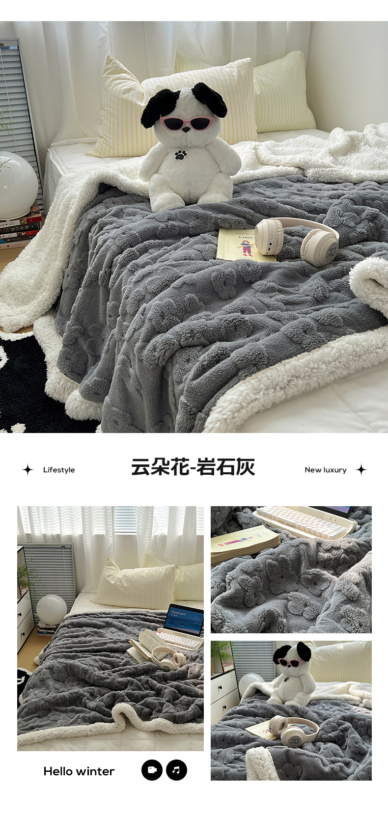六巷胡同 2024新款INS云朵花舒棉绒羊羔绒毛毯 云朵花-芋泥紫
