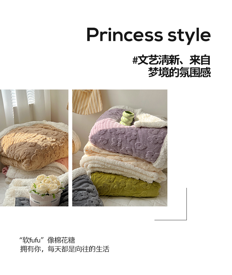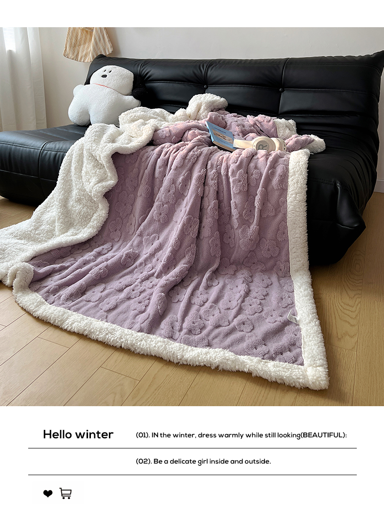 商品名称:六巷胡同 2024新款INS云朵花舒棉绒羊羔绒毛毯 云朵花-芋泥紫