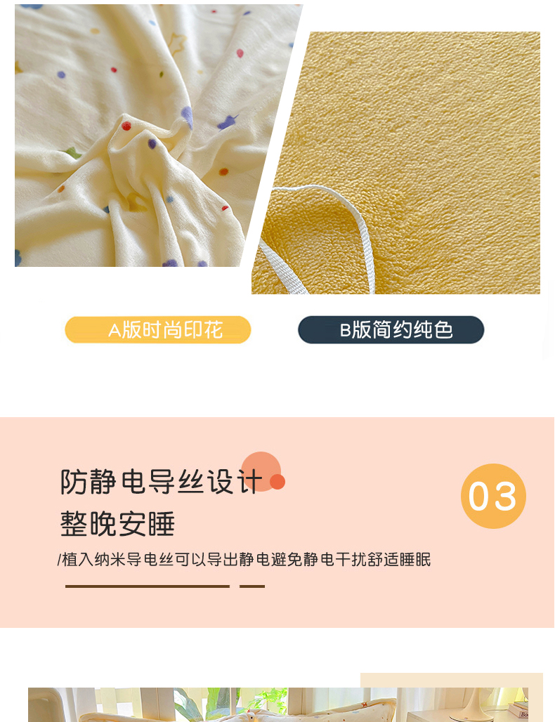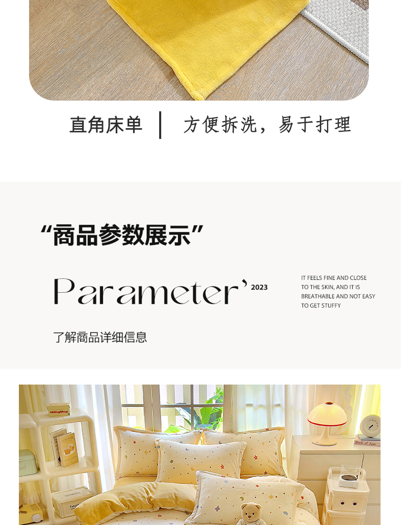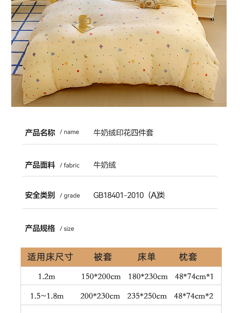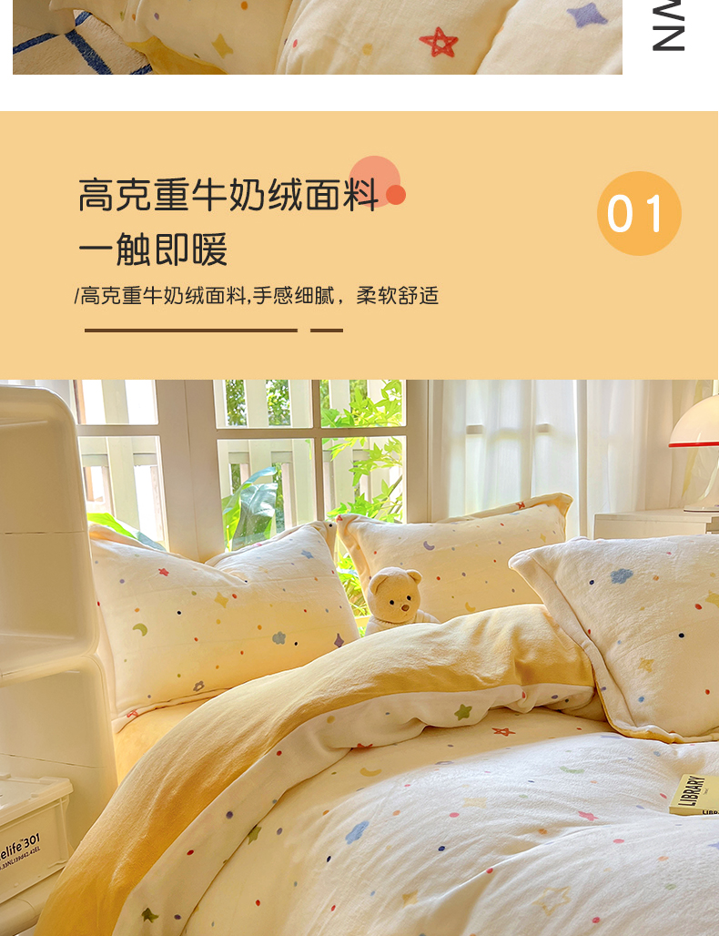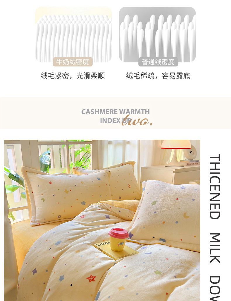 当前位置: 91家纺网 > 商品网购 > 床品套件 > 四件套 > 牛奶绒四件套 > 百寐 2024新款加厚A类牛奶绒印花卡通床单床笠四件套三件套 点点星空
