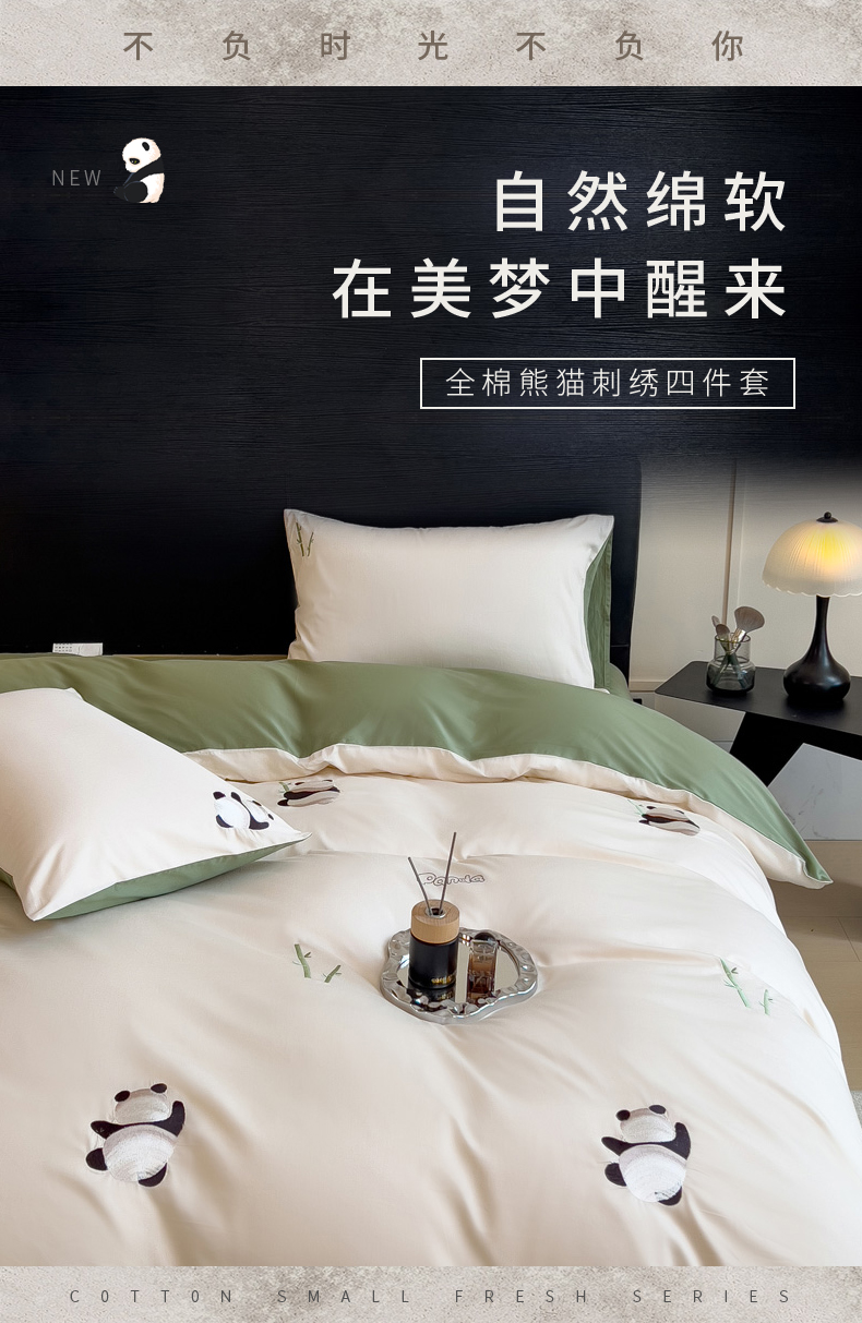 商品名称:(总)席世家 2024新款全棉卡通熊猫刺绣四件套