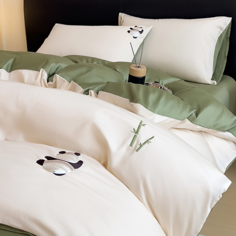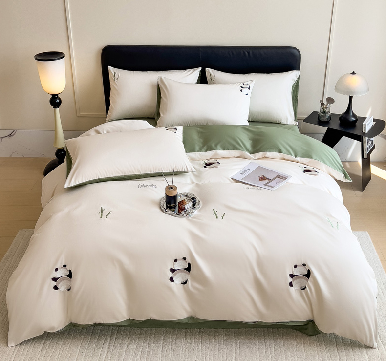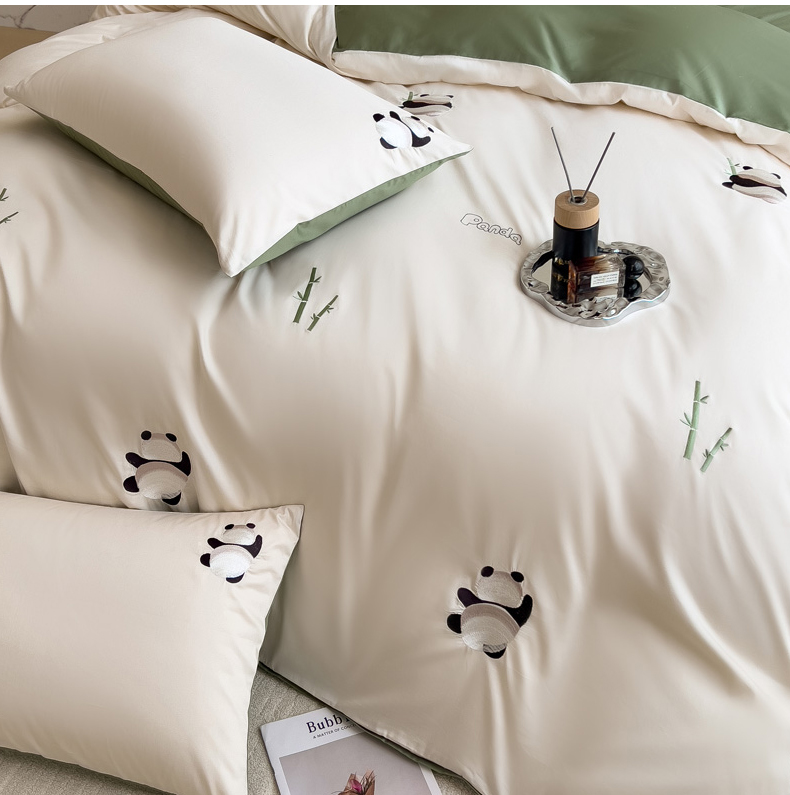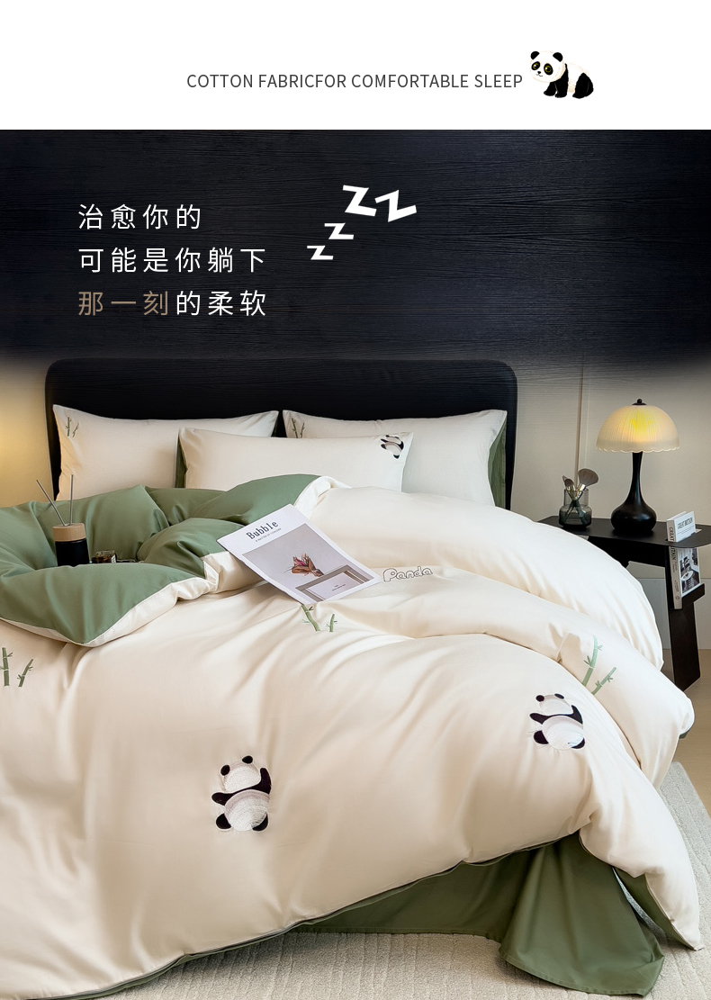 (总)席世家 2024新款全棉卡通熊猫刺绣四件套