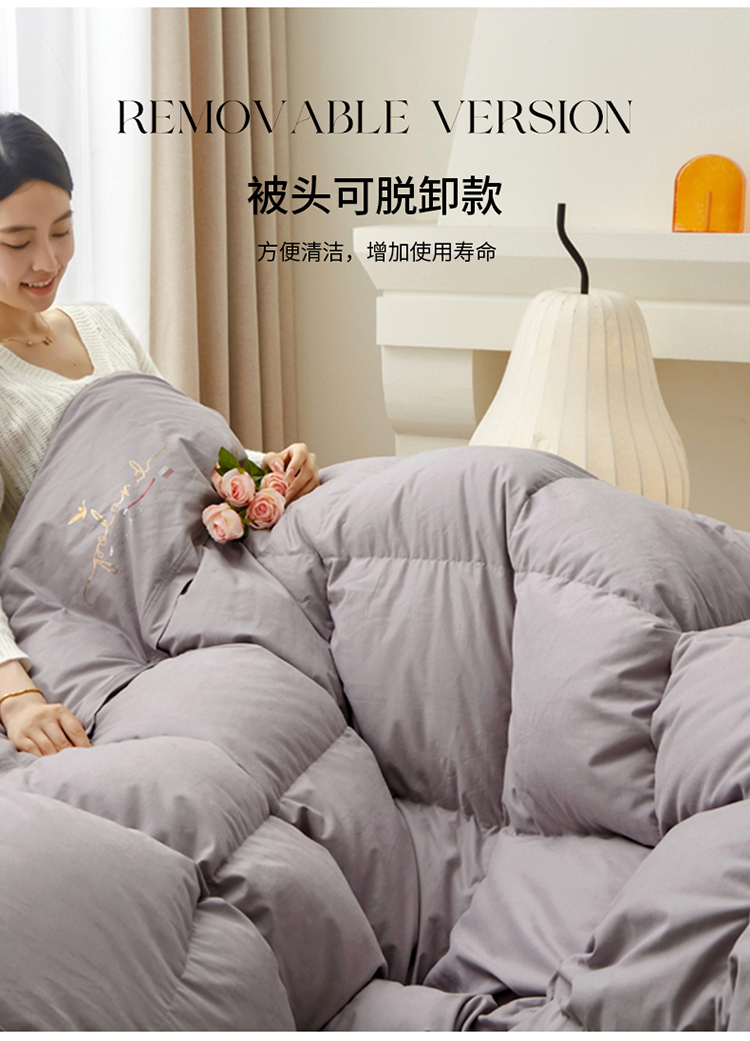 当前位置: 91家纺网 > 商品网购 > 被子 > 羽绒被 > 新款糯感暖芯鹅绒被被子被芯(被头脱卸款) 暖芯鹅绒被糯感(被头脱卸款)灰色