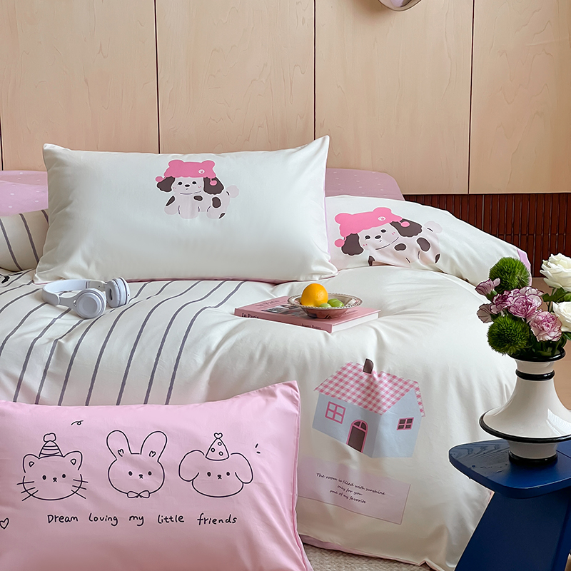 (总)时年 2021新款40S全棉印花四件套小可爱系列,贝尔先生,彩虹云朵,花西子,欢乐字母,金刚,奇思妙想,气球皮皮,树林生活