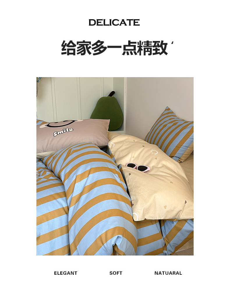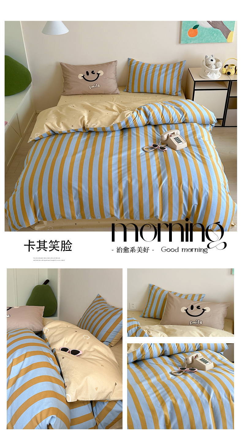 商品名称:2024新款40支13372全棉数码大版趣味系列四件套 卡其笑脸