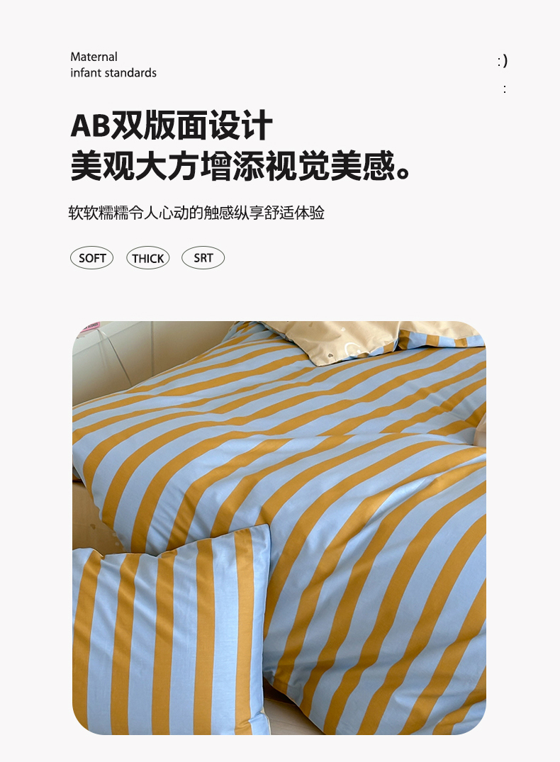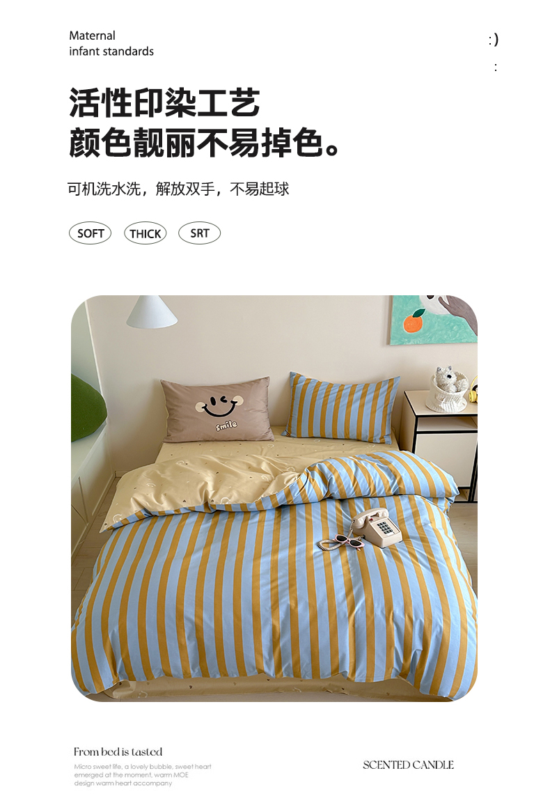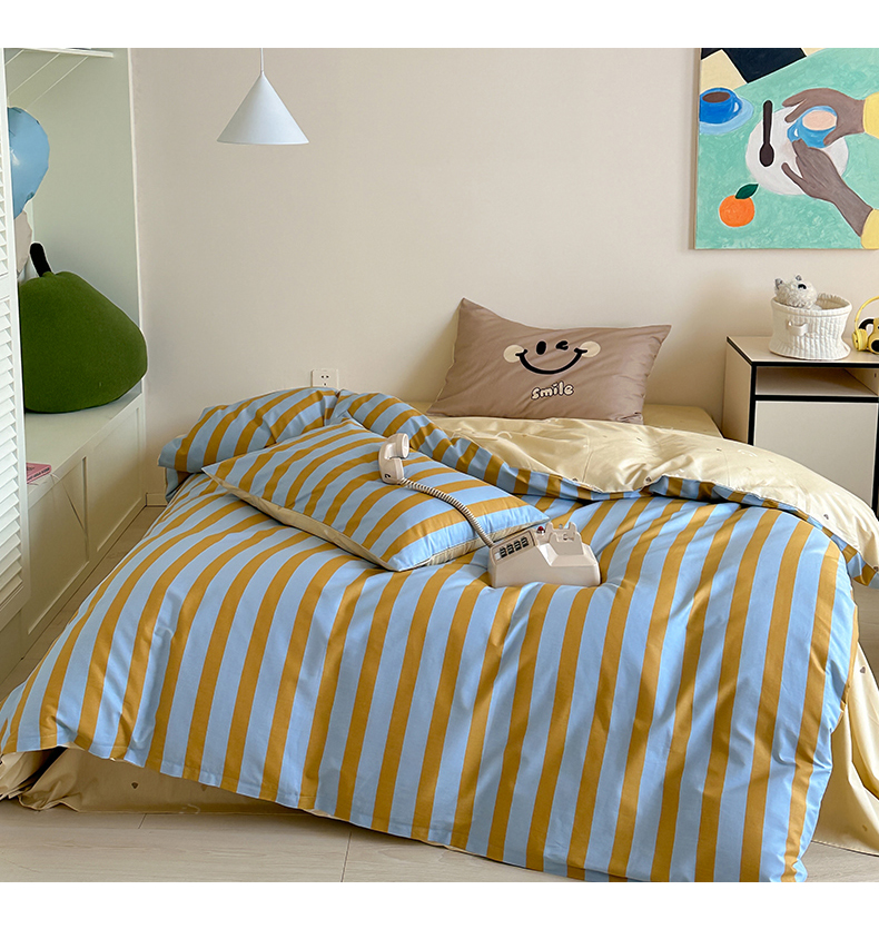 (总)时年2022新款全棉40支13372ins条纹款四件套,复古钴蓝,复古奶绿