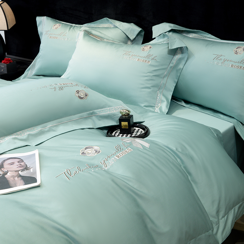 商品名称:绒博士 2024新款160支长绒棉四件套-巴黎之约 湖水蓝