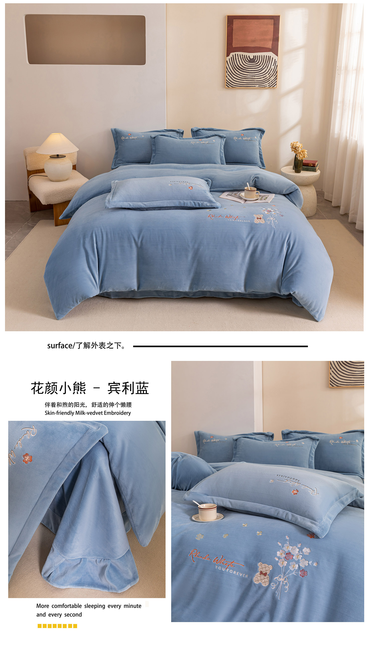 (总)绒博士 2025新款220克牛奶绒刺绣三件套--欧拉系列,欧拉-宾利蓝,欧拉-芳菲紫,欧拉-灰色,欧拉-奶绿,欧拉-樱花粉