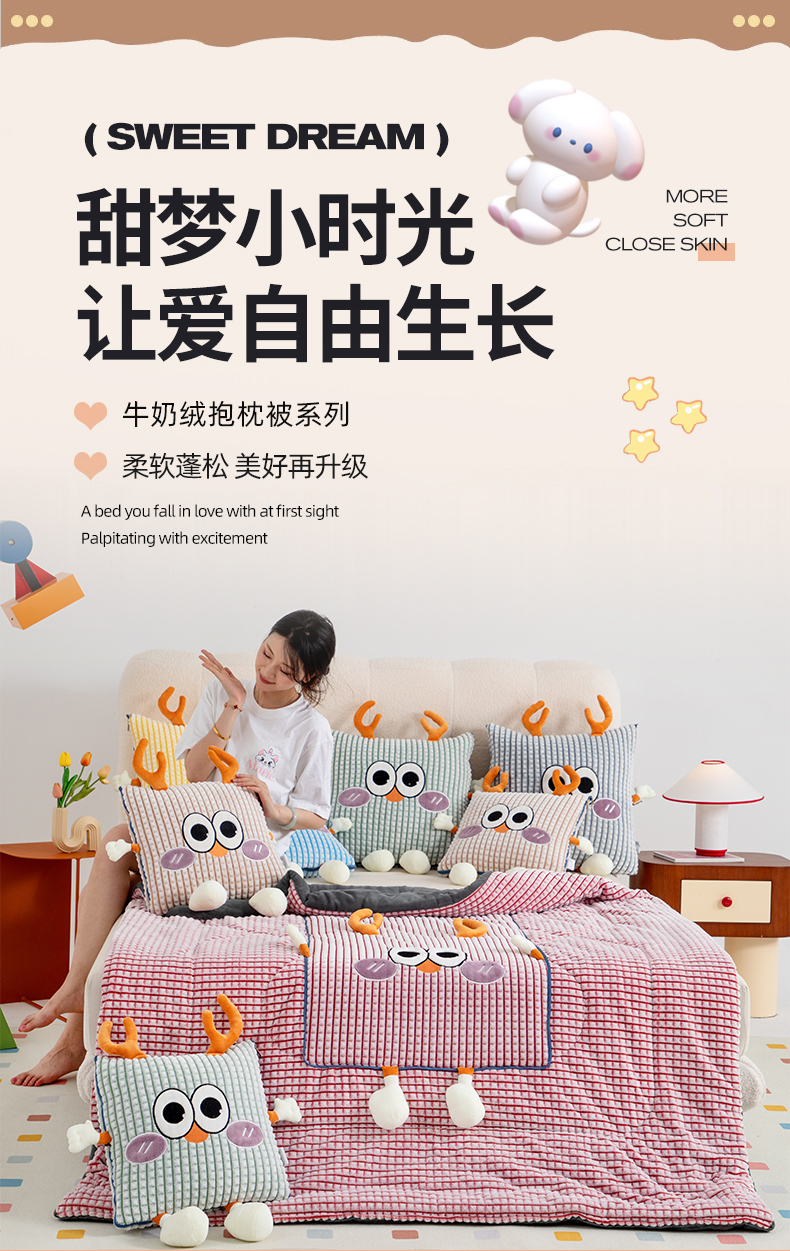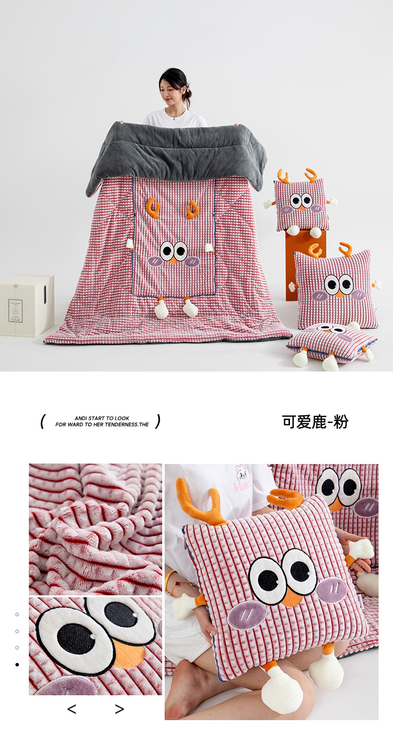 商品名称:吉利家居 2024新款牛奶绒抱枕被-可爱鹿(控价68;98) 可爱鹿-粉