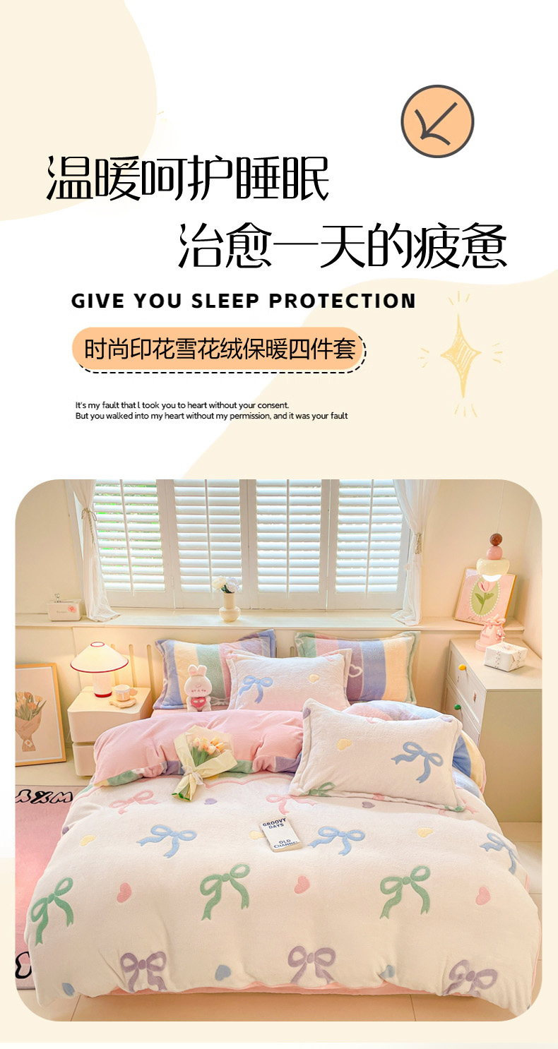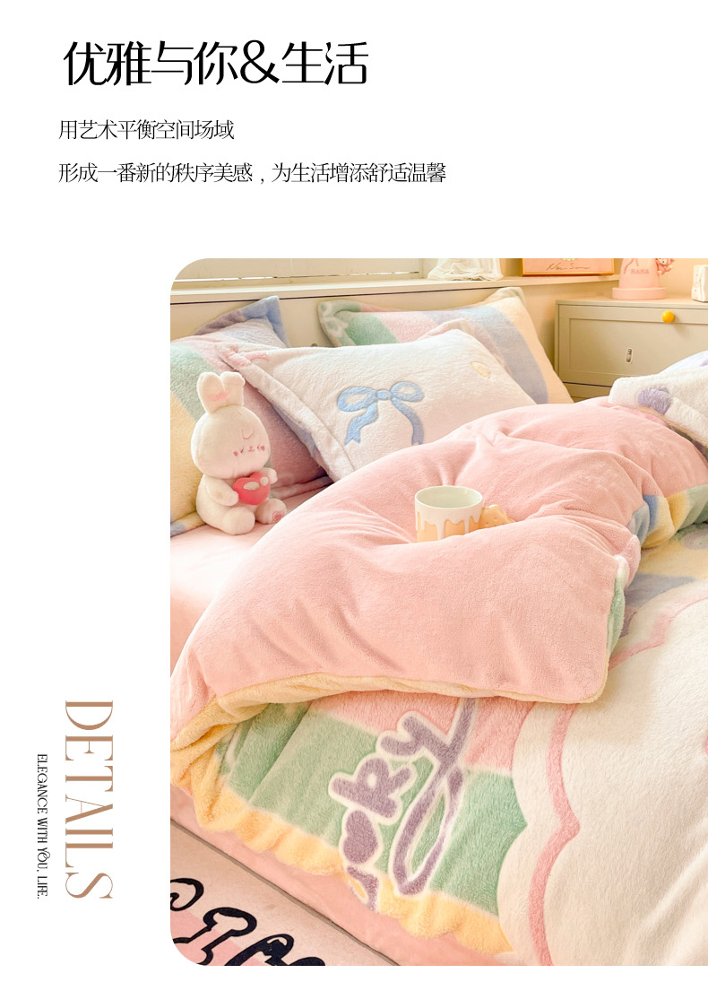 当前位置: 91家纺网 > 商品网购 > 床品套件 > 四件套 > 其它四件套 > 沐慕 2024新款卡通印花雪花绒四件套加厚牛奶绒四件套 彩虹