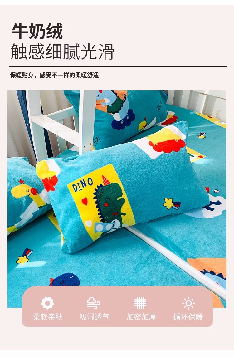 小虾米 2024新款加厚上下床牛奶绒床笠款 恐龙世界