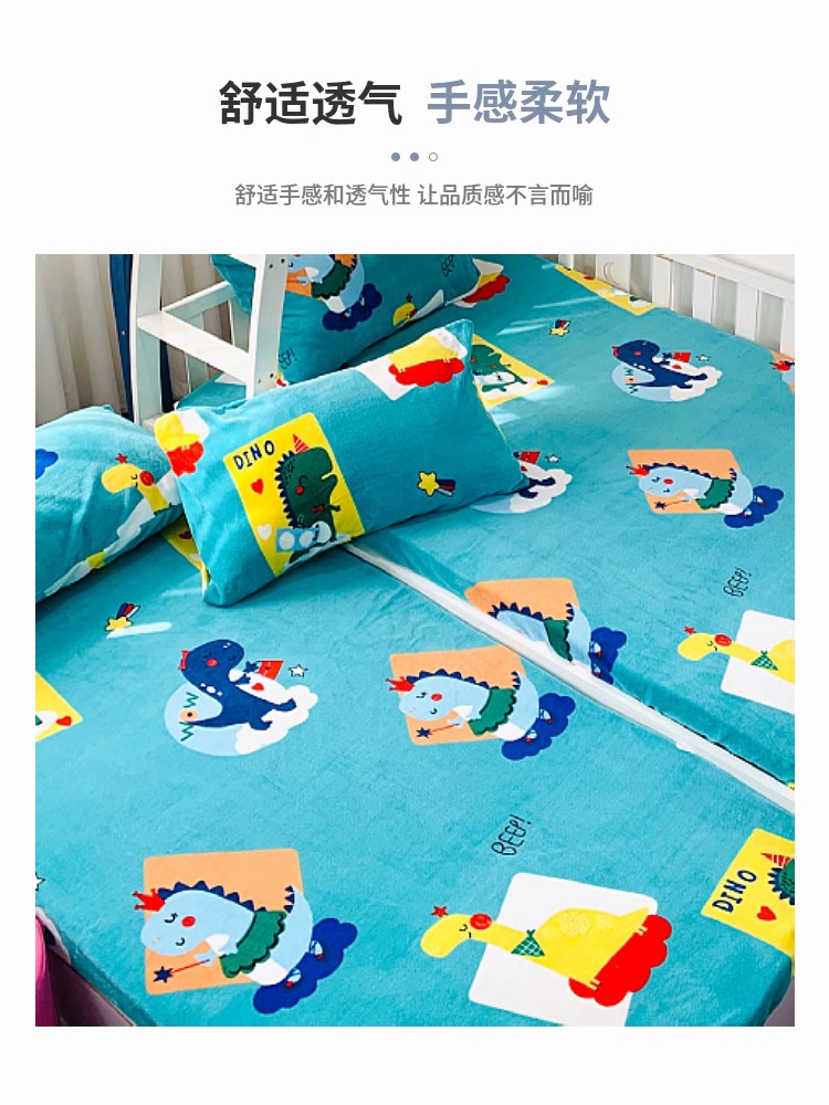 • 91家纺网 家纺一手货源 找家纺 小虾米 2024新款加厚上下床牛奶绒床笠款 恐龙世界