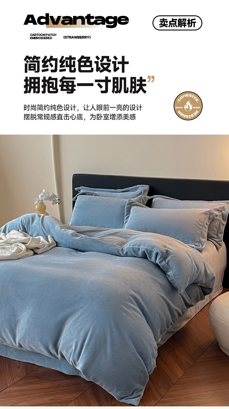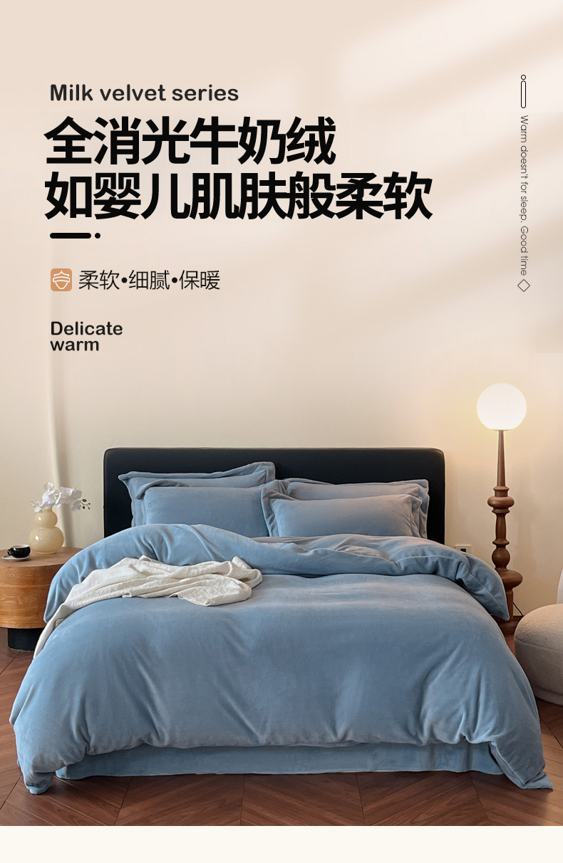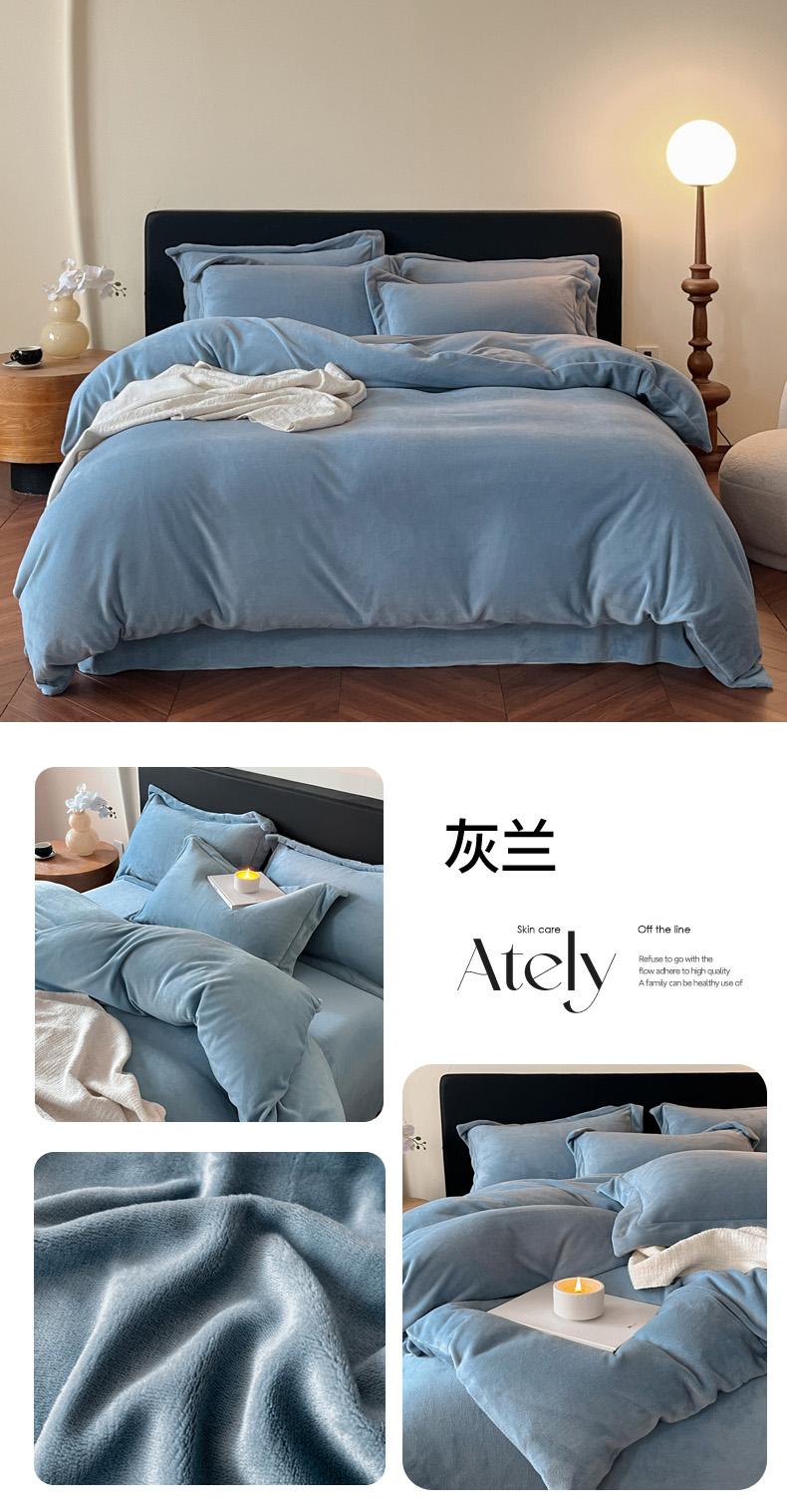 当前位置: 91家纺网 > 商品网购 > 床品套件 > 四件套 > 牛奶绒四件套 > 万盛家纺 2025新款全消光加厚230克牛奶绒拼色四件套 灰兰