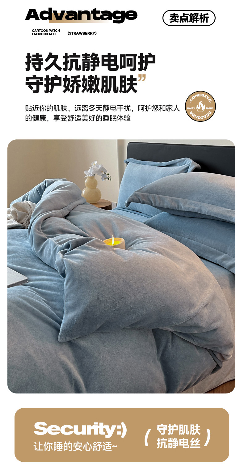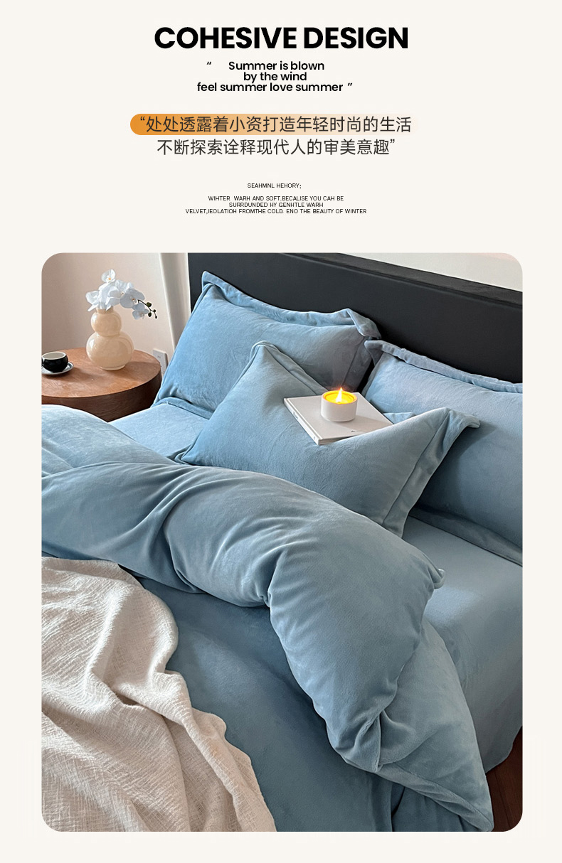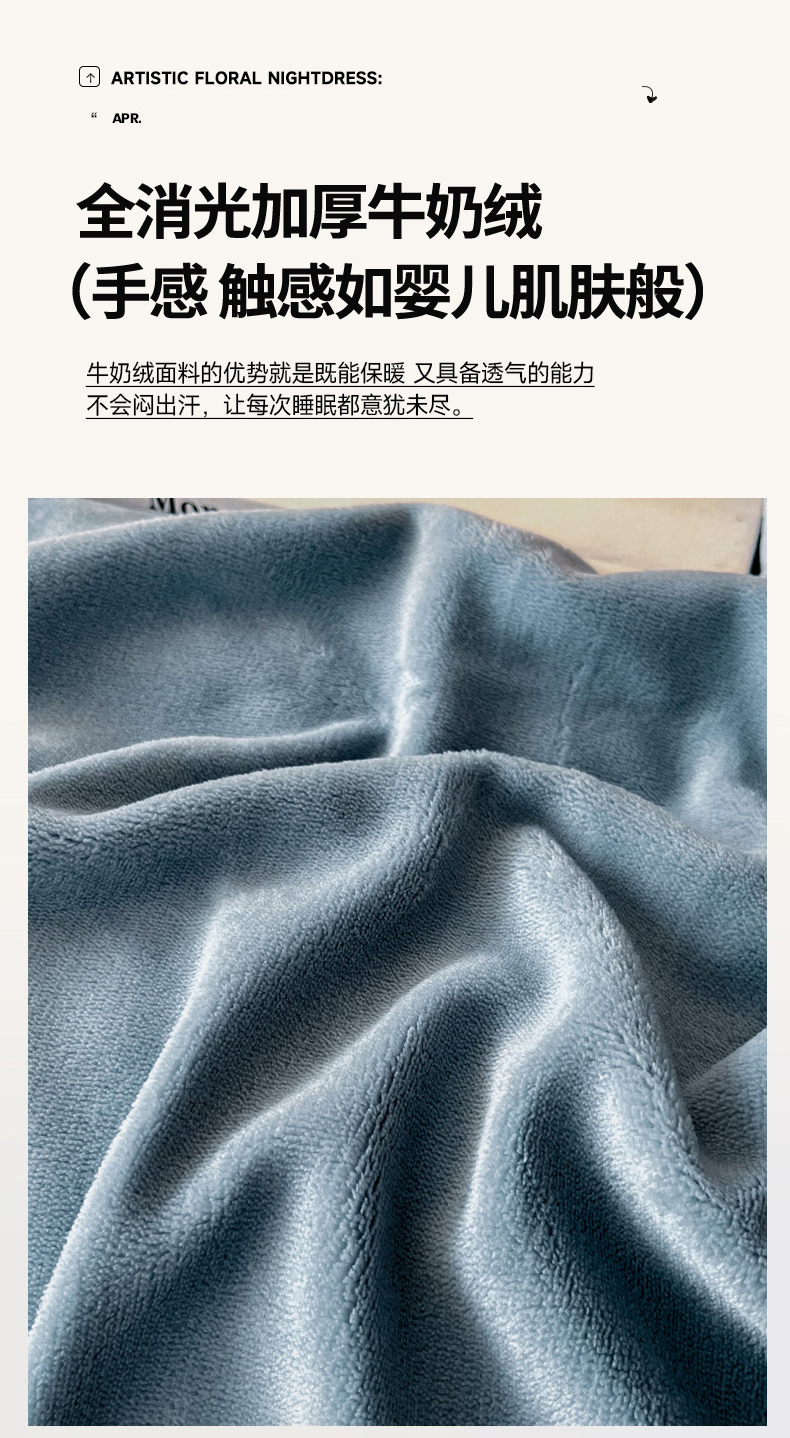 当前位置: 91家纺网 > 商品网购 > 床品套件 > 四件套 > 牛奶绒四件套 > 万盛家纺 2025新款全消光加厚230克牛奶绒拼色四件套 灰兰