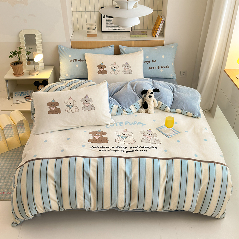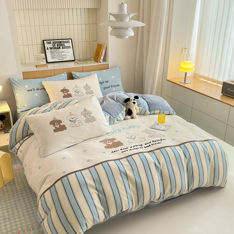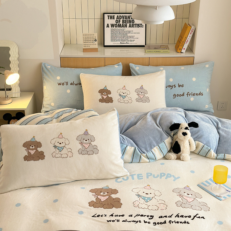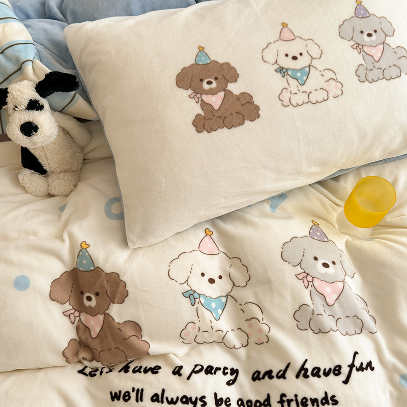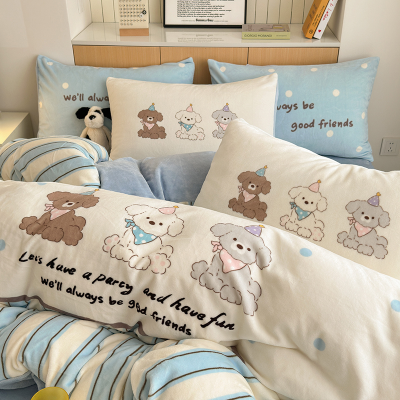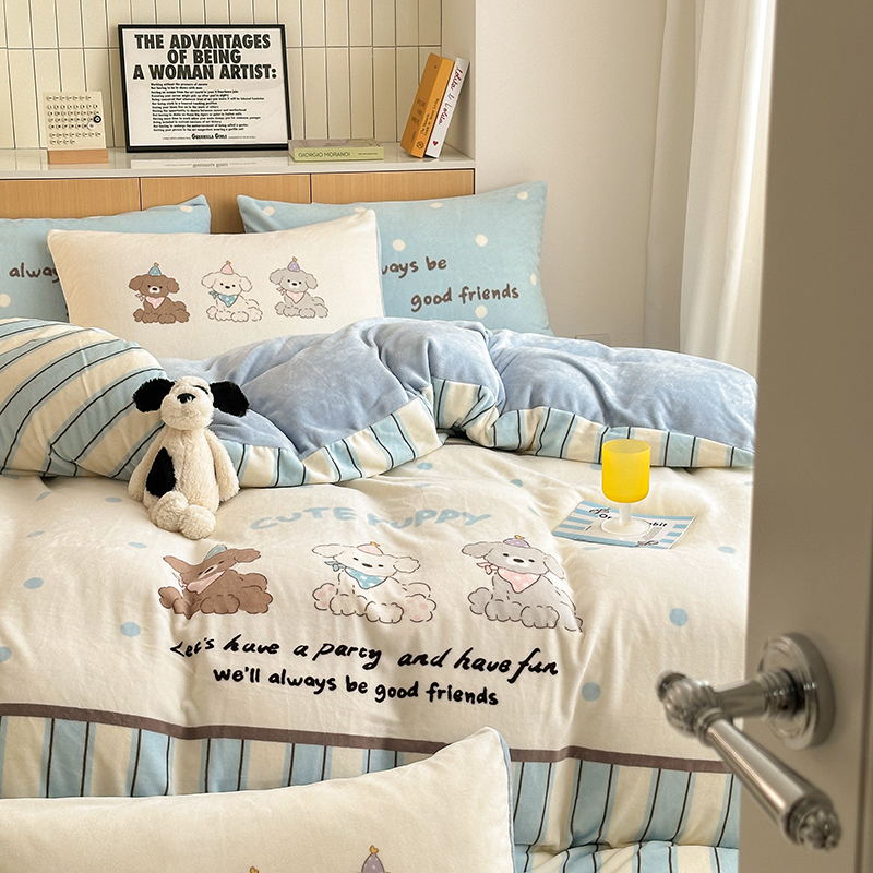 2024新款大版卡通双面高克重牛奶绒床单款四件套 快乐汪