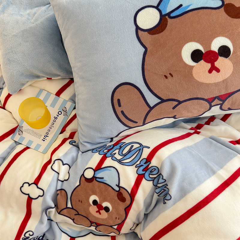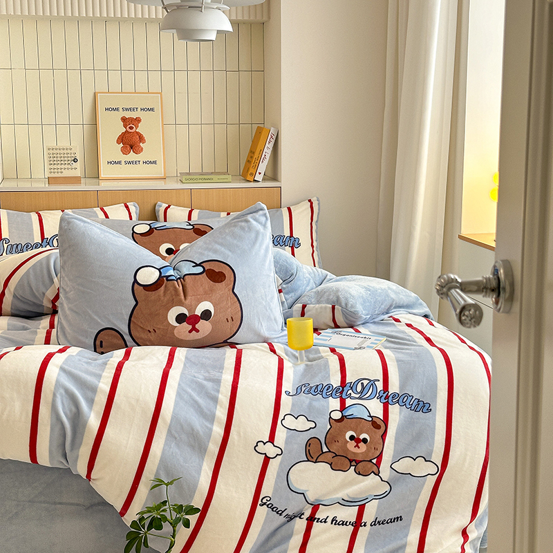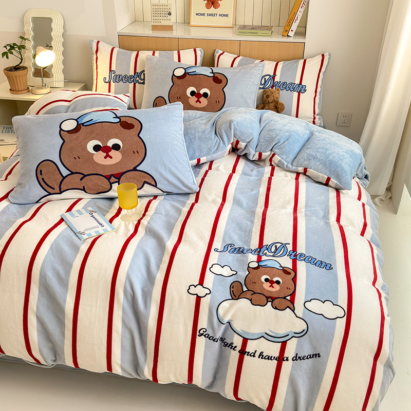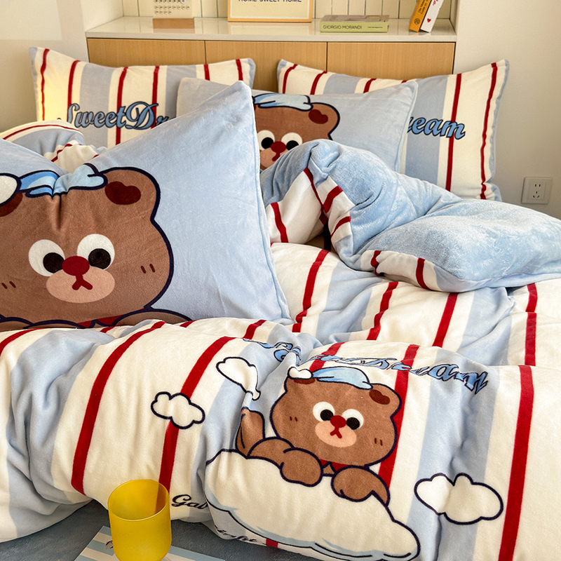 2024新款大版卡通双面高克重牛奶绒床单款四件套 云朵熊