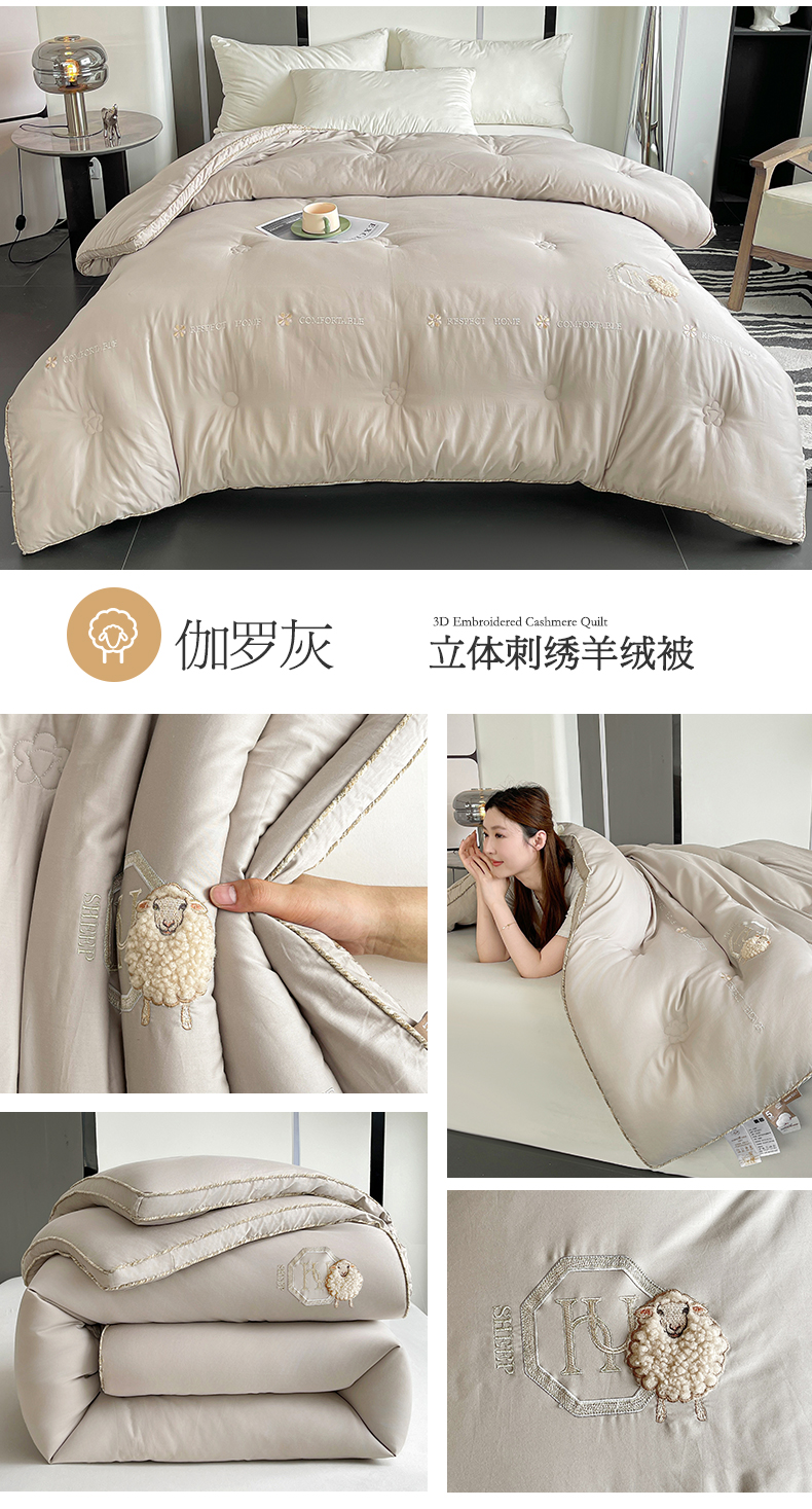 商品名称:2024新款60s全棉立体刺绣羊绒被子被芯 伽罗灰
