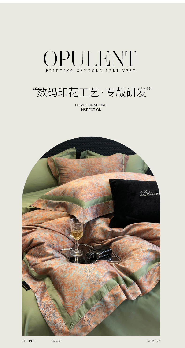 黑白森林2024款 50X50S高支天丝棉数码印花四件套天丝全棉,柚凝咖,柚凝绿,若芙灰,若芙咖