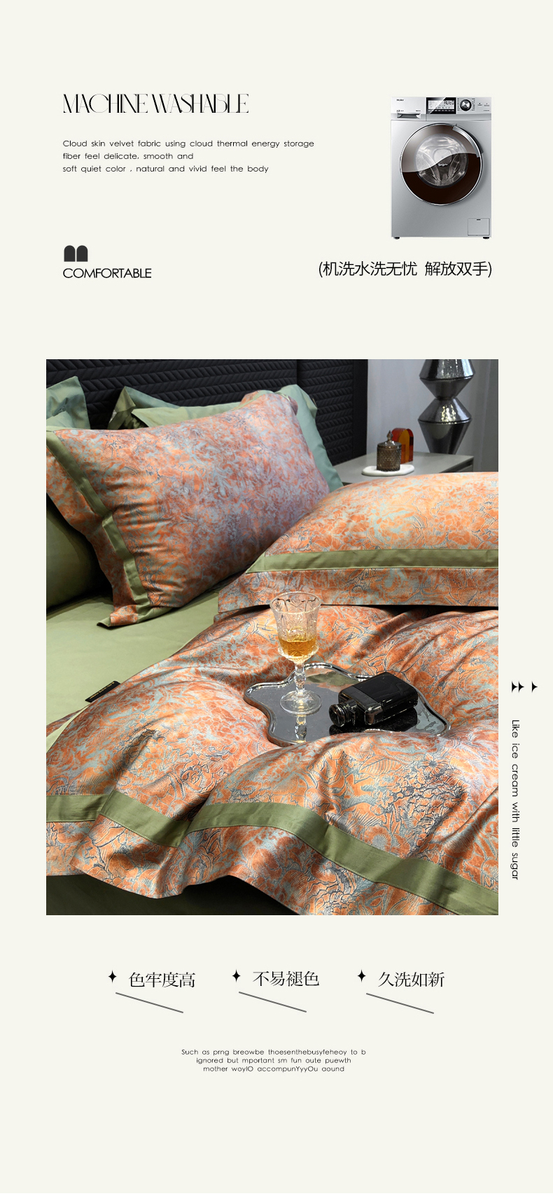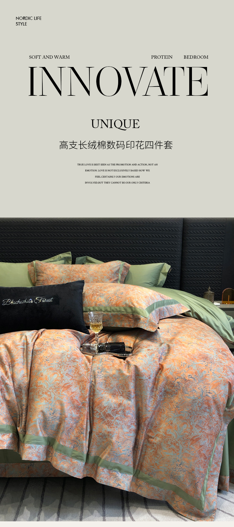 2024新款高支数码印花四件套-梵叶 梵叶-桔