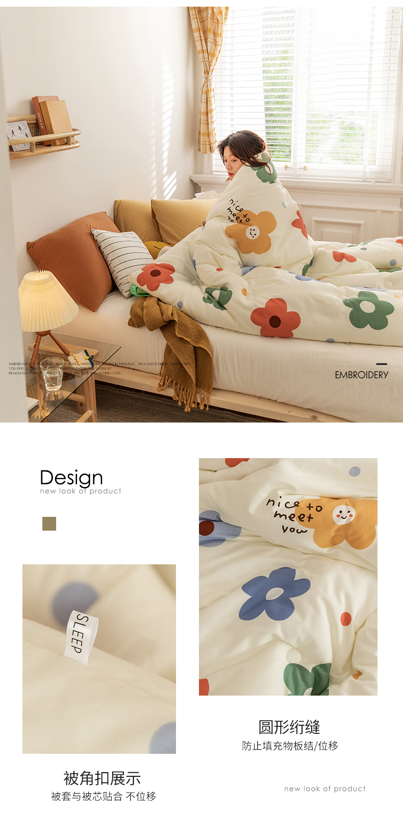 • 91家纺网 家纺一手货源 找家纺 莱福仕家纺 2024新款全棉13070四季被冬被被子被芯 太阳花
