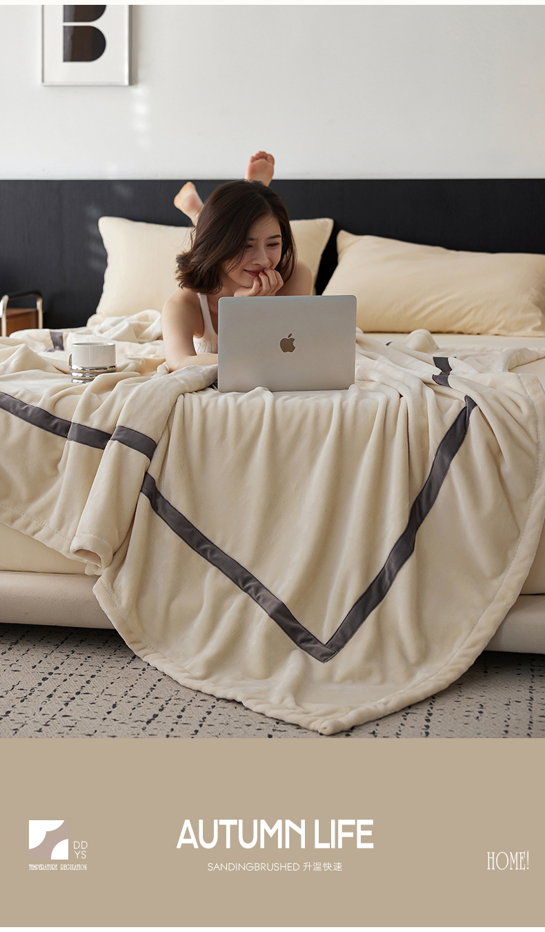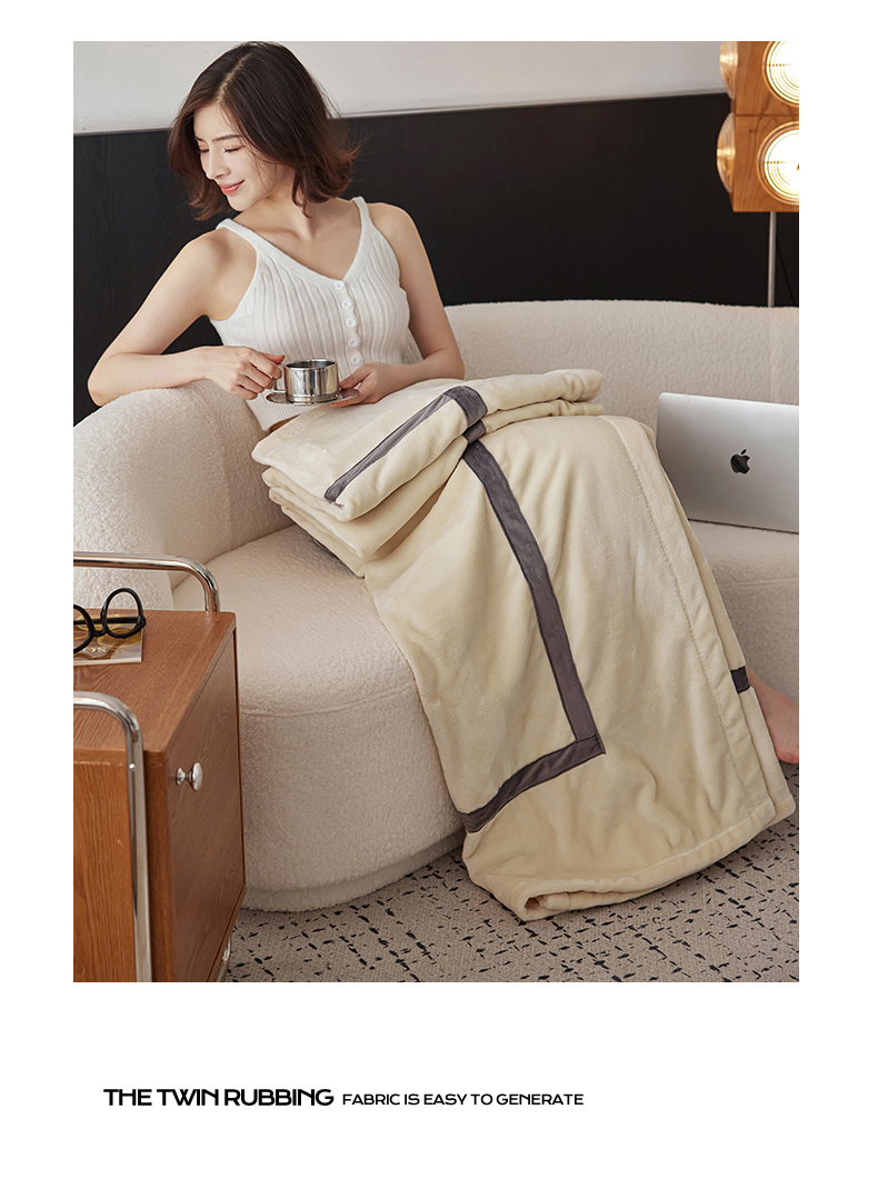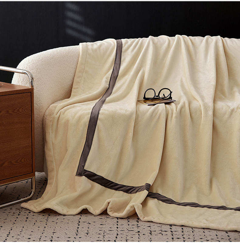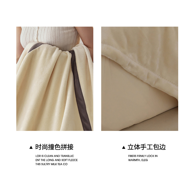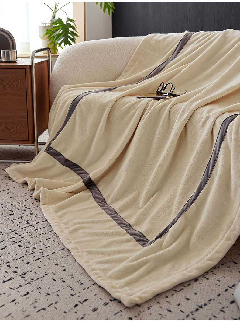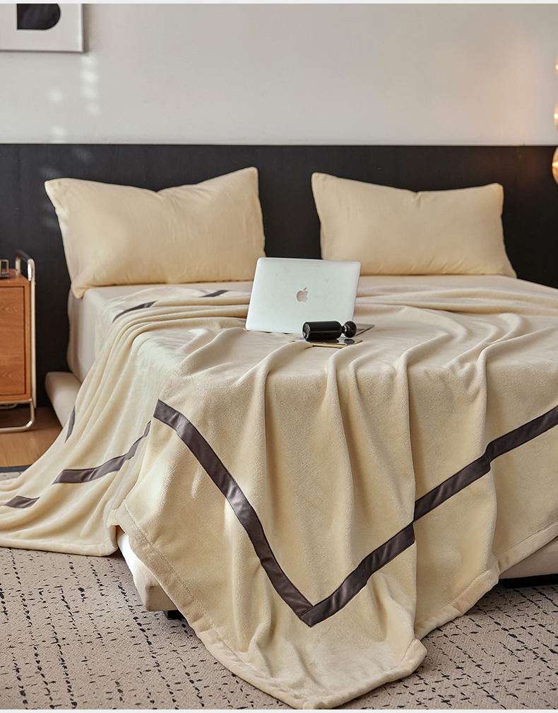 铭动家纺 2024新款牛奶绒拼接款纯色保暖毯 米白