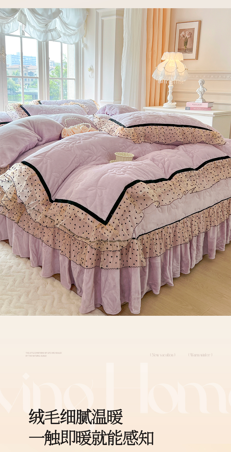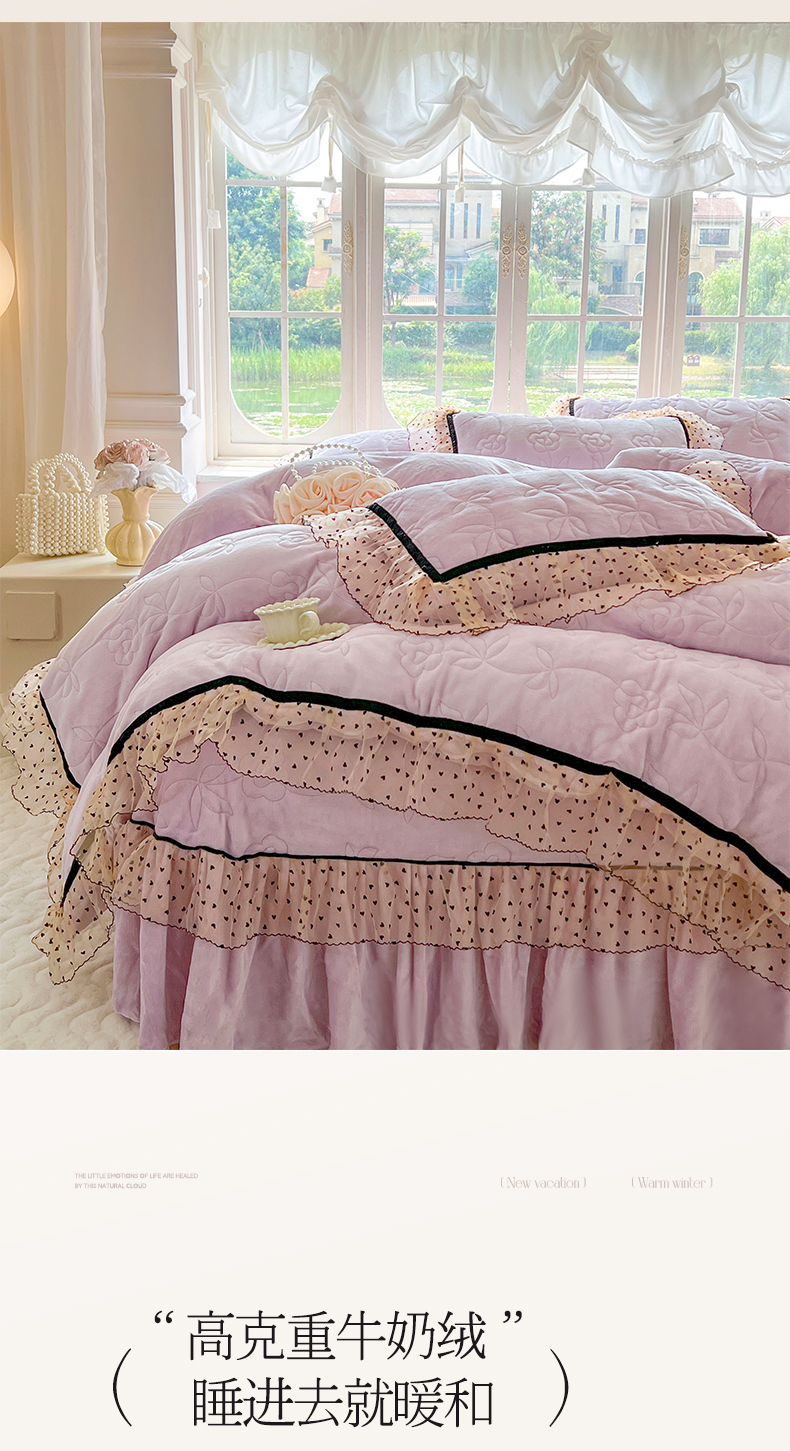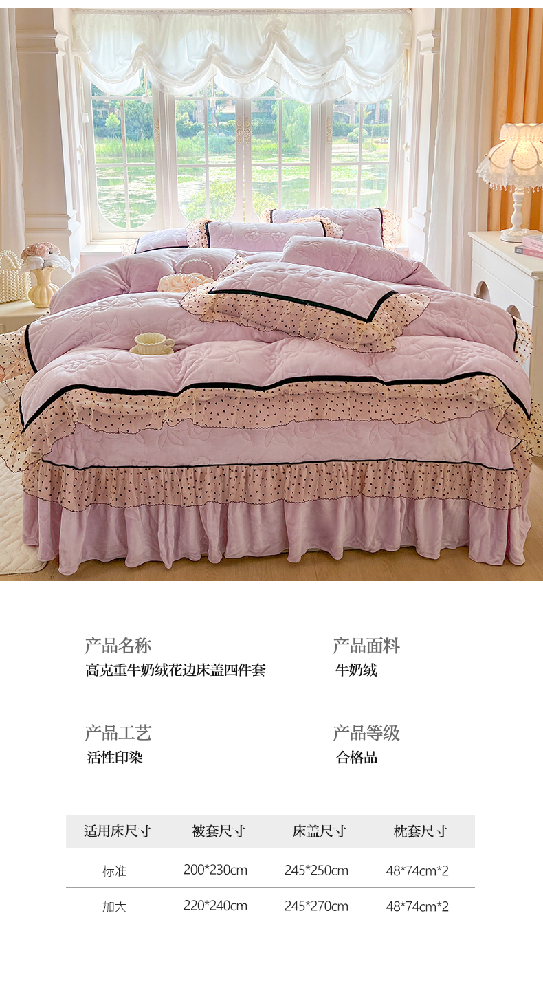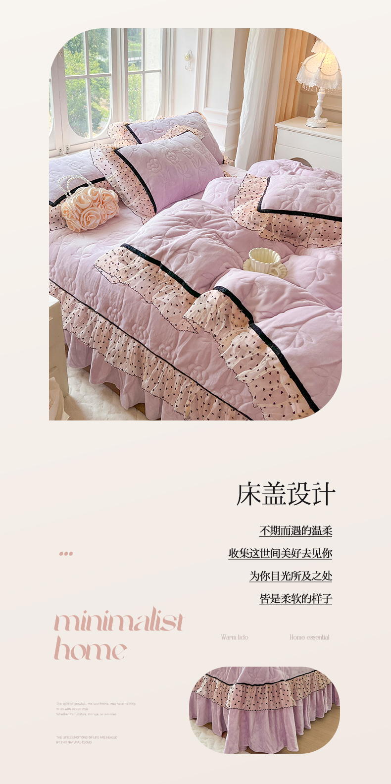 (总)网红馆(ck家纺) 2025新款牛奶绒花边床盖四件套-甜蜜蜜,甜蜜蜜-粉,甜蜜蜜-咖,甜蜜蜜-绿,甜蜜蜜-米,甜蜜蜜-紫
