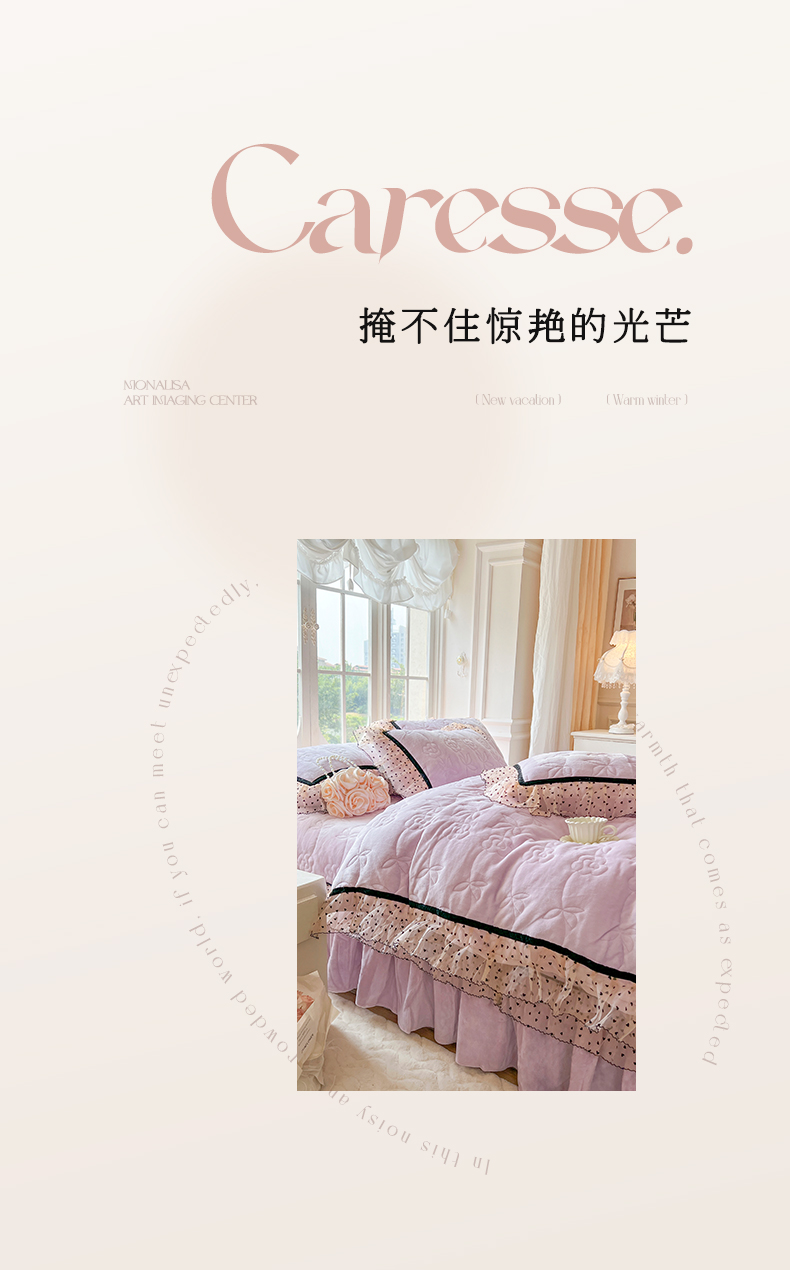 商品名称:网红馆(ck家纺) 2025新款牛奶绒床盖四件套-诺蔓 诺蔓-浅紫