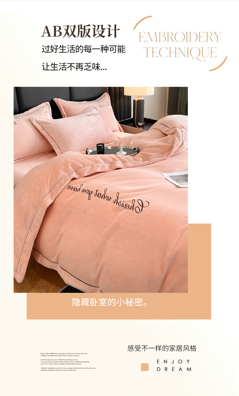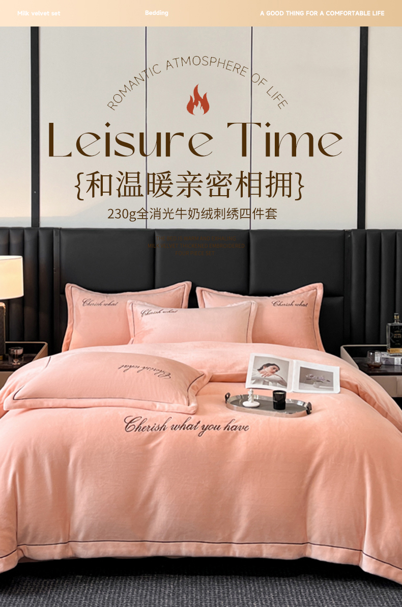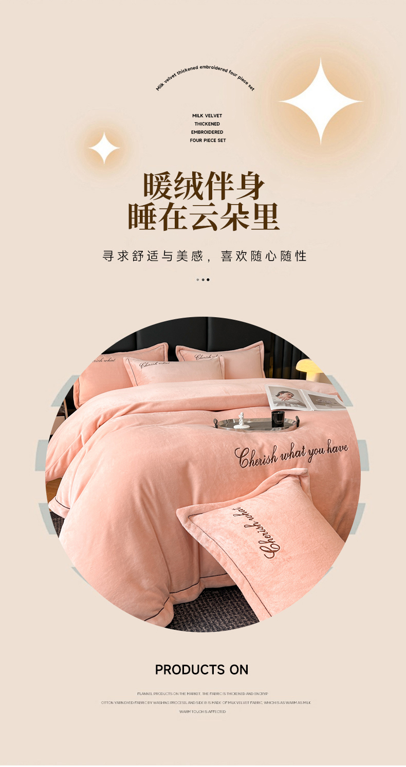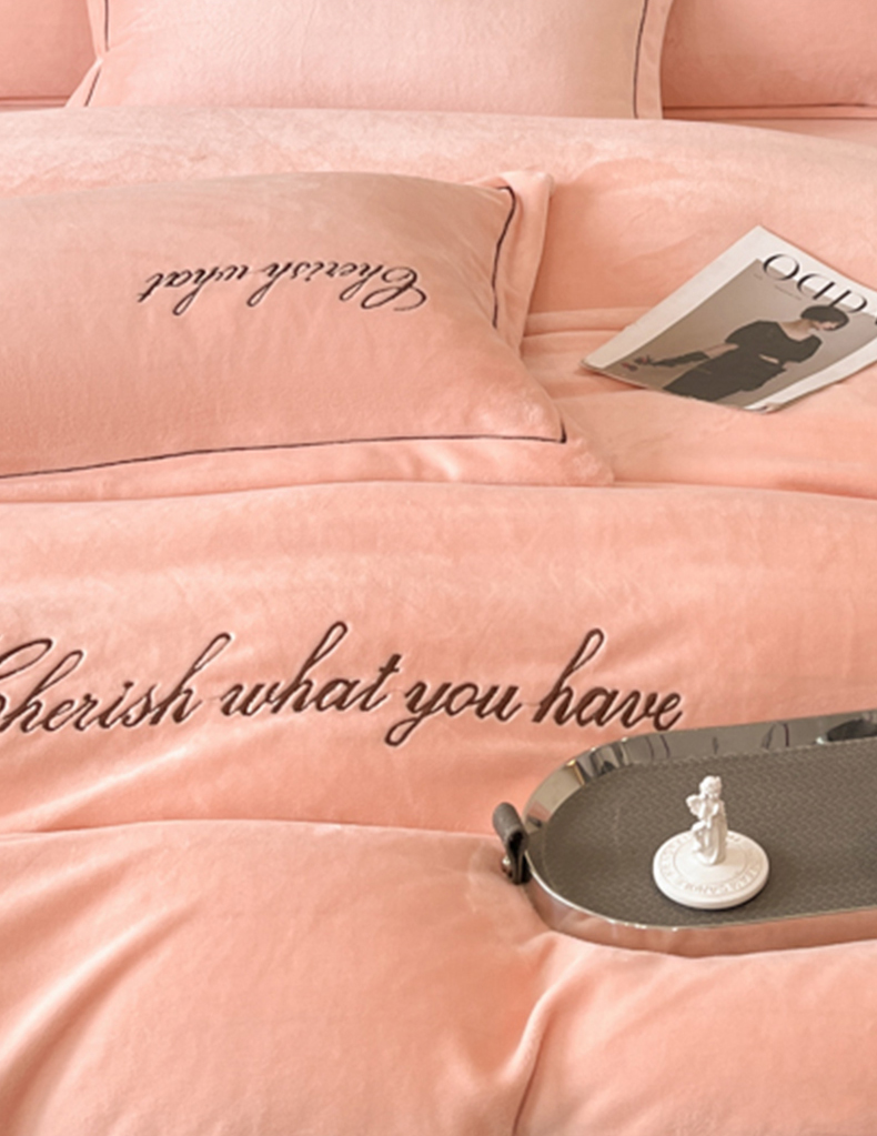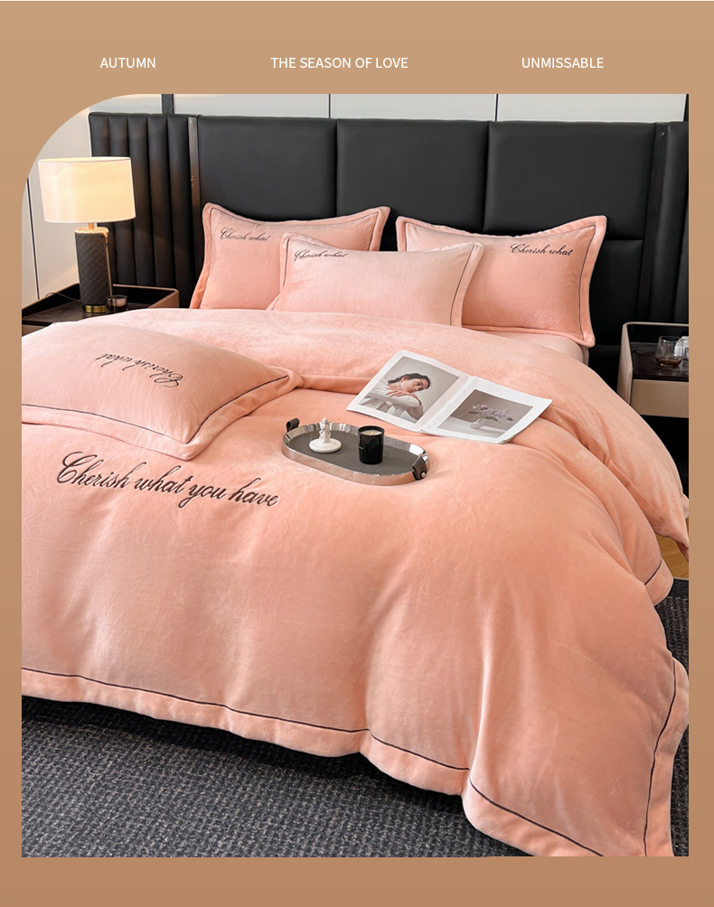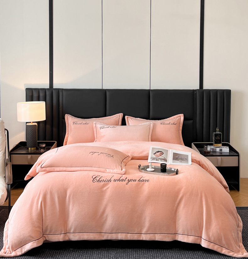 鸿织源家纺 2025新款230g全消光牛奶绒刺绣四件套 豆沙,豆沙