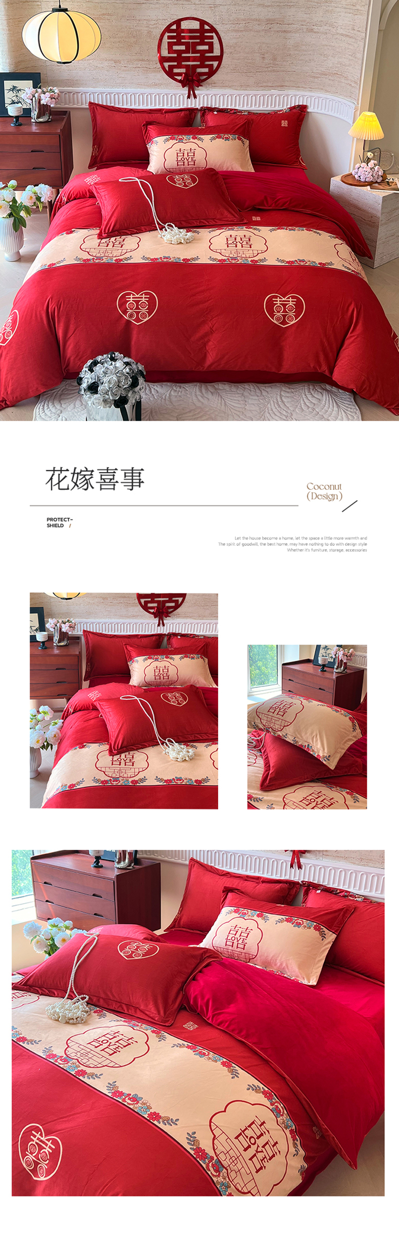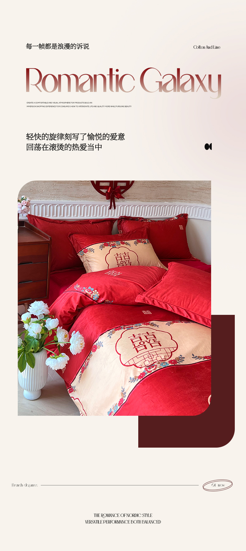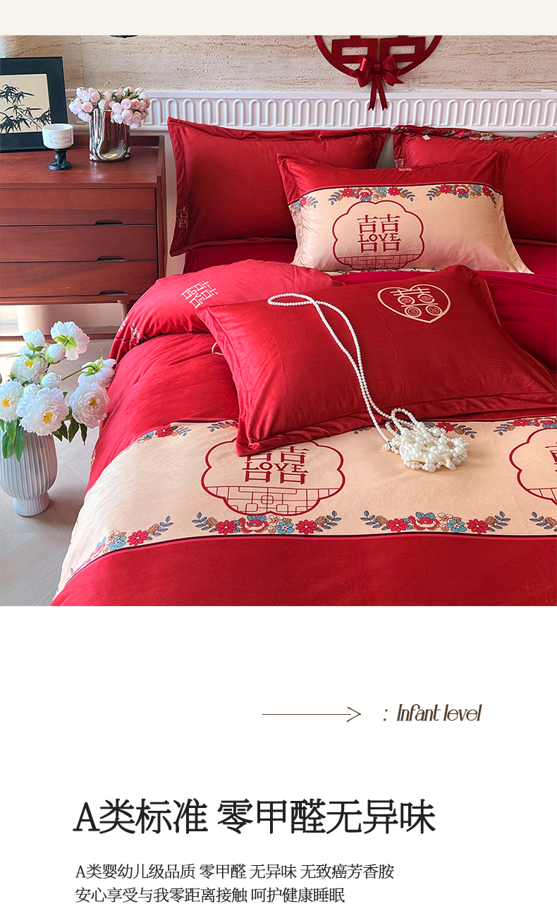 (总)慕希家纺 2025新款婴儿绒婚庆刺绣四件套,吾家有喜,永结同心