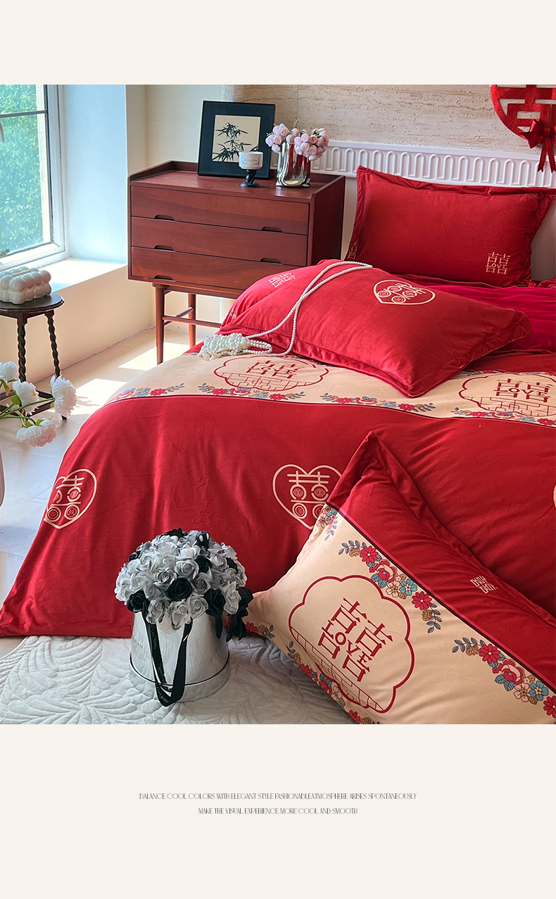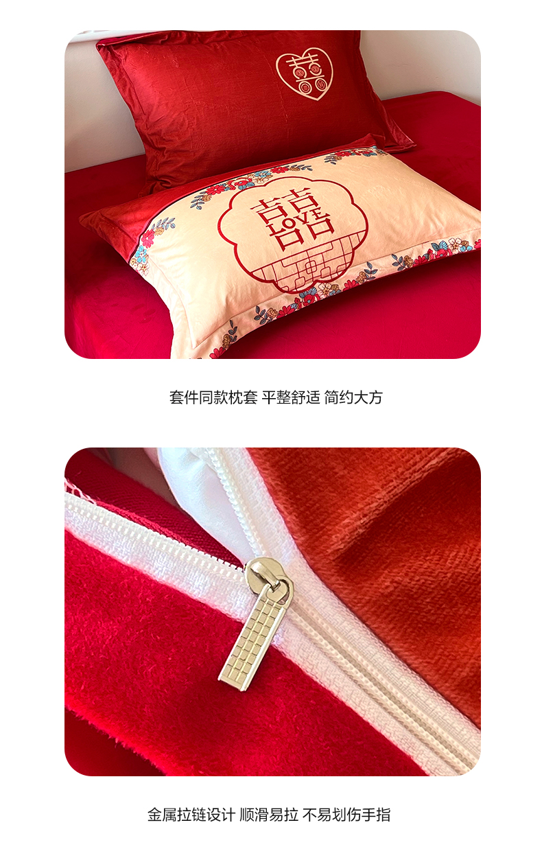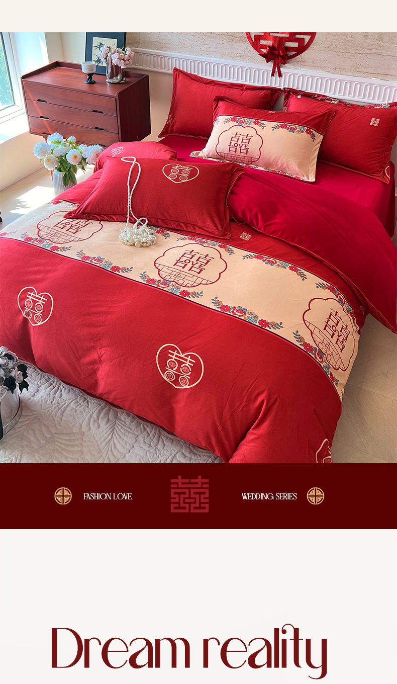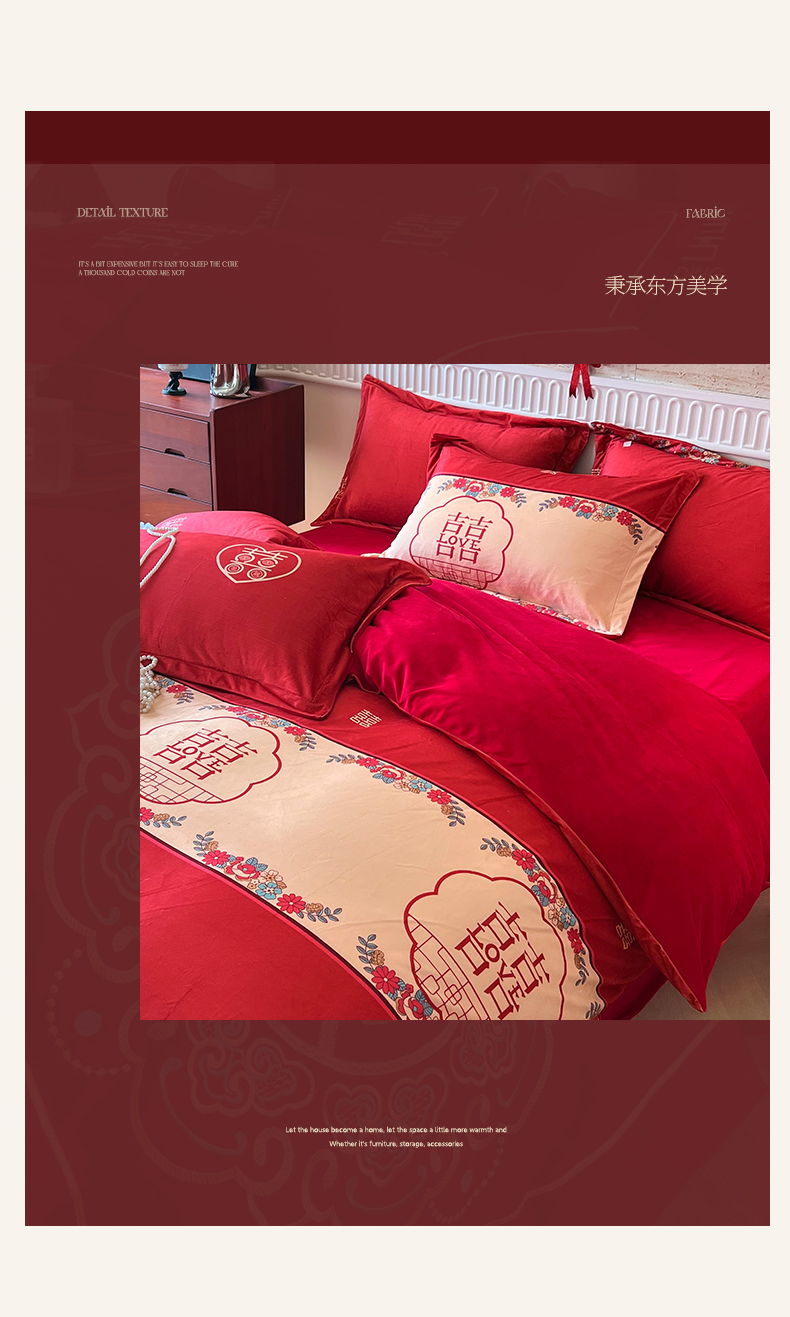 (总)慕希家纺 2025新款婴儿绒婚庆刺绣四件套,吾家有喜,永结同心