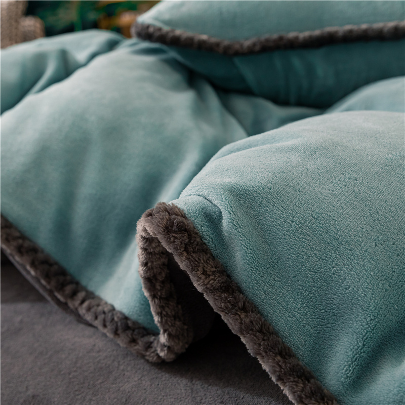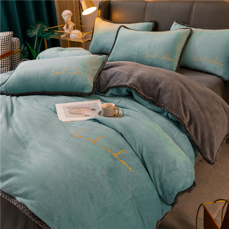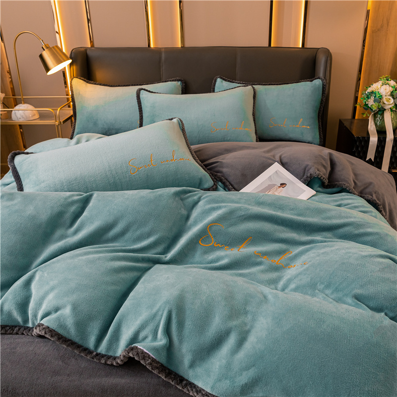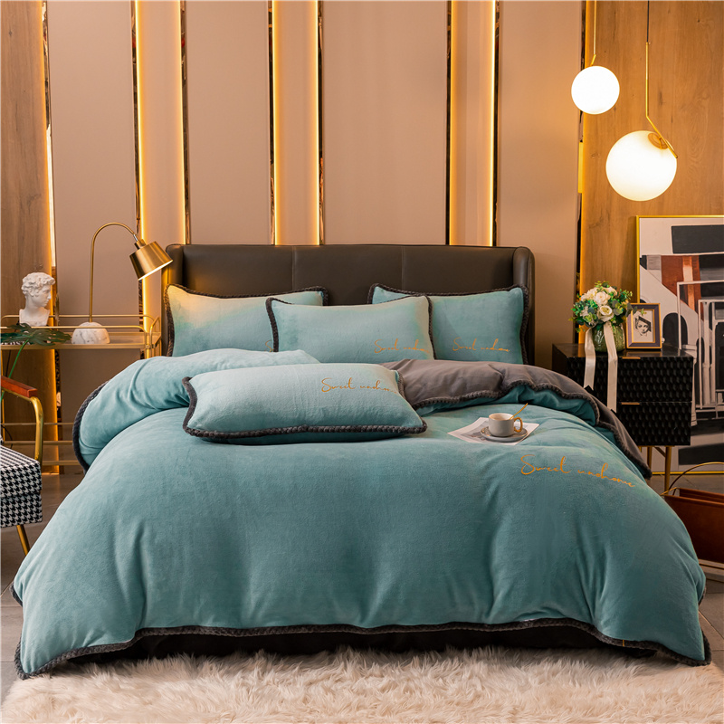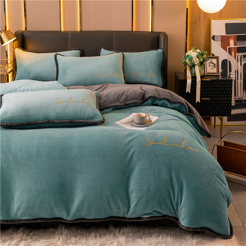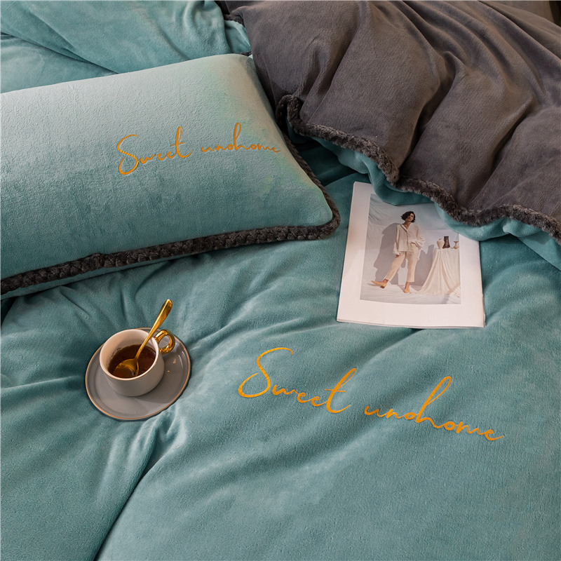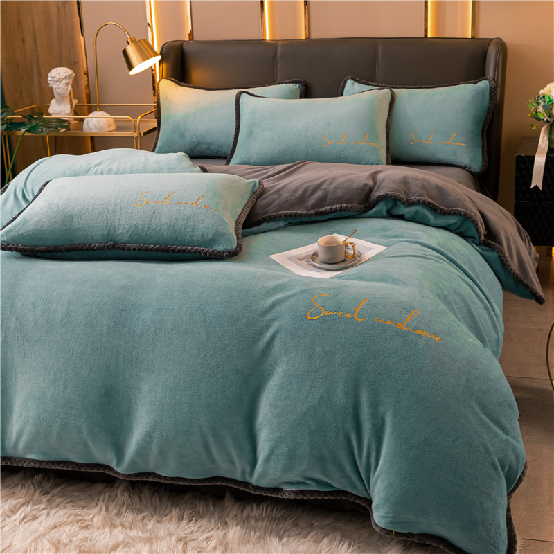 当前位置: 91家纺网 > 商品网购 > 床品套件 > 四件套 > 牛奶绒四件套 > 吾诺 2024新款双拼色牛奶绒四件套 风格二 双拼湖兰