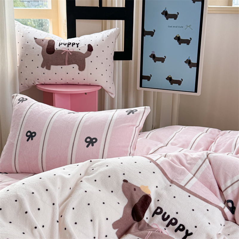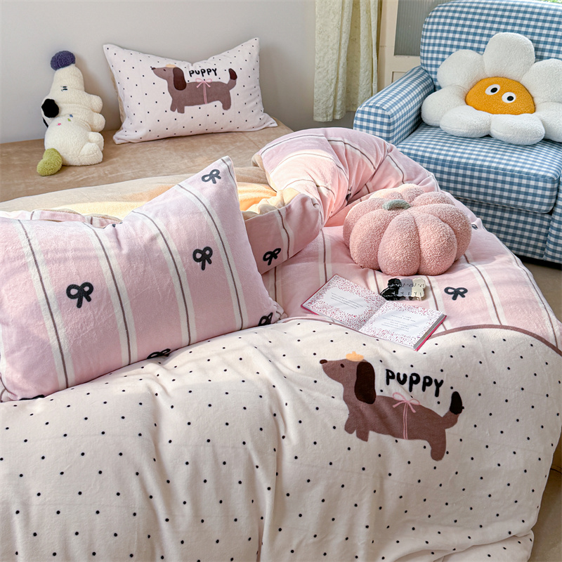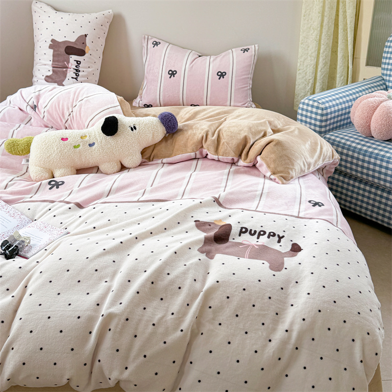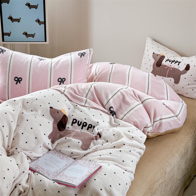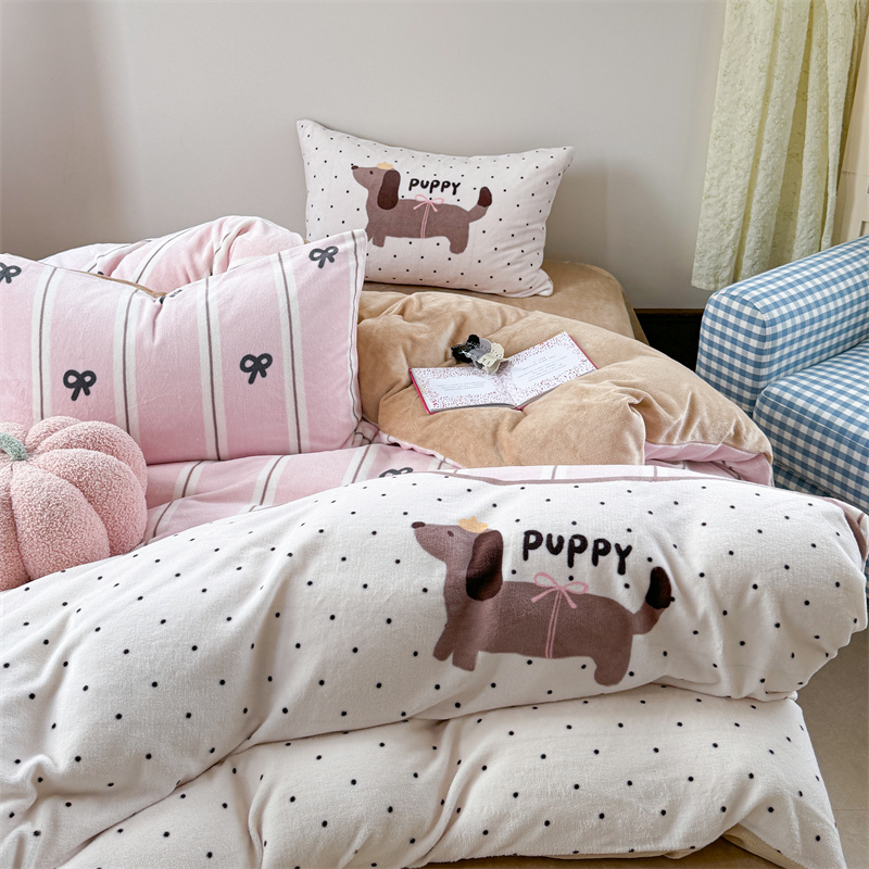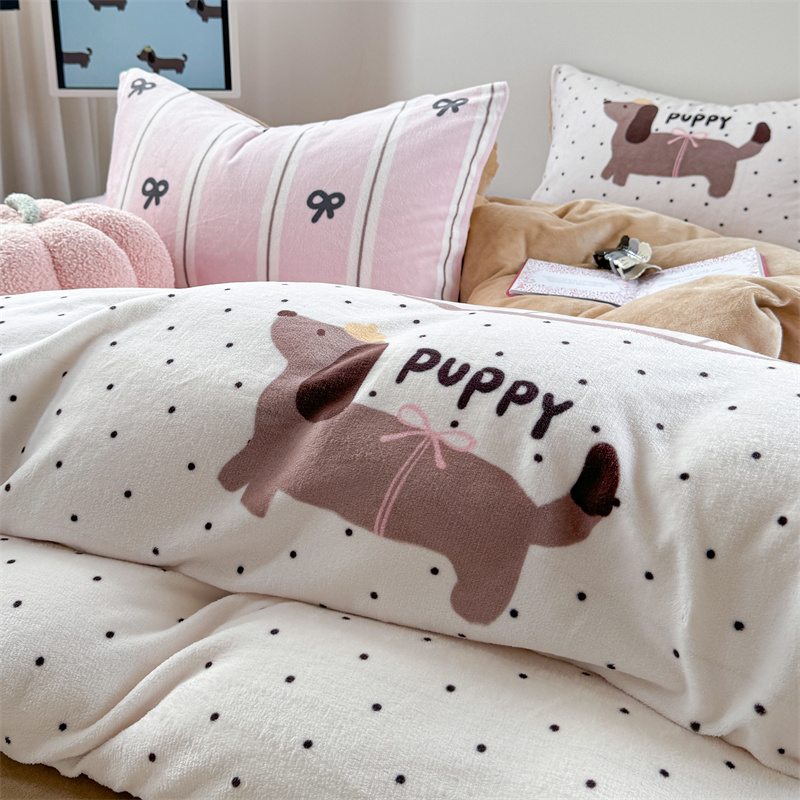柚子YOUTH 2024新款大版印花牛奶绒四件套 点点狗