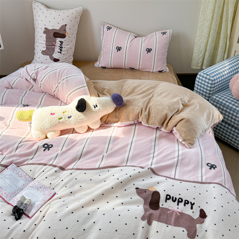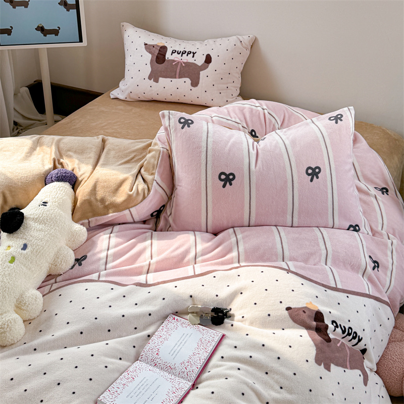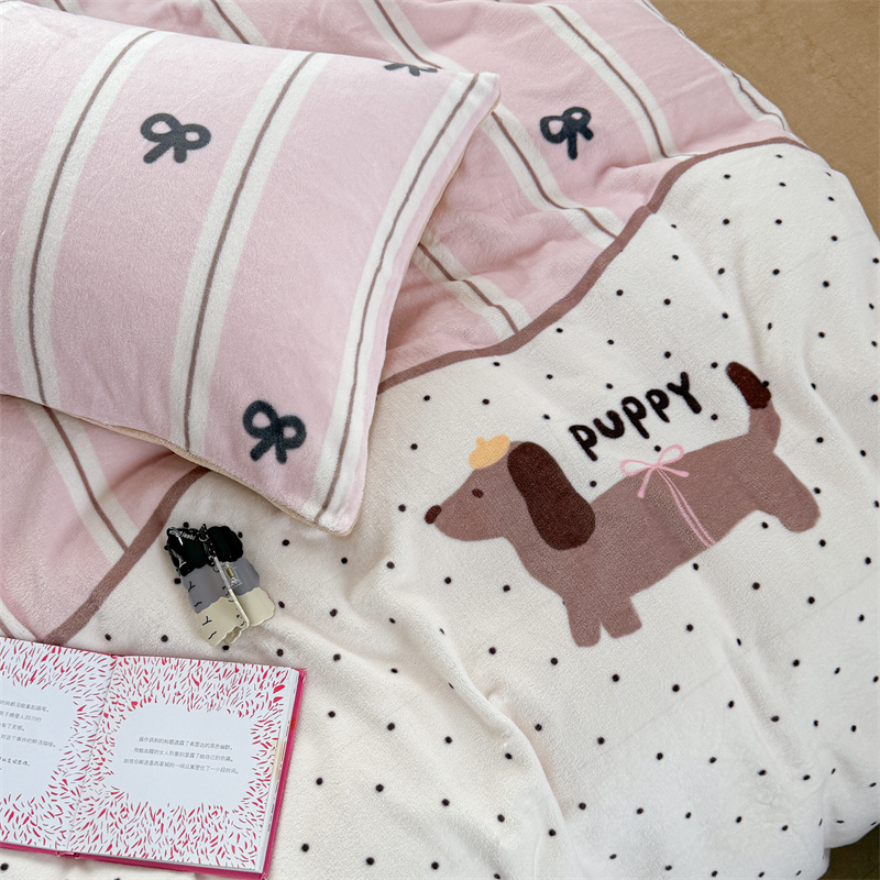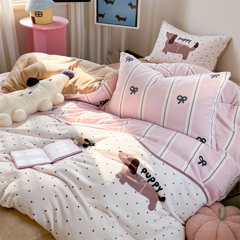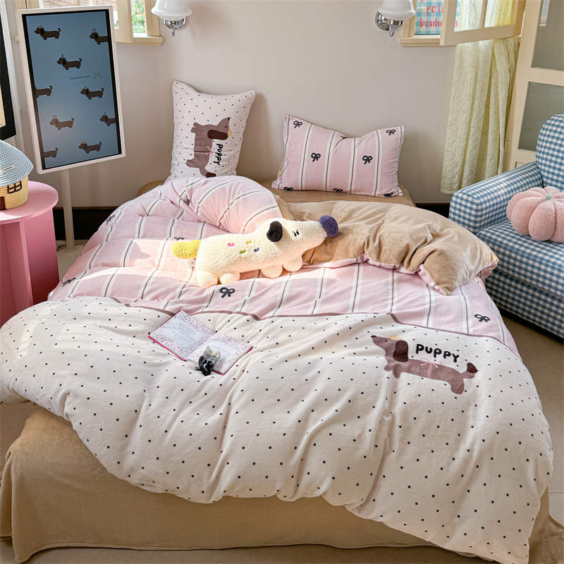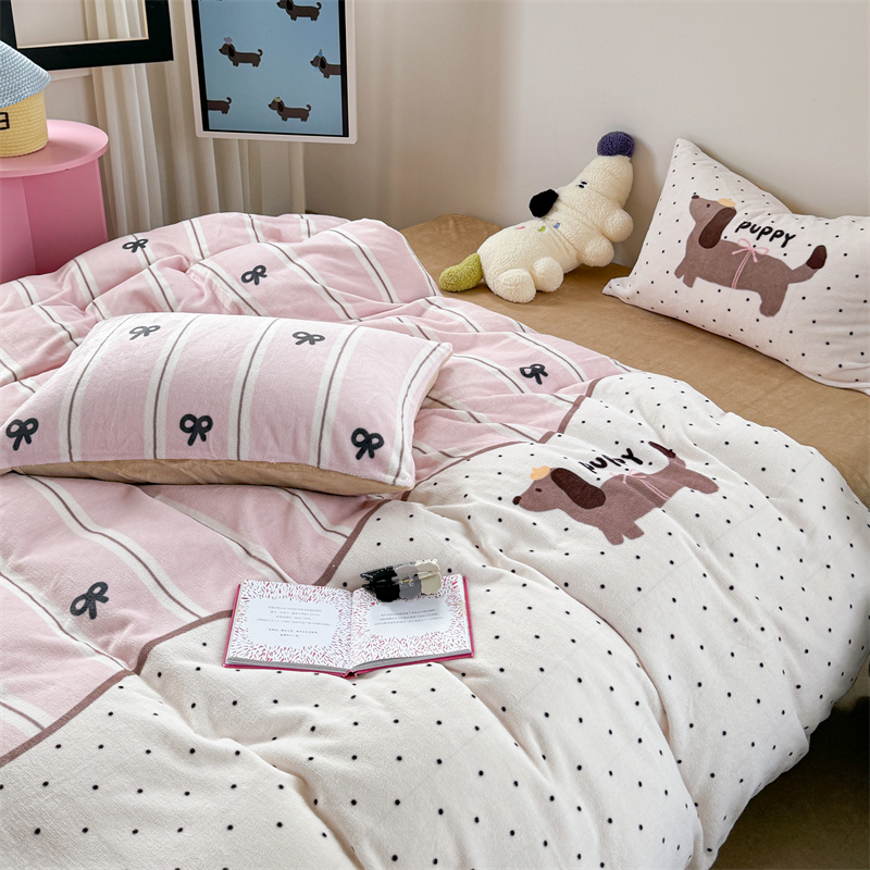 柚子YOUTH 2024新款大版印花牛奶绒四件套 点点狗