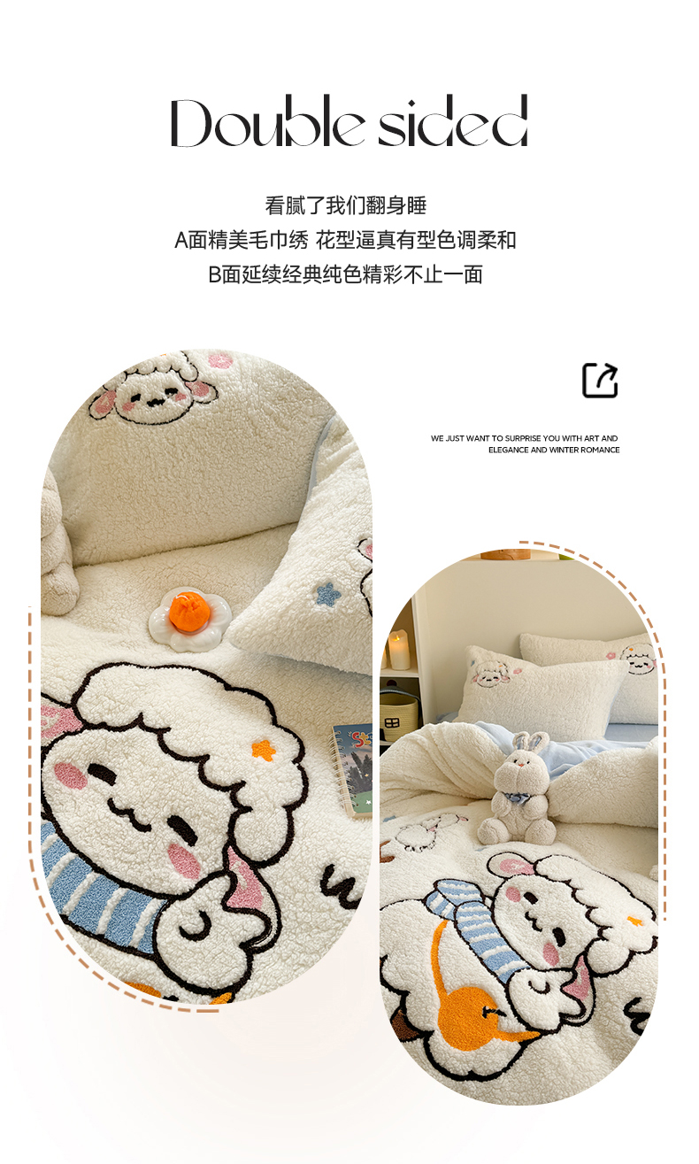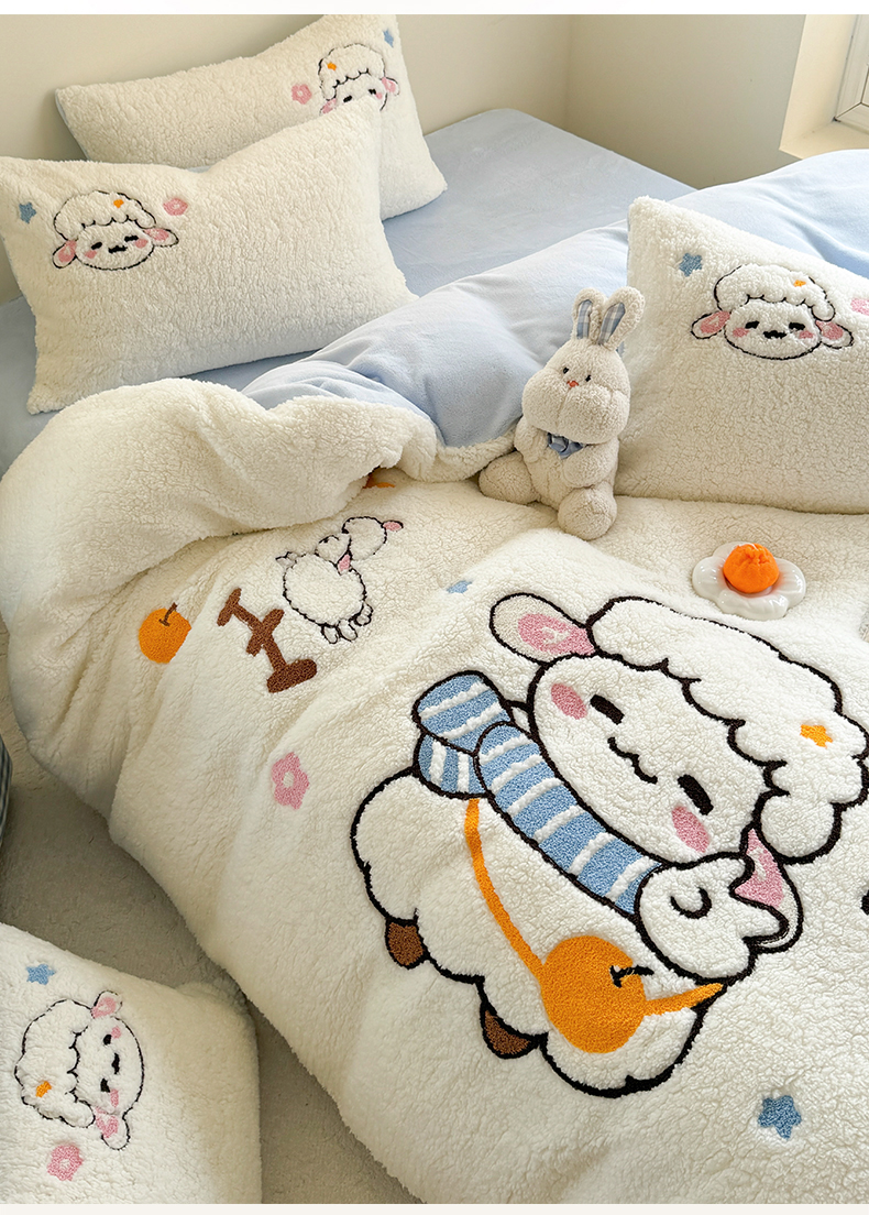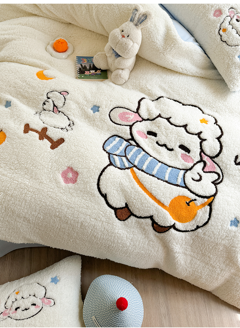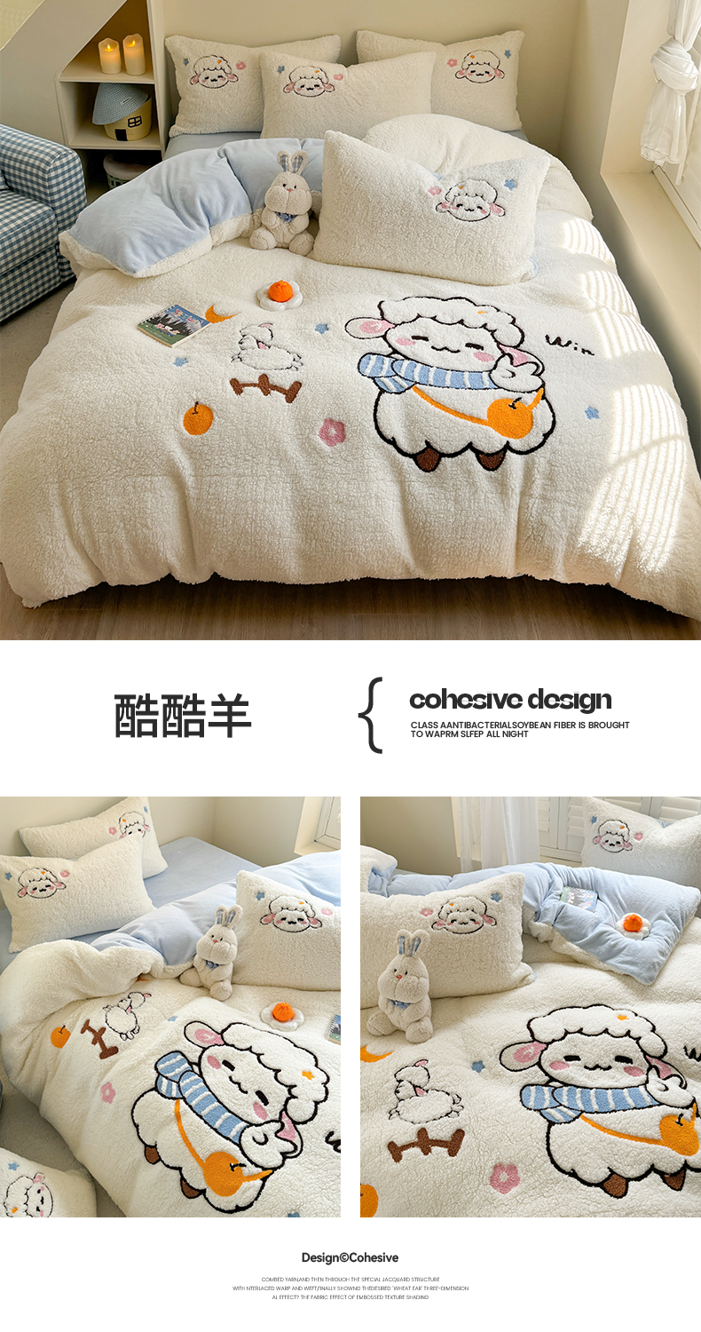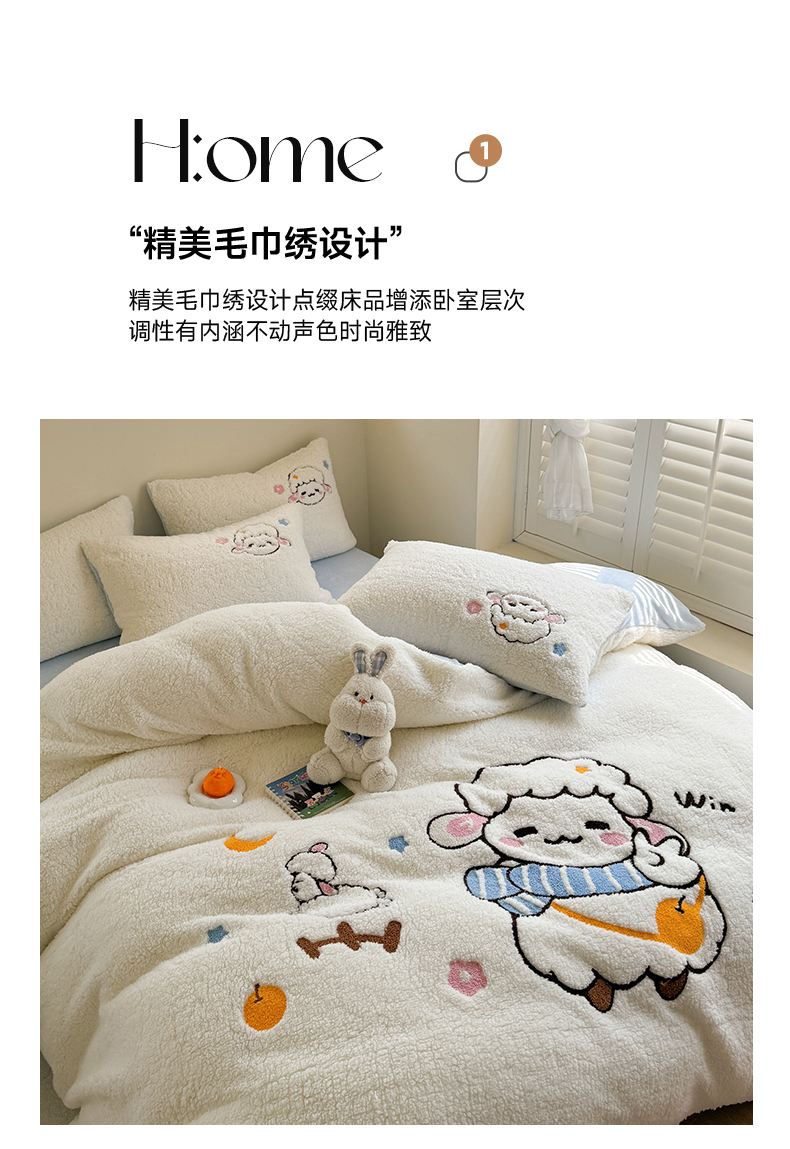 当前位置: 91家纺网 > 商品网购 > 床品套件 > 四件套 > 牛奶绒四件套 > 蜜柚 2024新款高克重羊羔绒牛奶绒毛巾绣四件套 酷酷羊