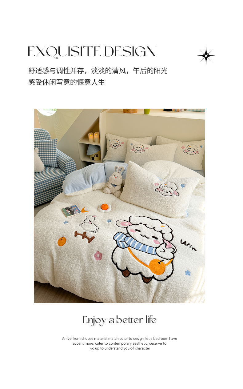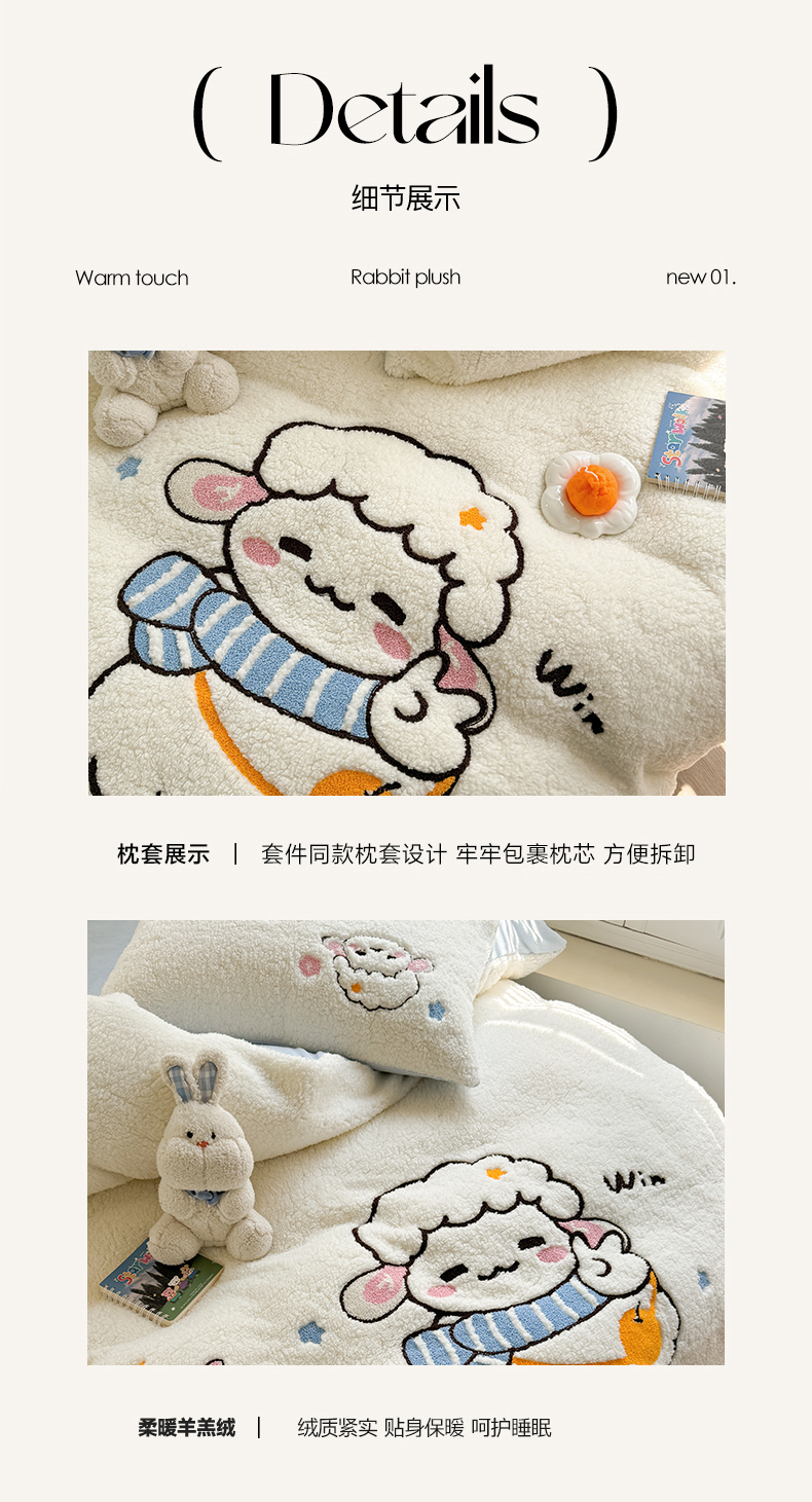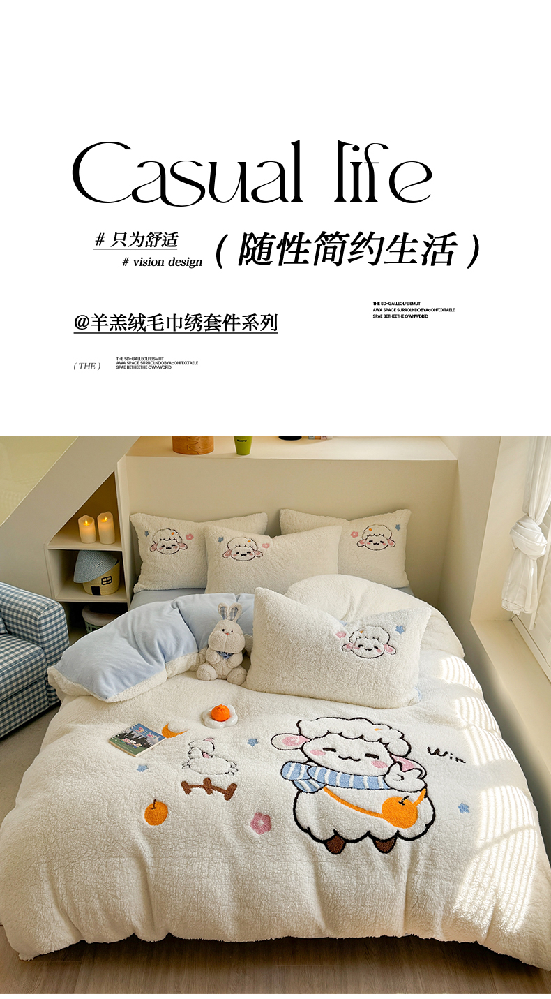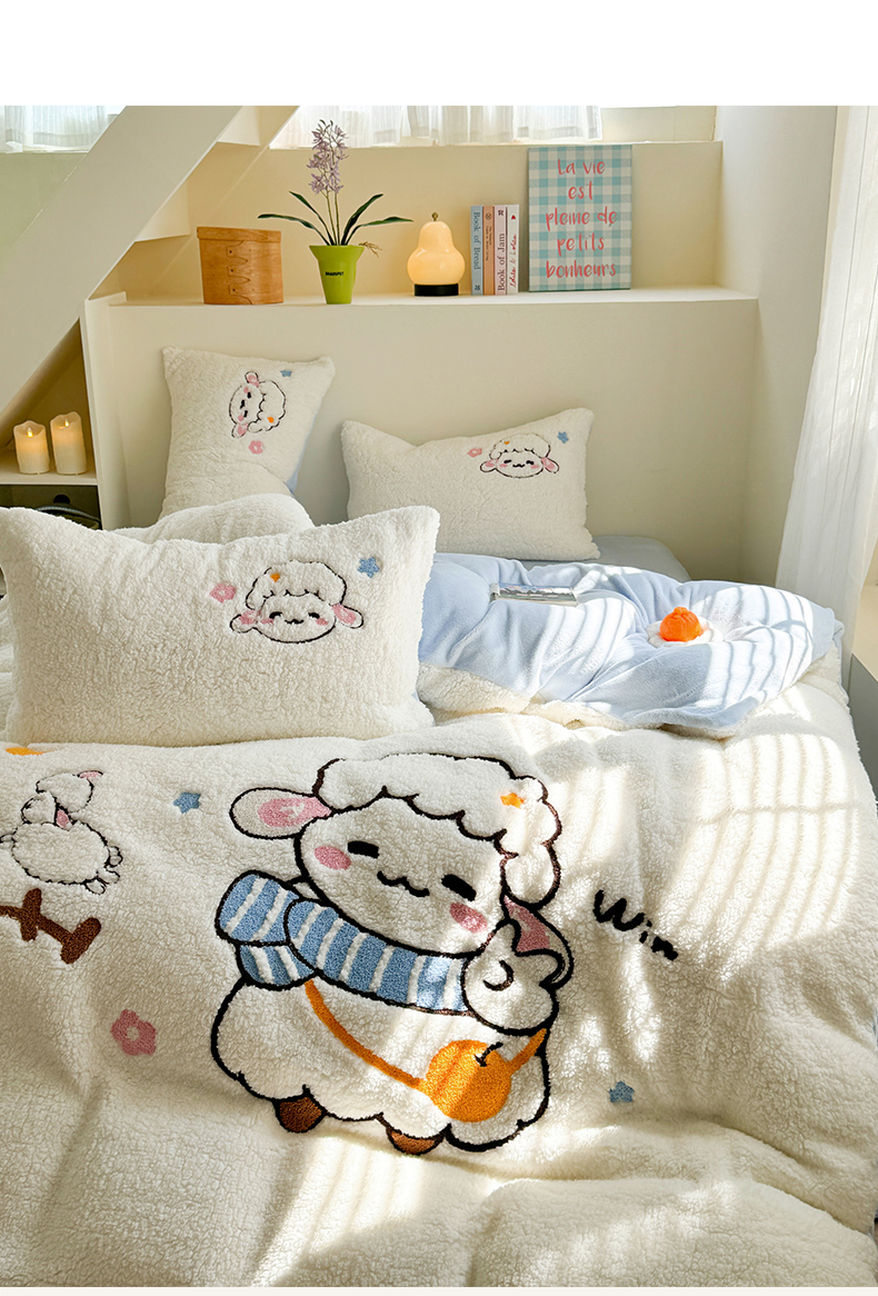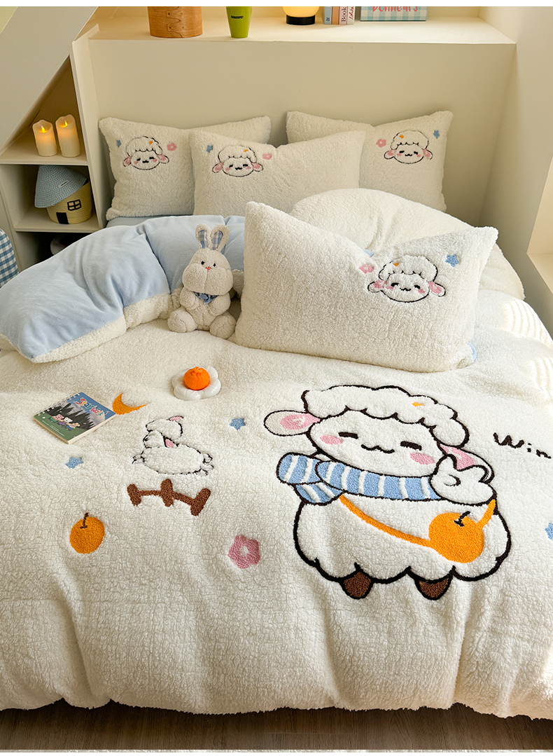 当前位置: 91家纺网 > 商品网购 > 床品套件 > 四件套 > 牛奶绒四件套 > 蜜柚 2024新款高克重羊羔绒牛奶绒毛巾绣四件套 酷酷羊