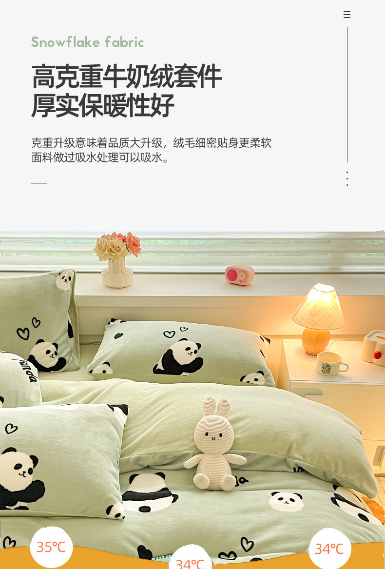 当前位置: 91家纺网 > 商品网购 > 床品套件 > 四件套 > 牛奶绒四件套 > 三朵家纺 2024新款牛奶绒混搭系列四件套 熊猫乐园