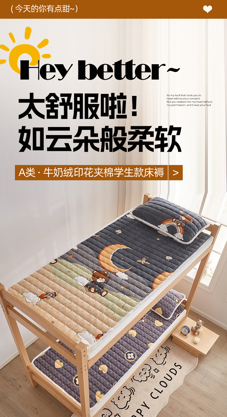 当前位置: 91家纺网 > 商品网购 > 床垫/床褥 > 普通床垫 > 东宇床垫 2025新款牛奶绒床褥学生床 梦星空