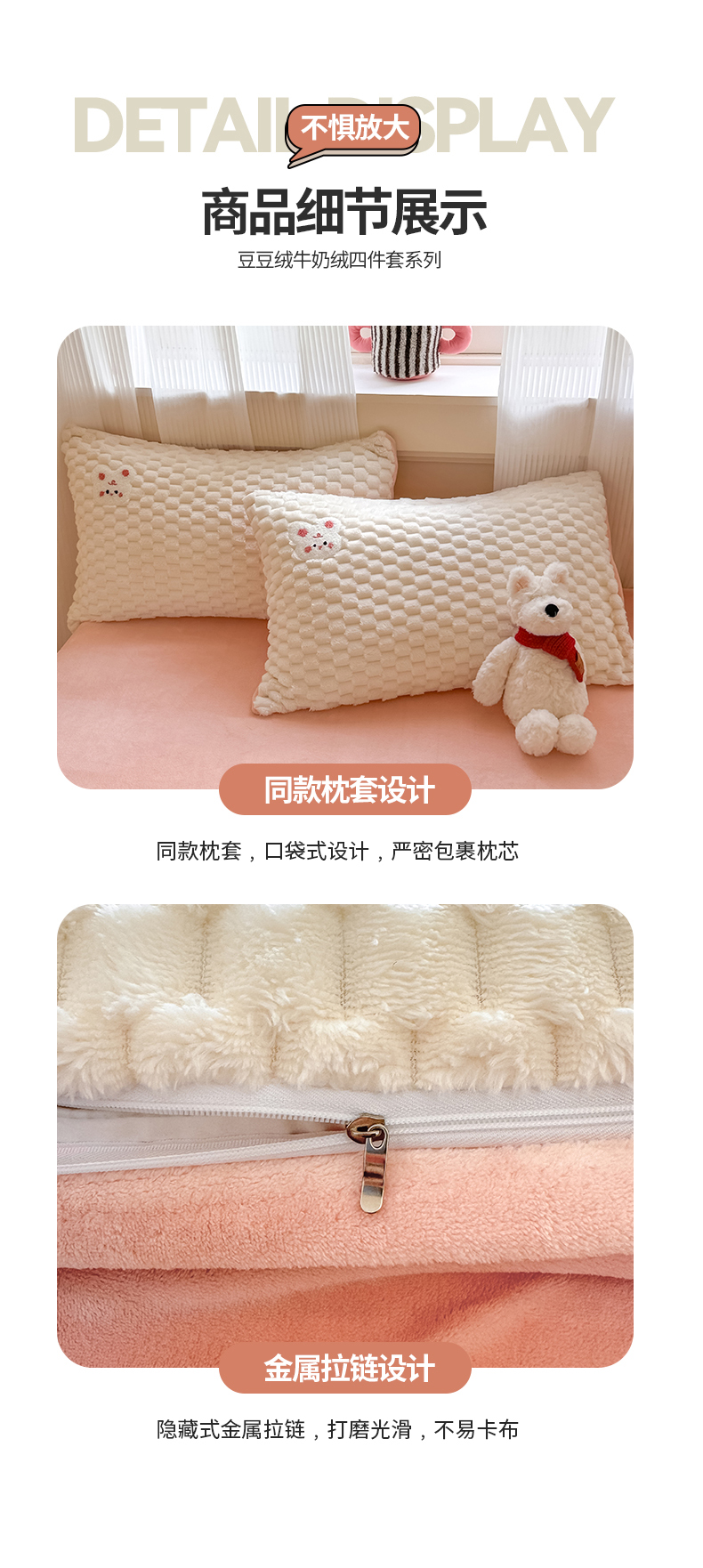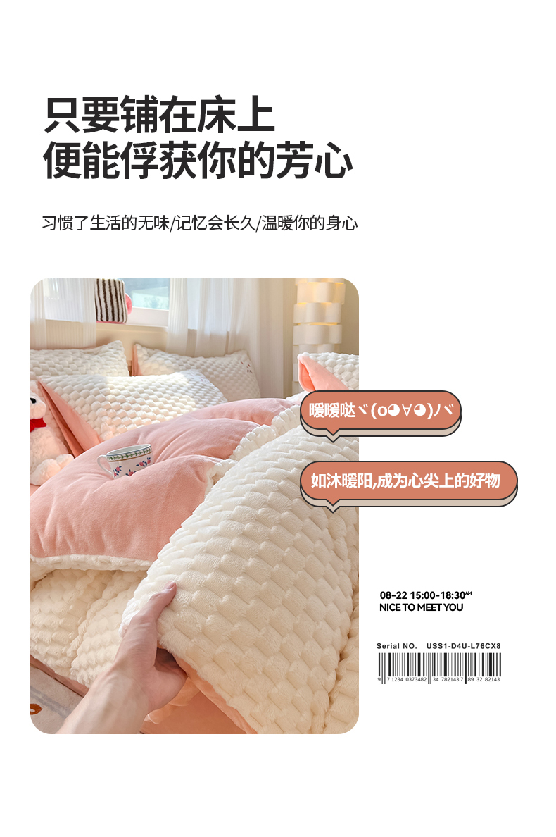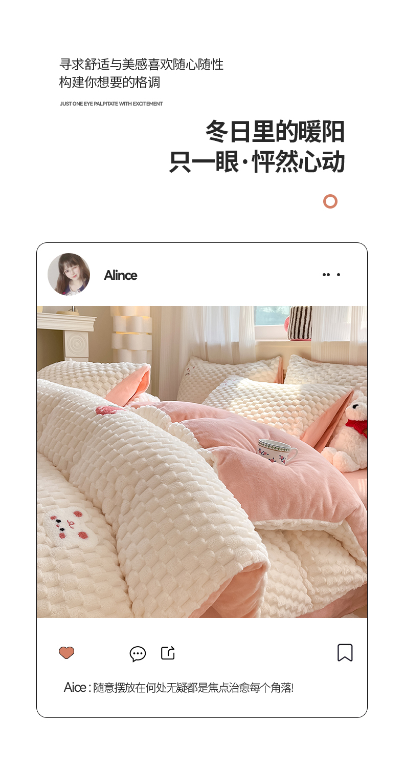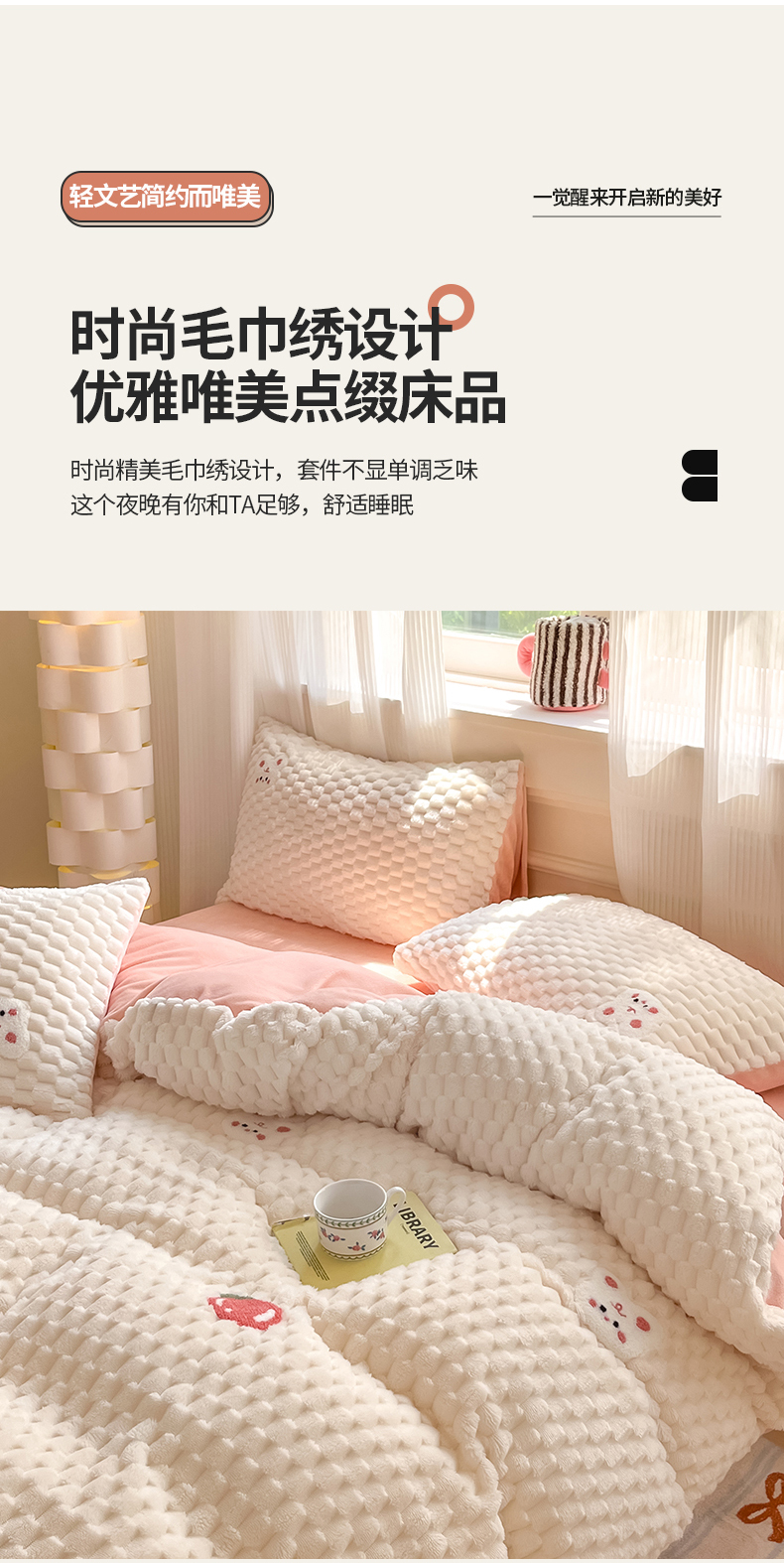 商品名称:澳梵家居 2024新款小清新豆豆绒牛奶绒毛巾绣四件套 快乐兔-粉