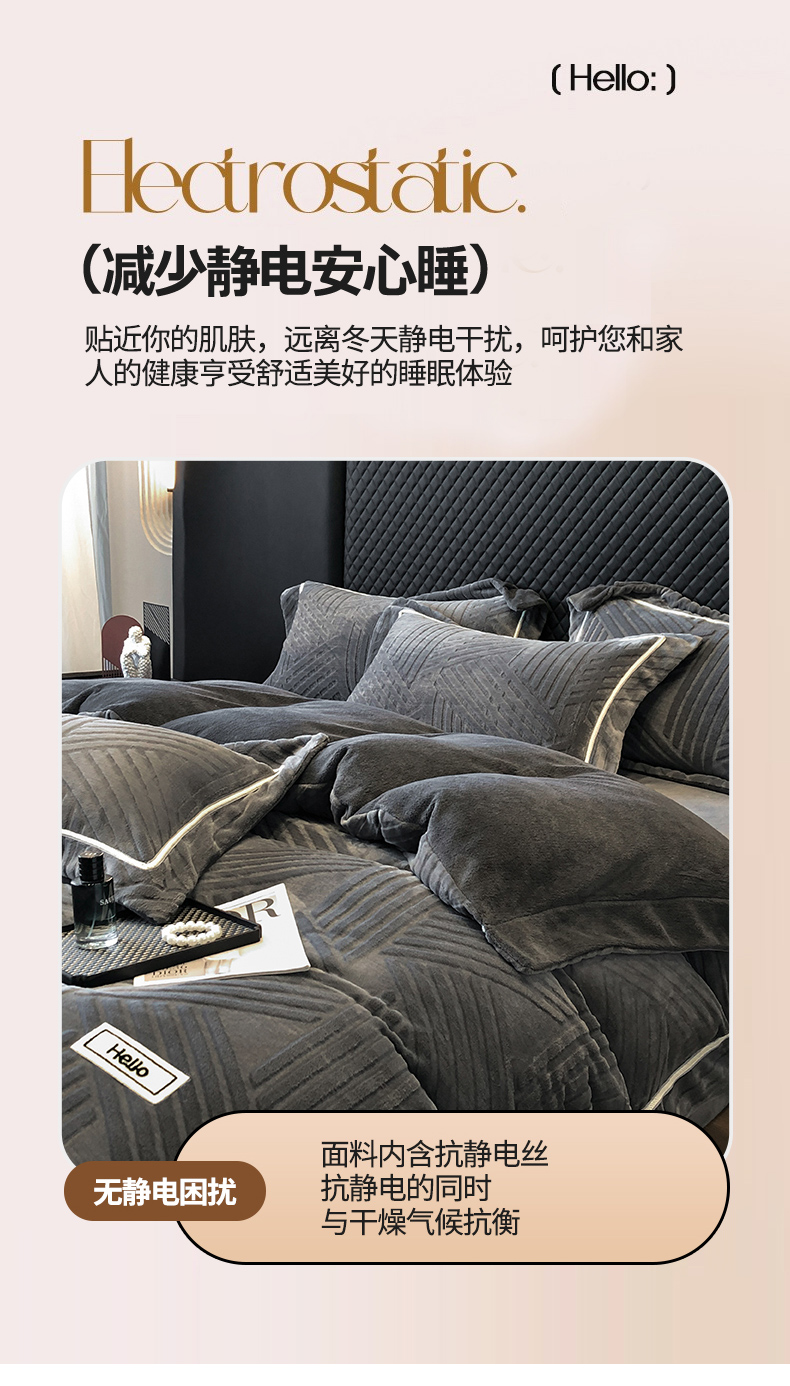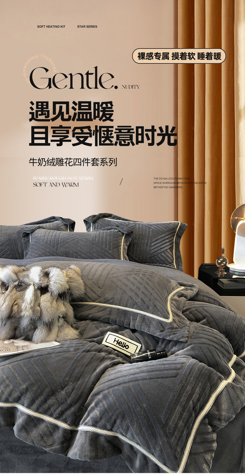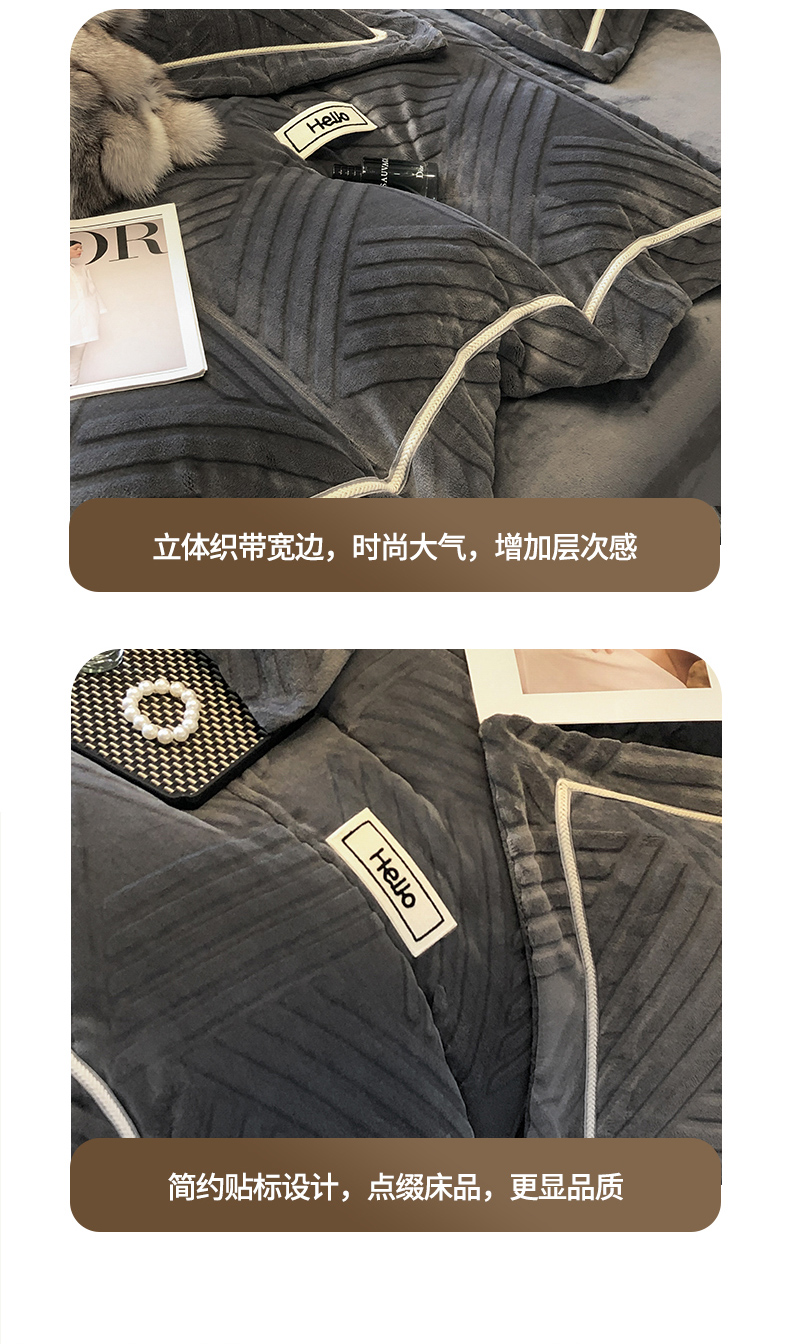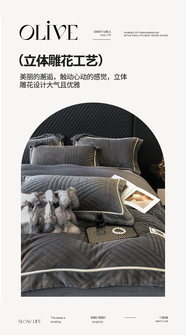 商品名称:首尔家纺 2024新款雕花牛奶绒律动系列四件套 律动-深灰