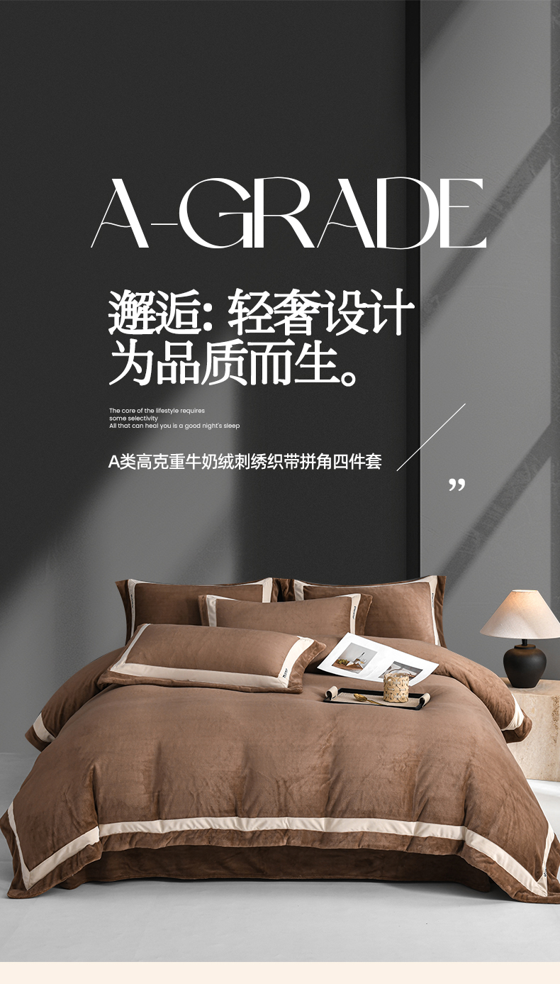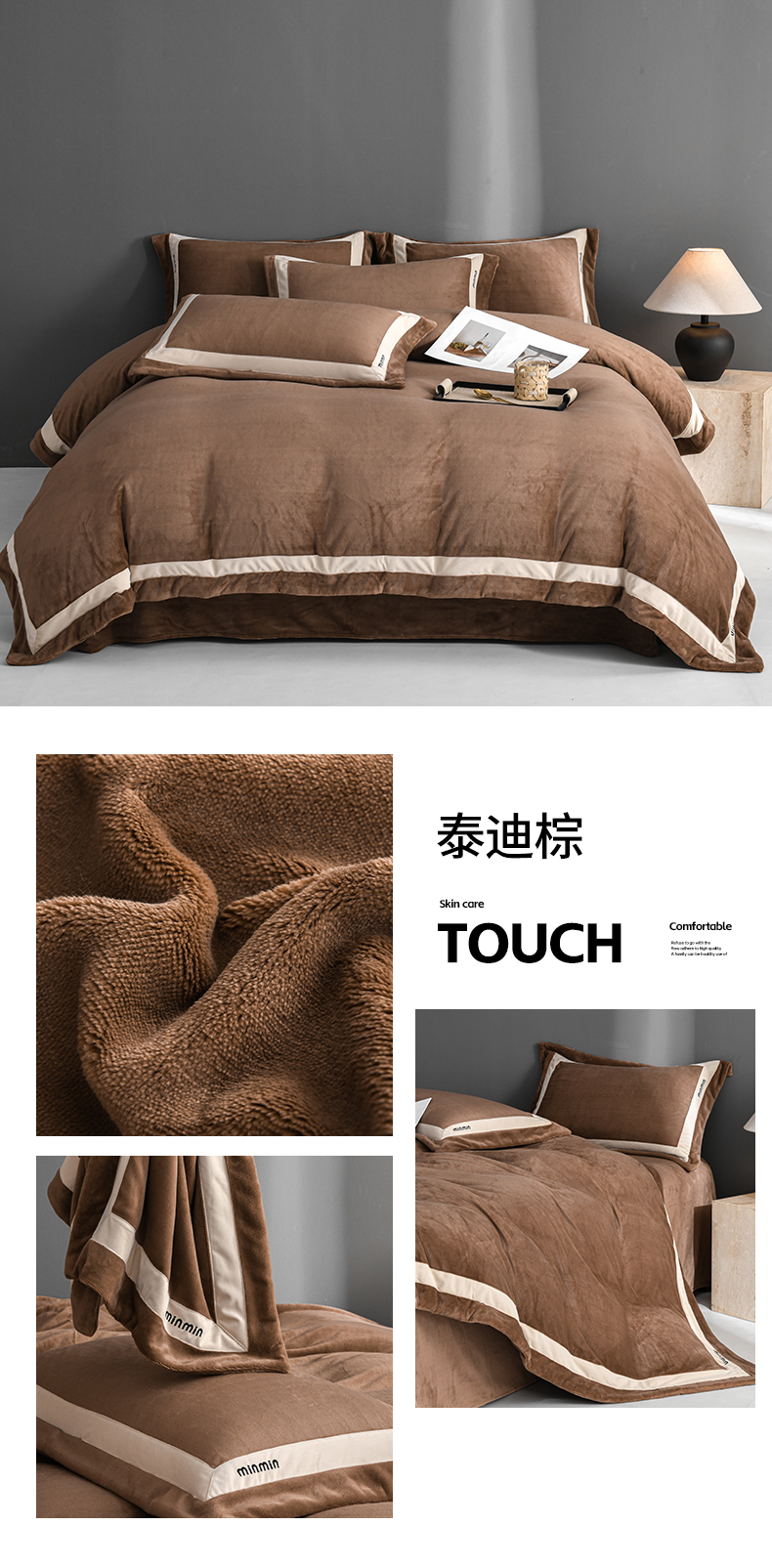 当前位置: 91家纺网 > 商品网购 > 床品套件 > 四件套 > 牛奶绒四件套 > 网客家纺 2024新款minmin牛奶绒刺绣四件套 minmin-泰迪棕