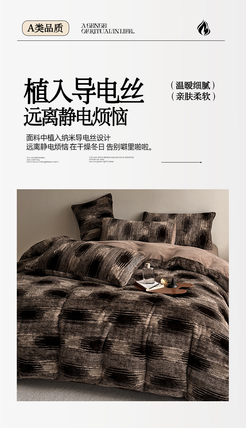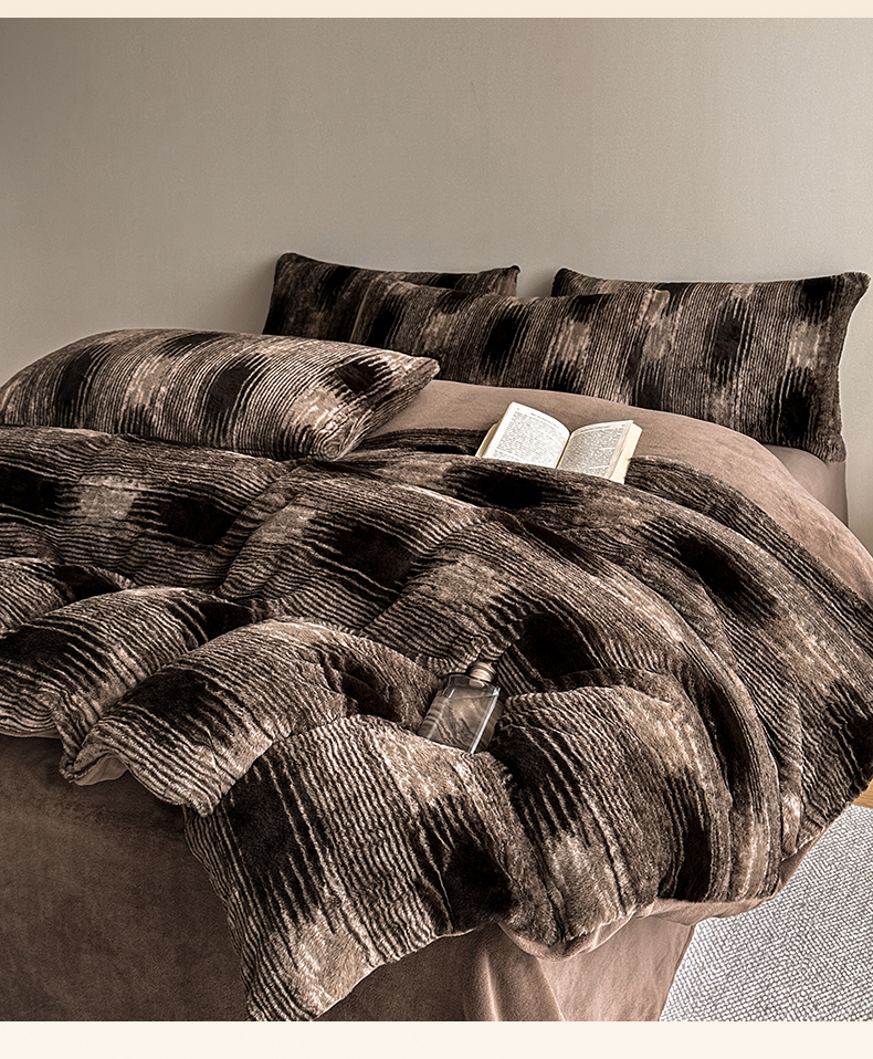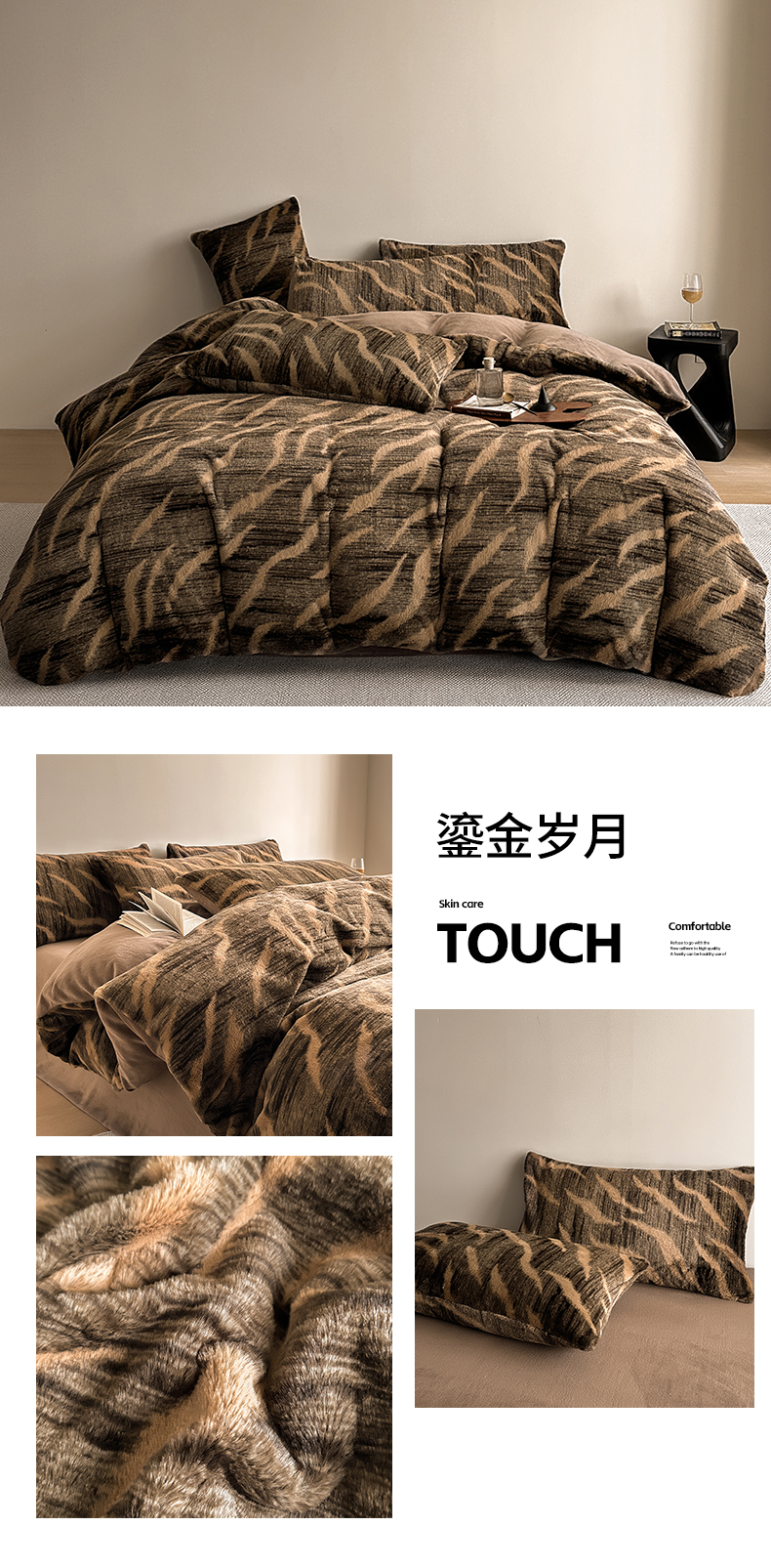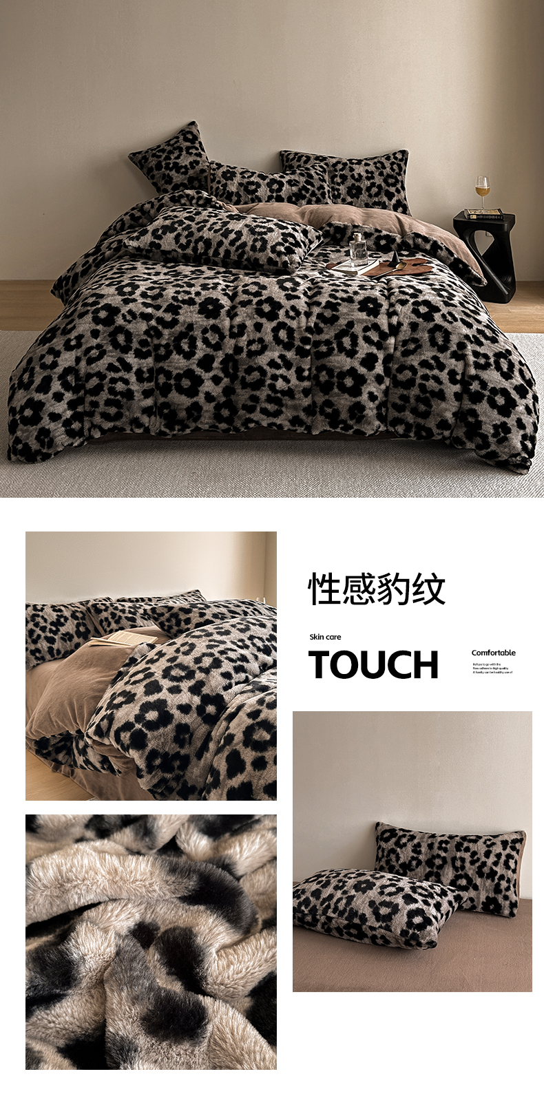 (总)网客家纺 2025新款羊毛绒牛奶绒夹棉床盖四件套,豹点-深灰,简格-黑色,简格-咖色,空间-红色,泥点-灰色,泥点-咖色,维奥-灰色,斜格-灰色,斜格-墨绿