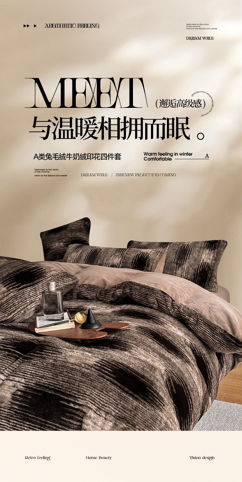 (总)网客家纺 2024新款兔毛绒牛奶绒印花四件套-繁花系列