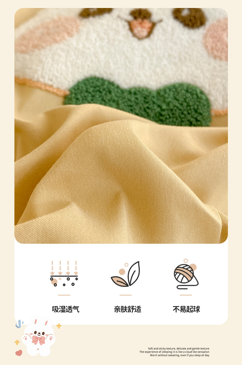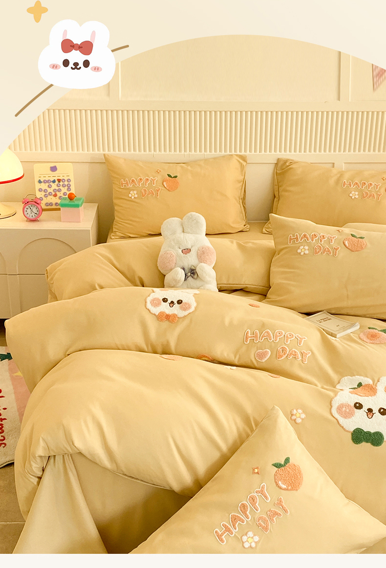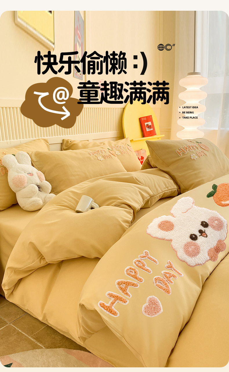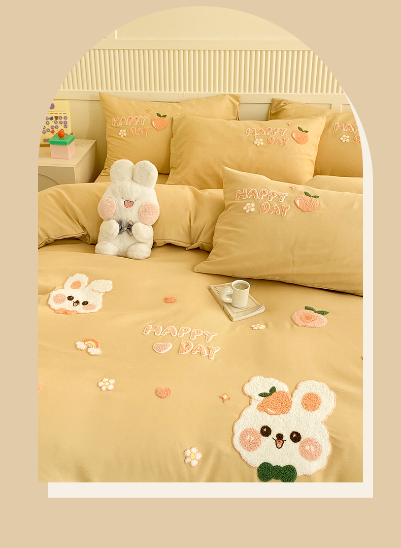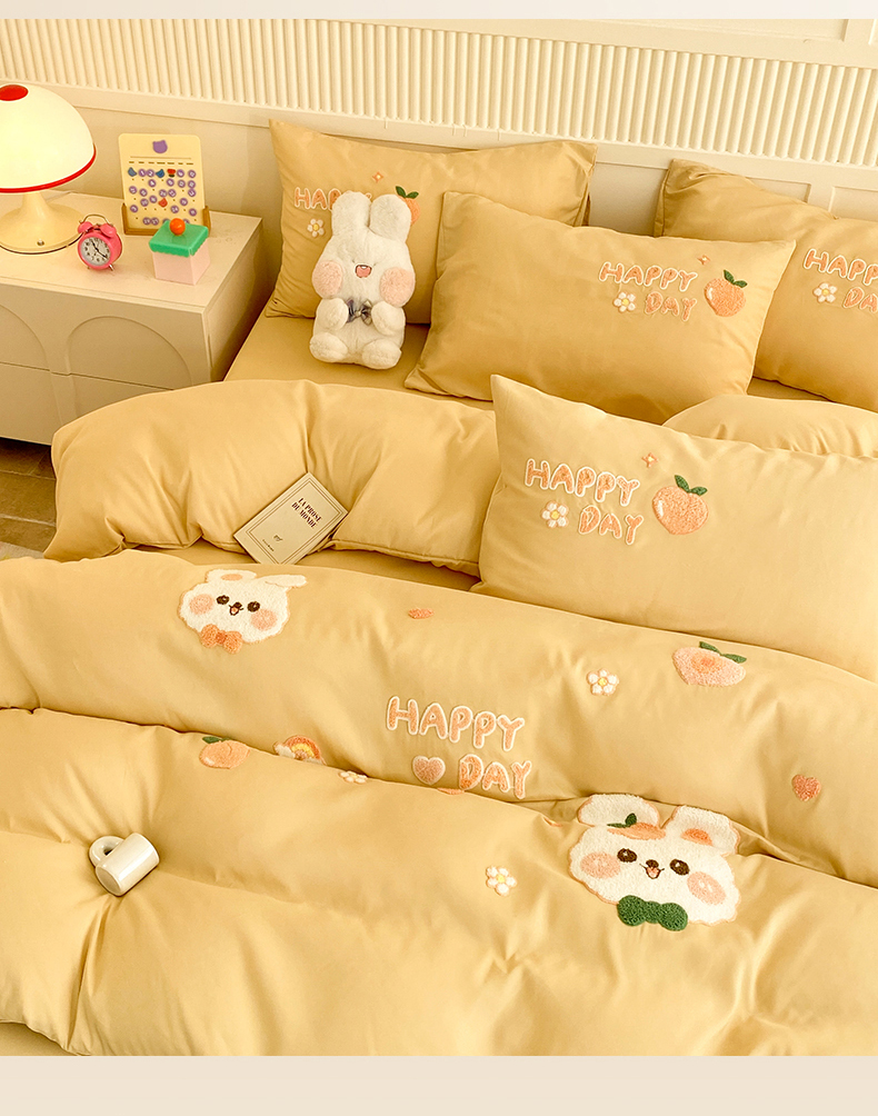 当前位置: 91家纺网 > 商品网购 > 床品套件 > 四件套 > 水洗棉四件套 > 一左一右 2024新款亲肤磨毛水洗棉立体毛巾绣花卡通四件套儿童学生三件套床笠(提供买家秀) 快乐兔兔-鹅黄