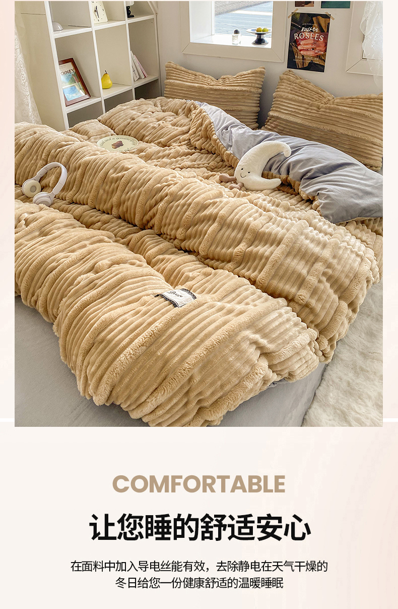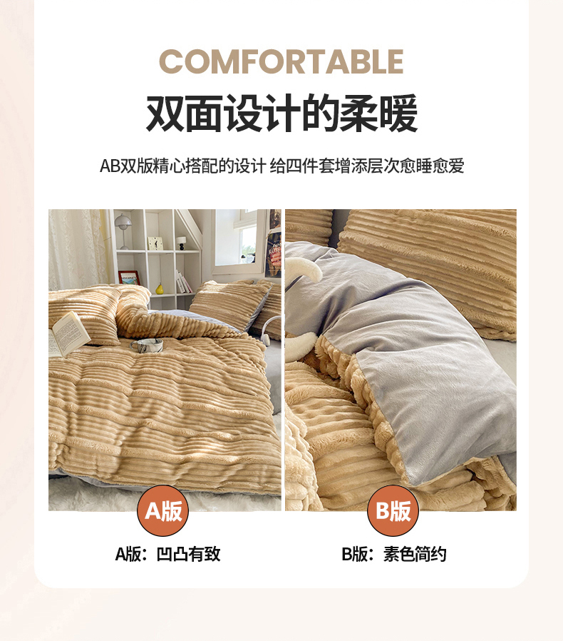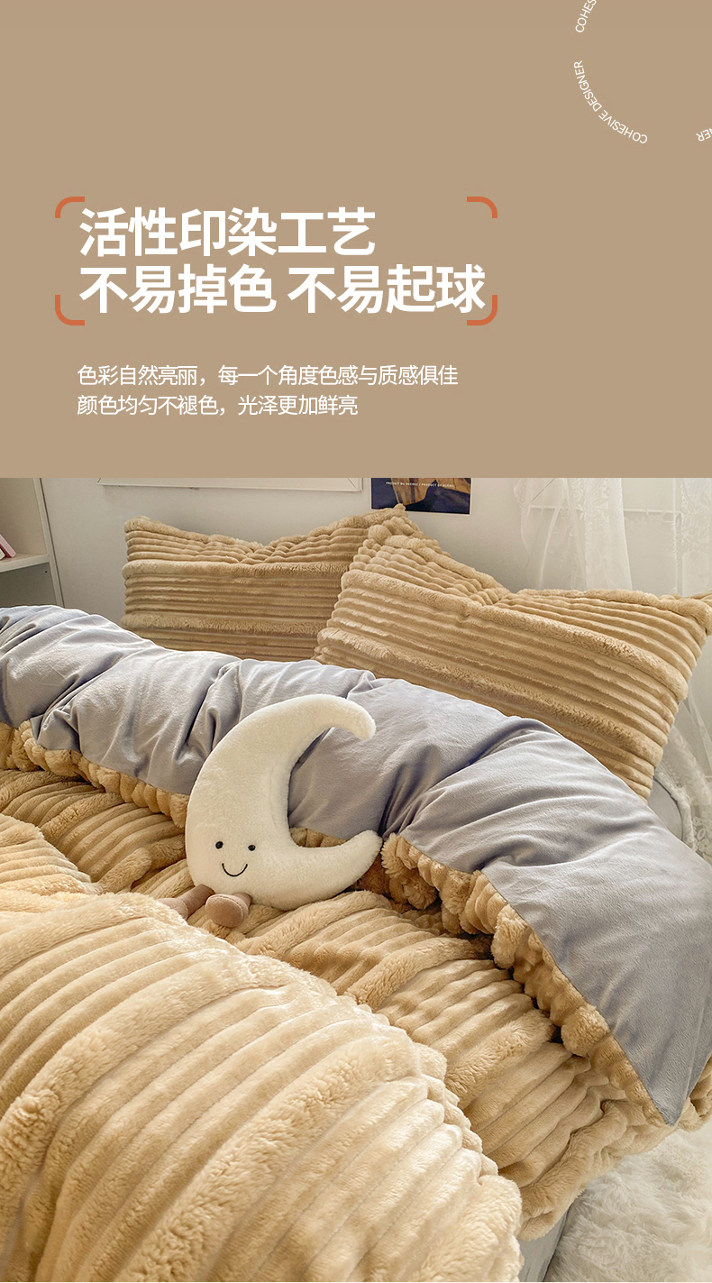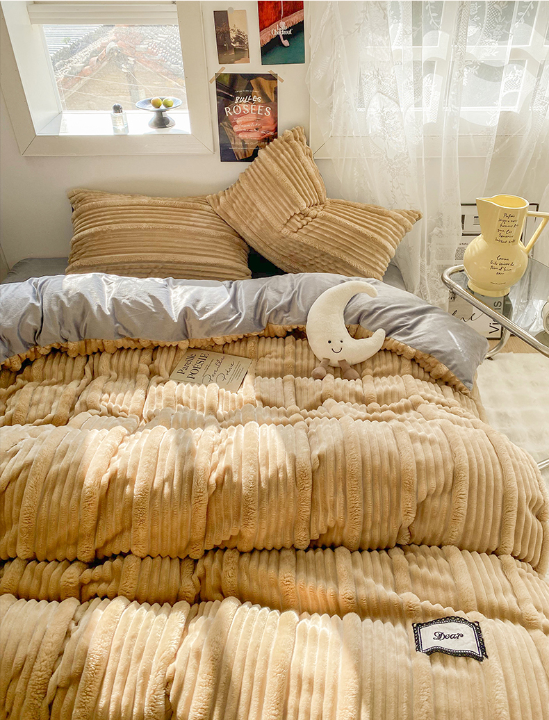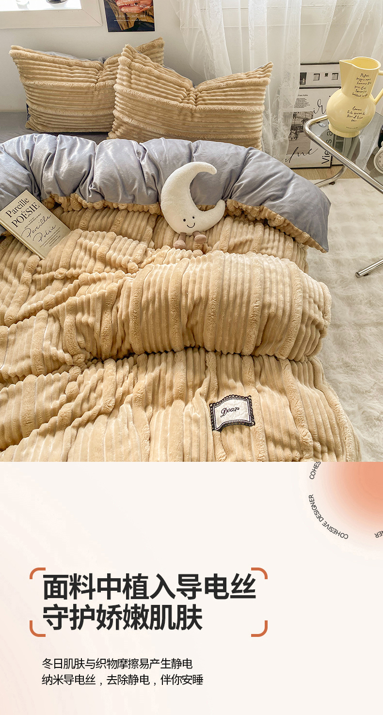 商品名称:2025新款秋冬澳密绒保暖四件套-雪瑞系列 雪瑞-驼色