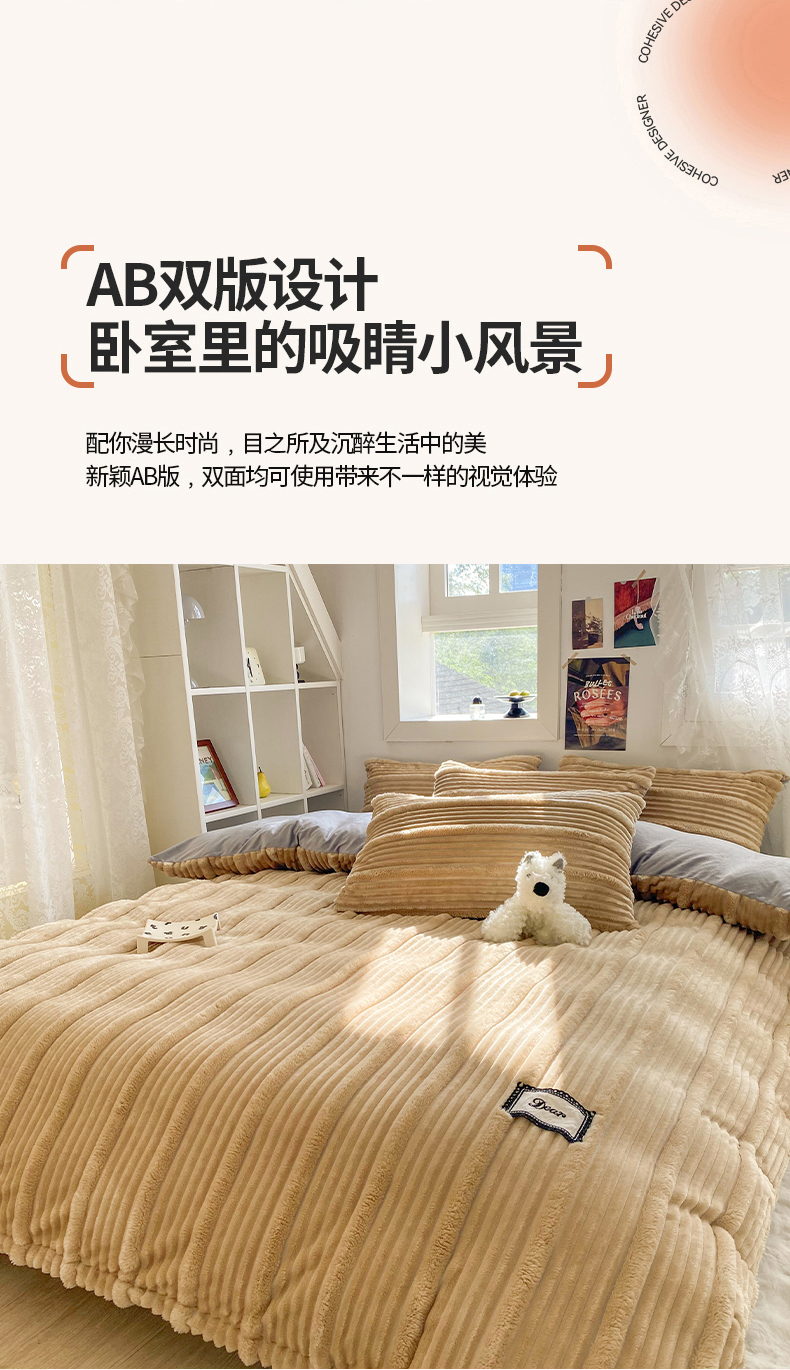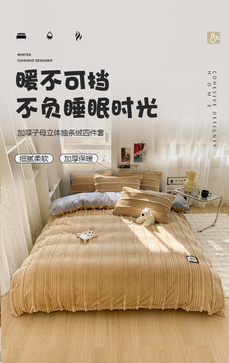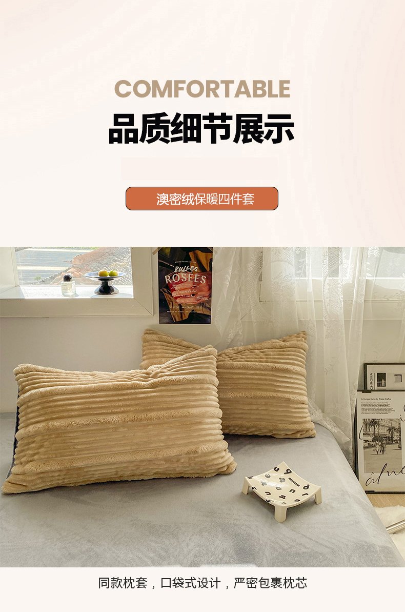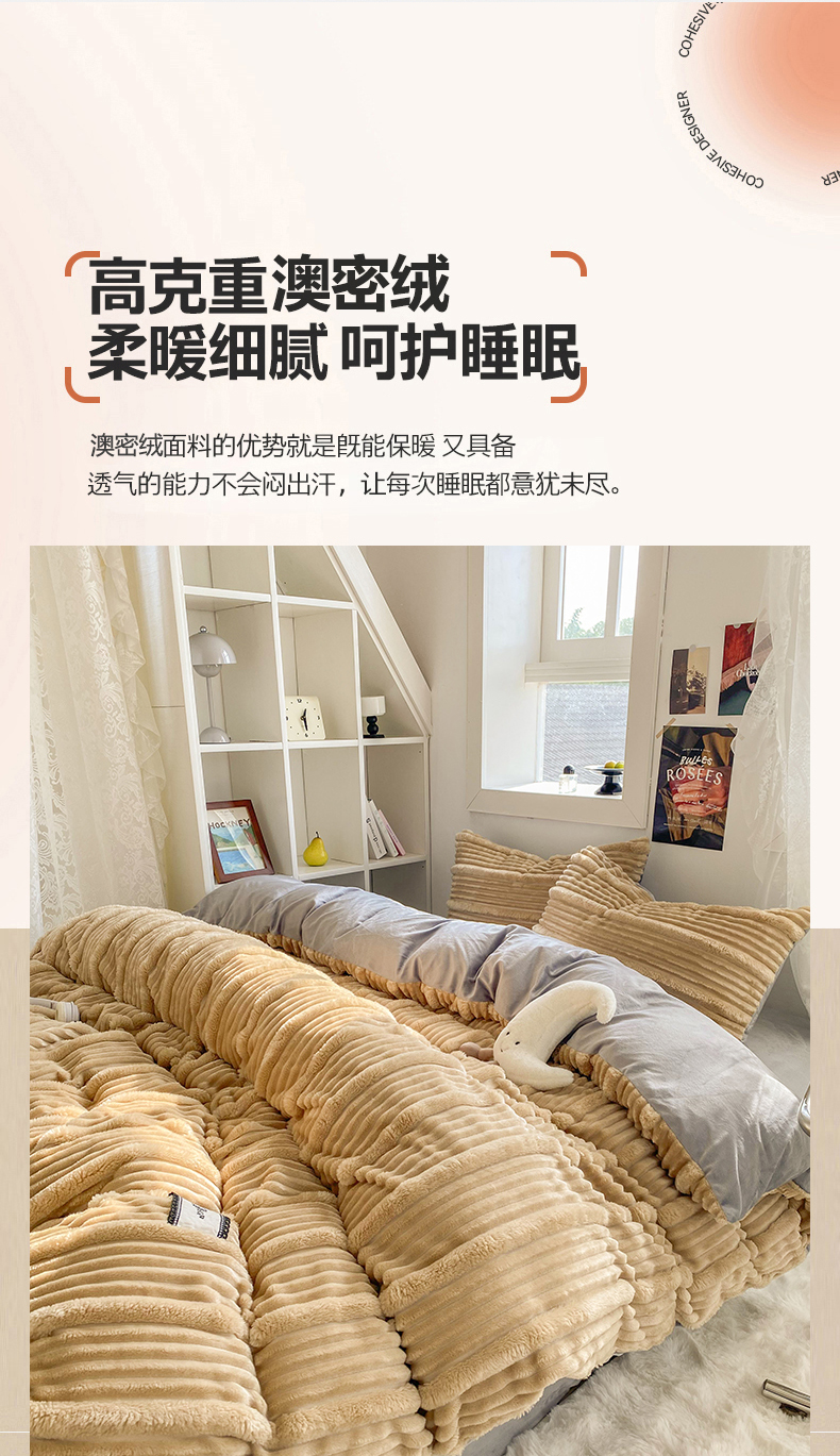商品名称:2025新款秋冬澳密绒保暖四件套-雪瑞系列 雪瑞-驼色