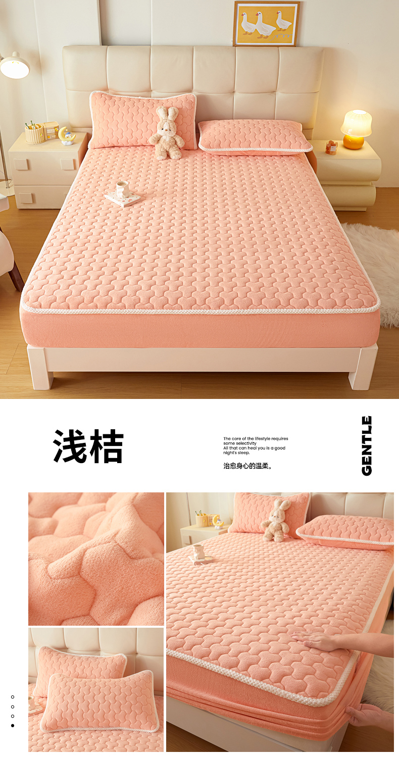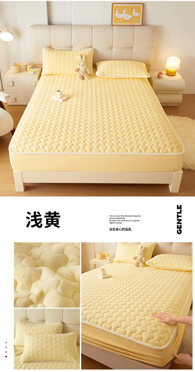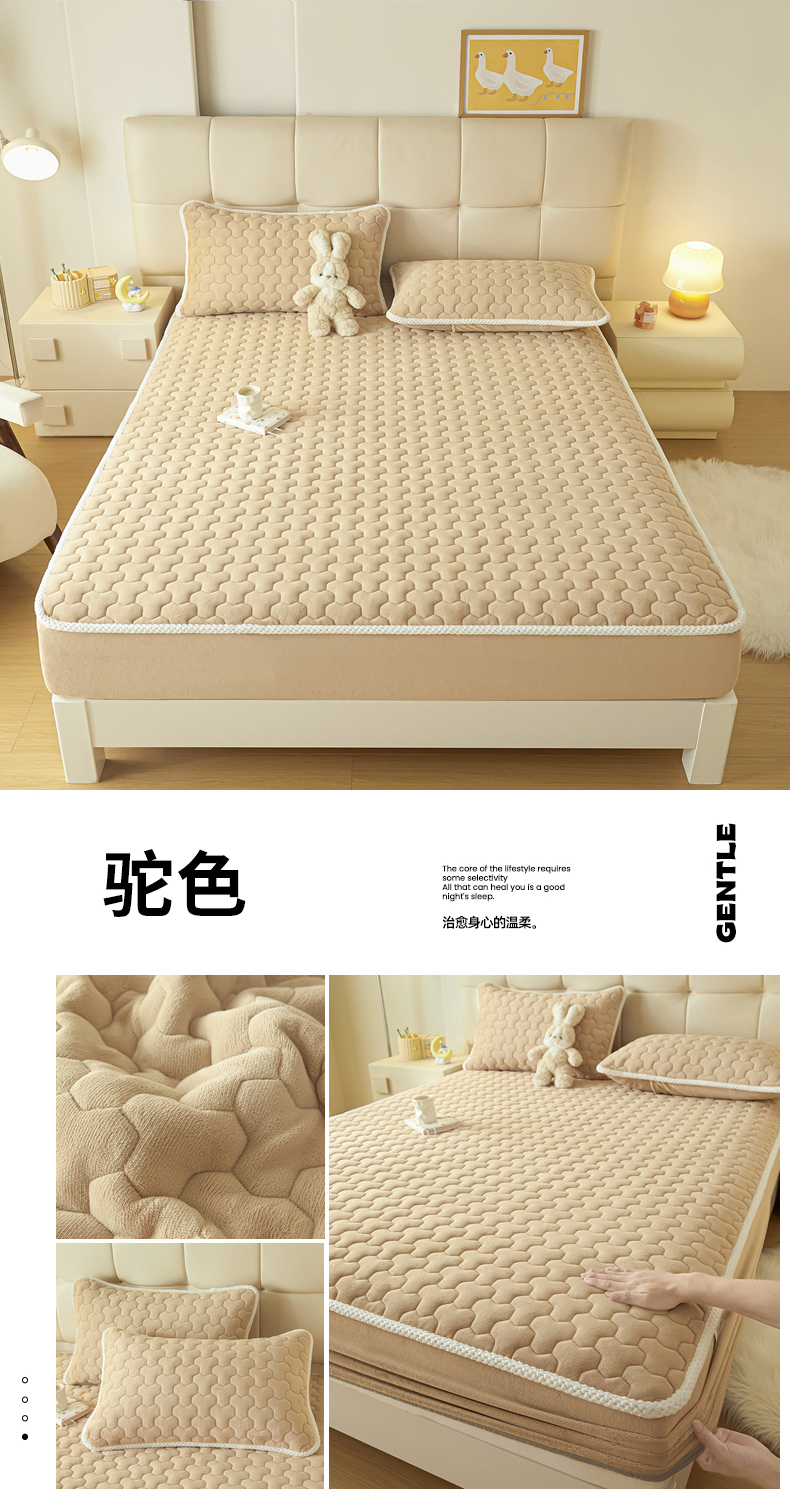 商品名称:(总)雪云美 2024冬季新款加厚牛奶绒夹棉床笠三件套A类大豆床垫保护套纯色