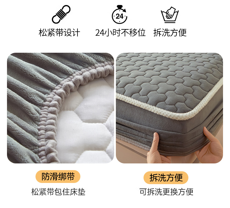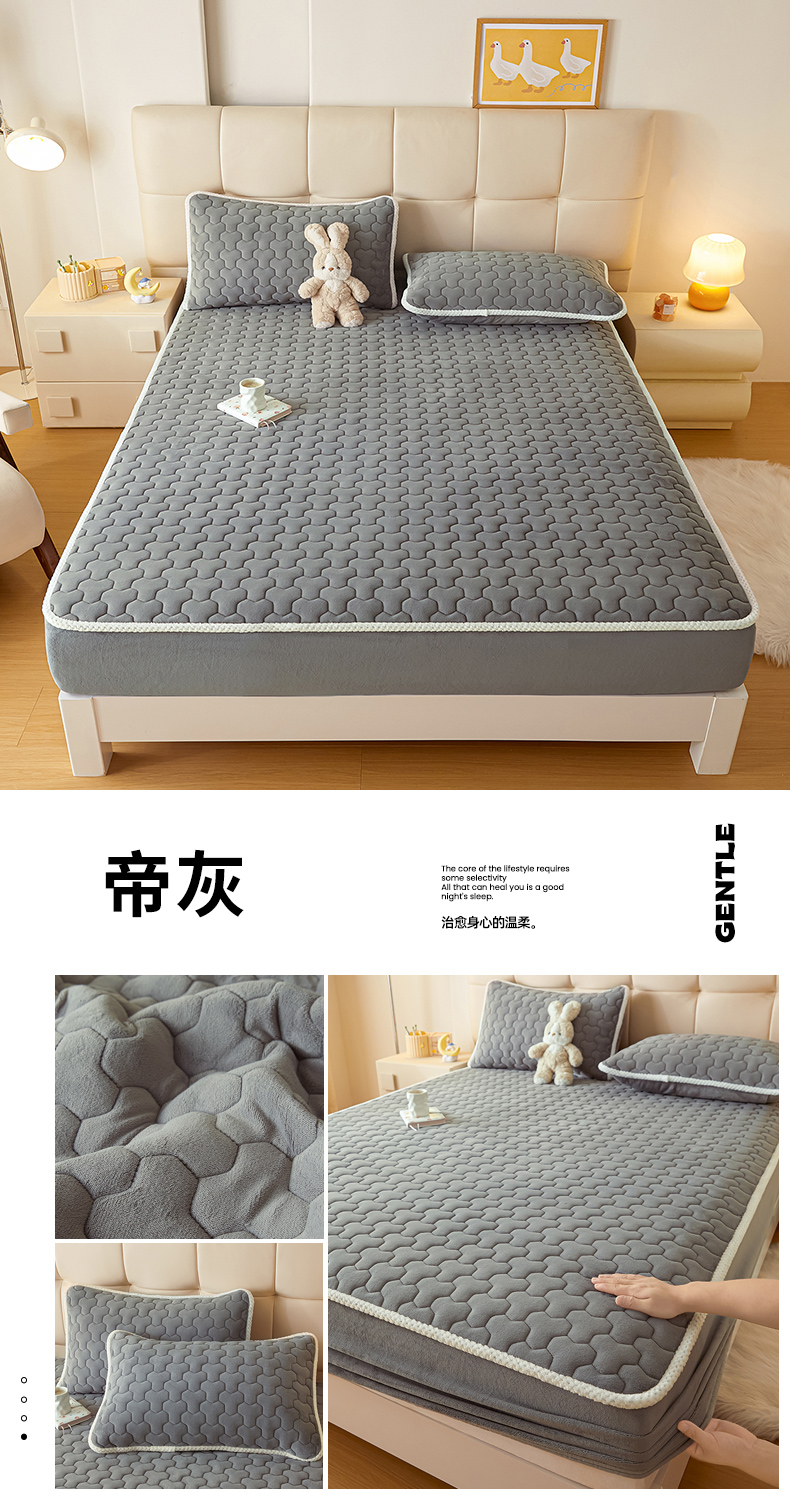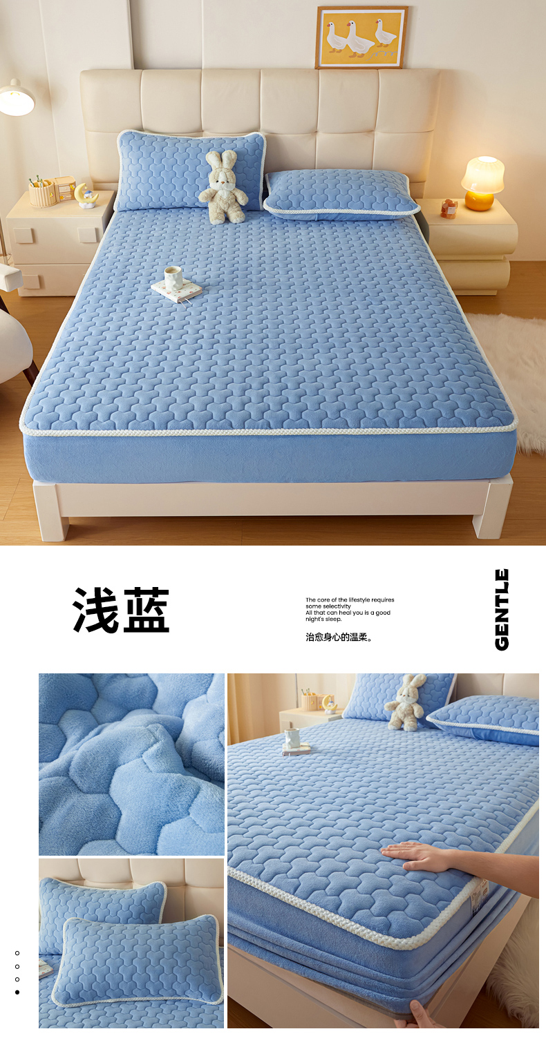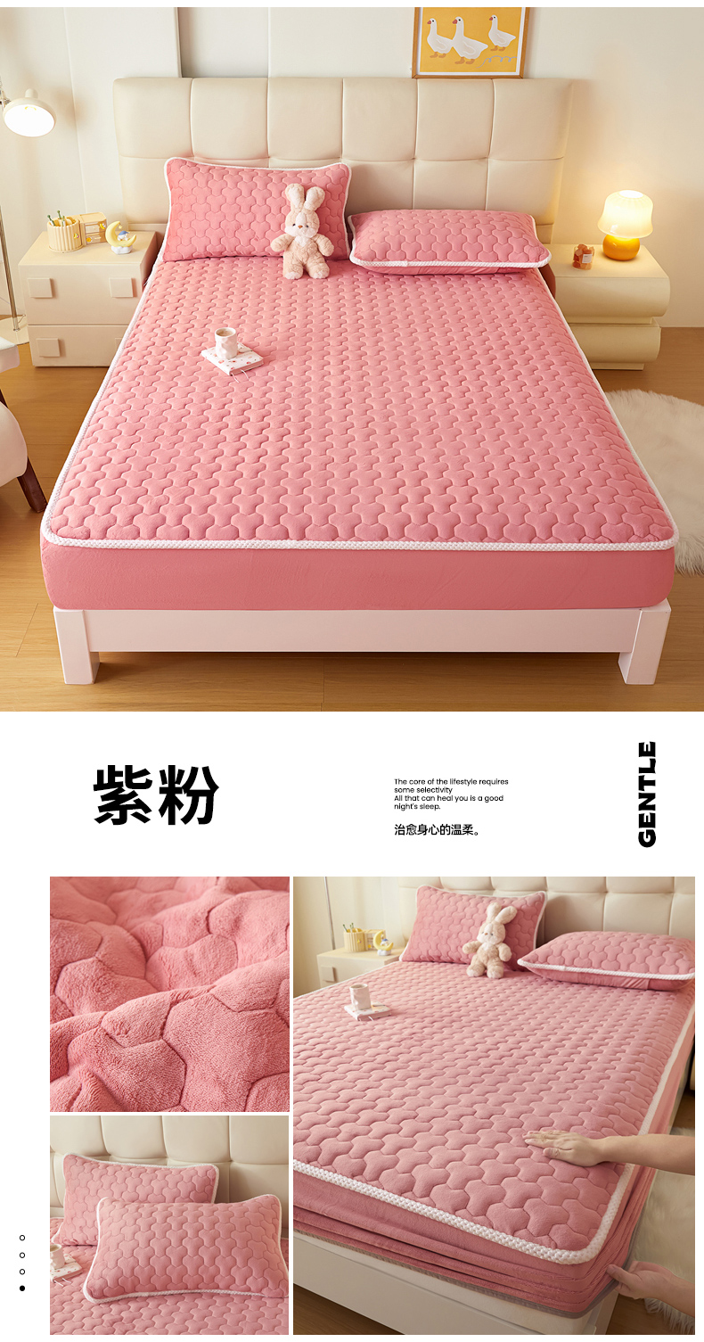 商品名称:(总)雪云美 2024冬季新款加厚牛奶绒夹棉床笠三件套A类大豆床垫保护套纯色