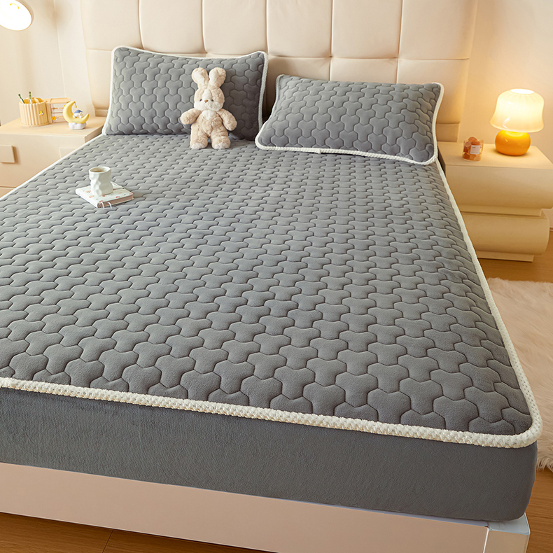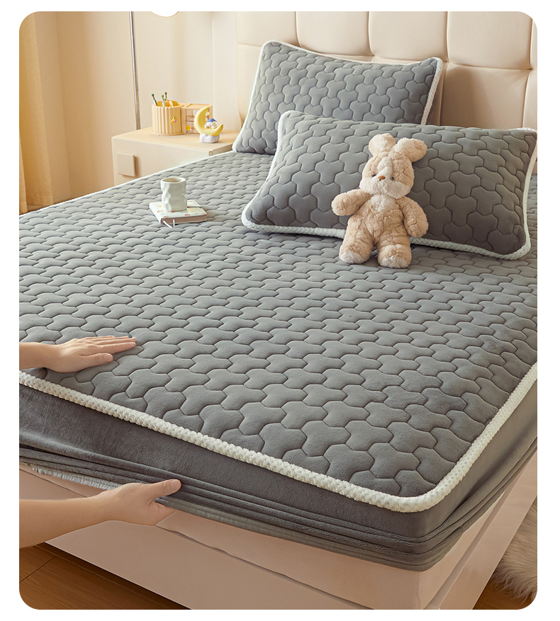 (总)雪云美 2024冬季新款加厚牛奶绒夹棉床笠三件套A类大豆床垫保护套纯色